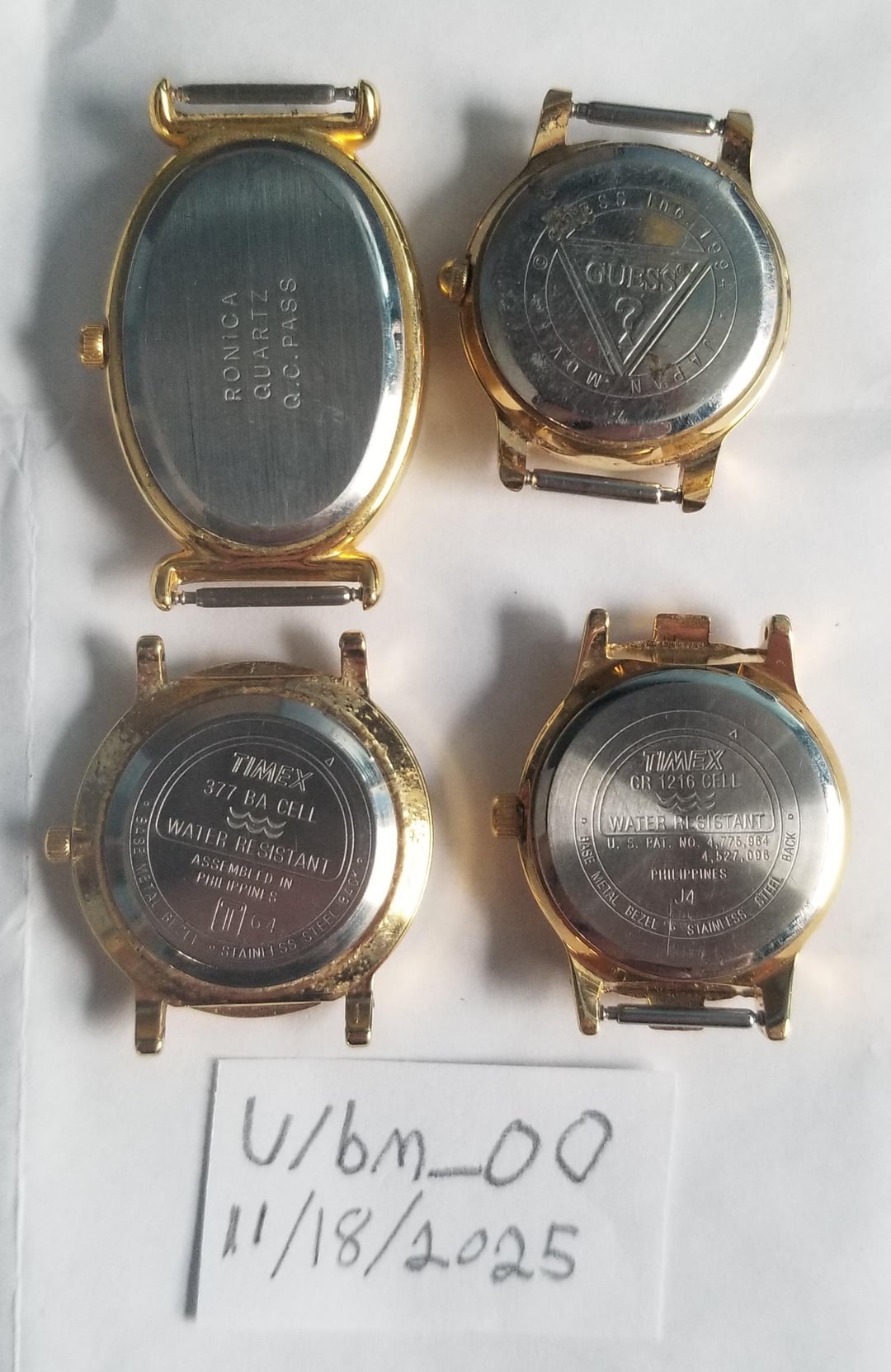 Small assortment of budget/junk Timex, Timex Acqua, Ronica, & Guess brand watches. Watches functionality is unknown. None currently are functioning but may only need a battery. 3 watches have bands & 4 do not. The included bands show signs of wear & age. I am ideally looking to sell as a lot but am willing to separate. Looking for $22 Paypal G&S shipped for the lot within the United States. I am open to offers. I have positive trade flair on r/hardwareswap, r/homelabsales, r/photomarket , r/Legomarket