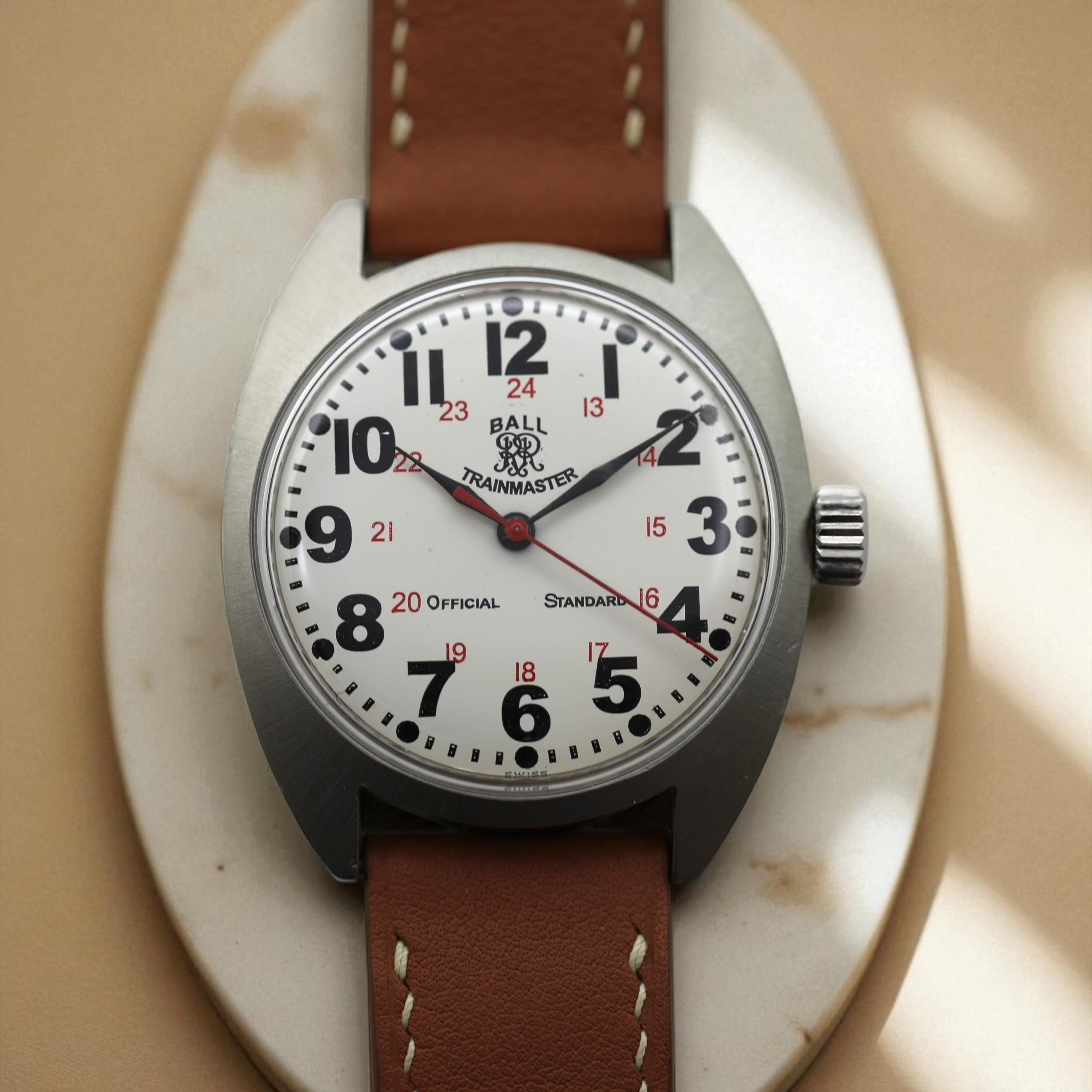 The phrase "on the Ball" is believed to have originated from the requirement that railroad watches be precisely set to Ball's standard. Ball mandated that all watches used by railroad workers, including engineers and conductors, had to meet the strict "RR Standard" (Railroad Standard) and be regularly checked for accuracy Brand: Ball Model: Trainmaster Movement: 2821 Case: Stainless steel Size: 34mm Lug to Lug: 42mm Strap: Leather Location: Los Angeles Price: ONLY $699! Web/IG: [keepiece.co](http://keepiece.co/) PICTURES/TIMESTAMP: [https://imgur.com/a/I93W9qM](https://imgur.com/a/I93W9qM) CONDITION & SERVICING \-The white dial is in very good condition. \-The unpolished case shows honest wear, overall a nice example. \-Service history is unknown.