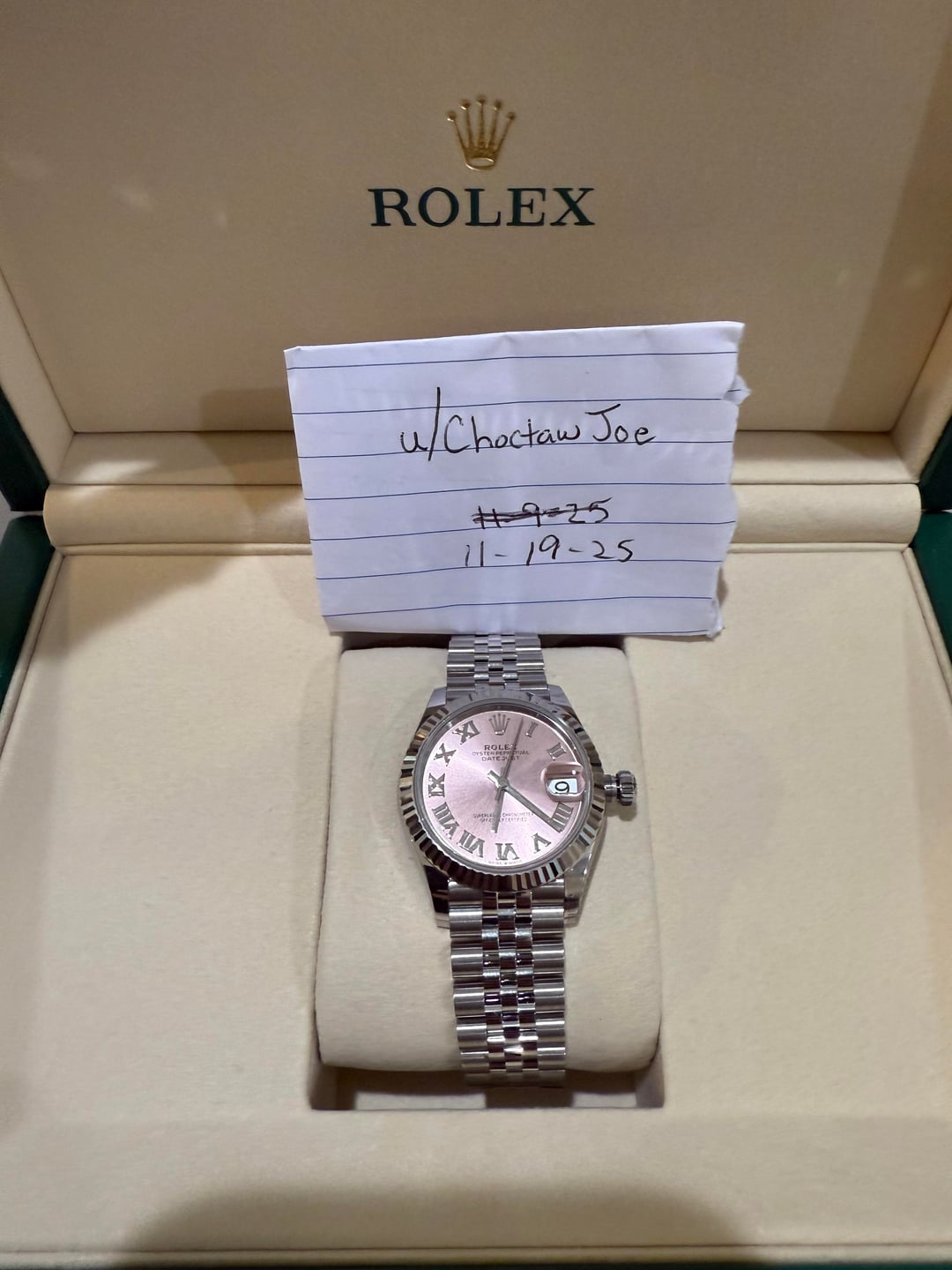[WTS] Brand New - Rolex Datejust 31mm 278274 - Pink dial with Roman markers and fluted bezel on jubilee - Full Set