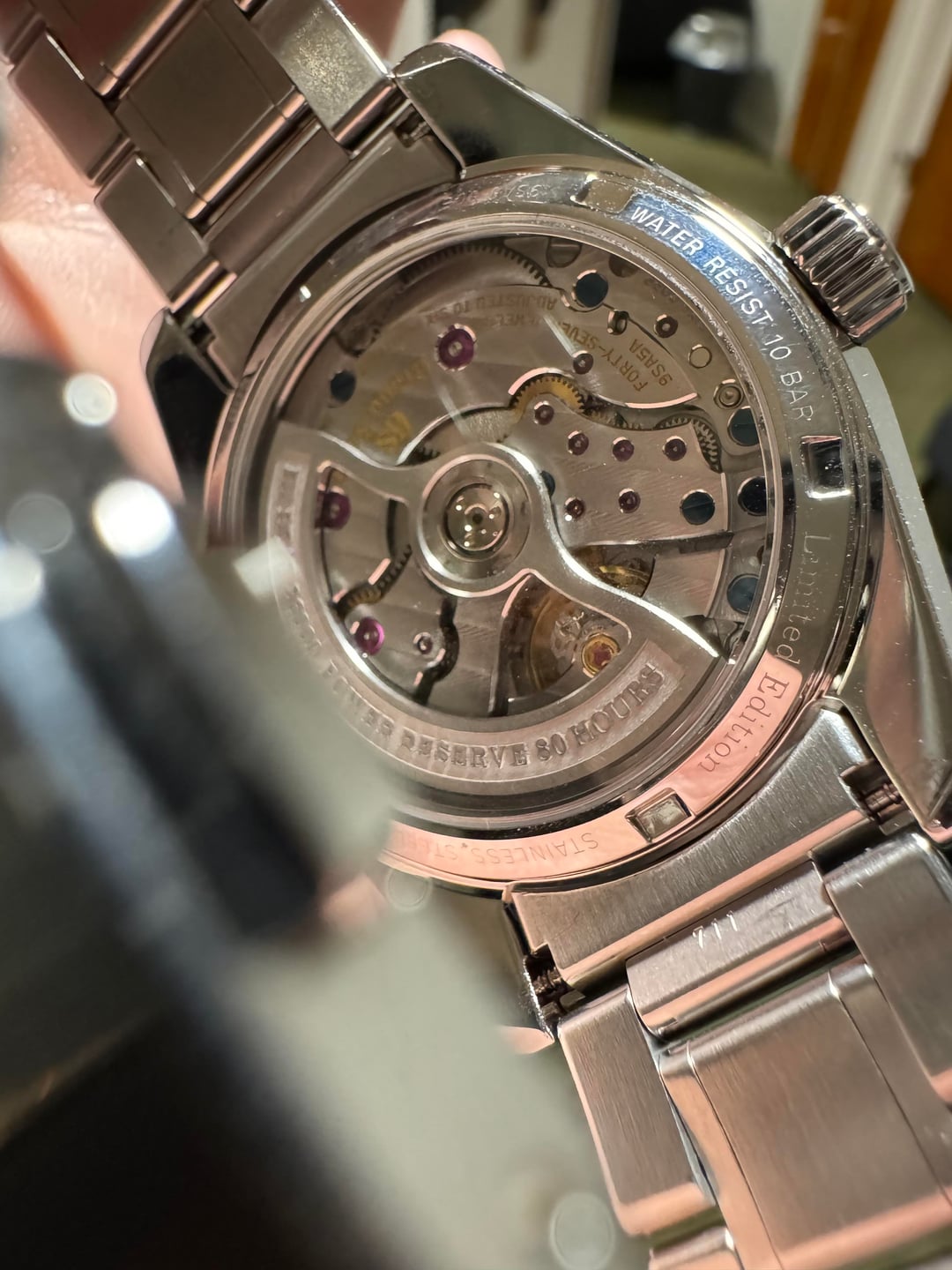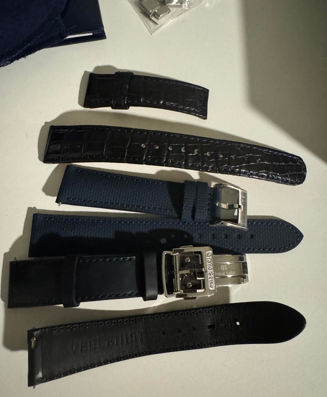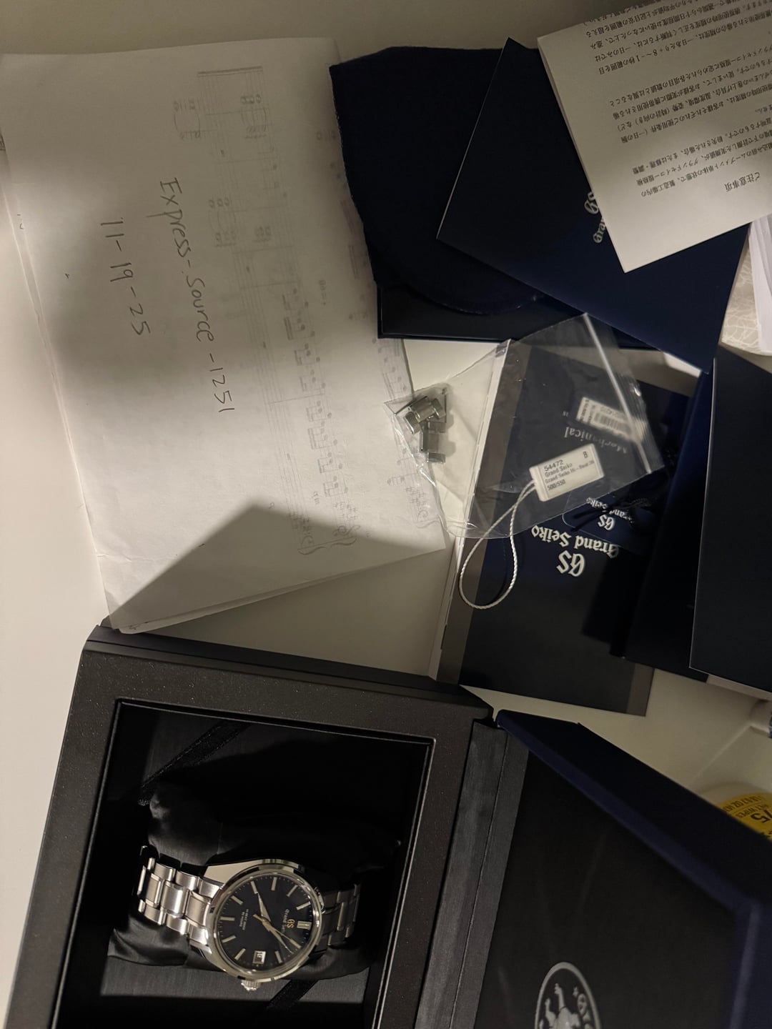 Looking to sell this beauty for some emergency funds. This grand seiko is limited to 550 pieces (this piece is 500/550), it’s built with Ever brilliant steel and has a beautiful hi-beat 80 hour movement. I outsourced an extra half link for this piece, and I also have an OEM navy alligator grand seiko strap + OEM GS deployant clasp, a Veblenist custom made Navy shell cordovan leather strap, and a Delugs Navy sailcloth. It’s still under GS factory warranty until 2/8/2027, runs extremely well as it was sent for a regulation and checkup this year. Full set. There are daily scratches, this was my daily piece, and it’s not as pristine as new, however, there are no dings and overall, the scratches are only seen if under harsh lighting and if you get very close, and some lug scratches from swapping straps. Looking to trade down a lot, and if it’s a trade, local meet up in the Bay Area CA only. Trade value is $5500. Also for sale, can ship CONUS or local meet up: $5000. I only accept Zelle or PayPal F&F
