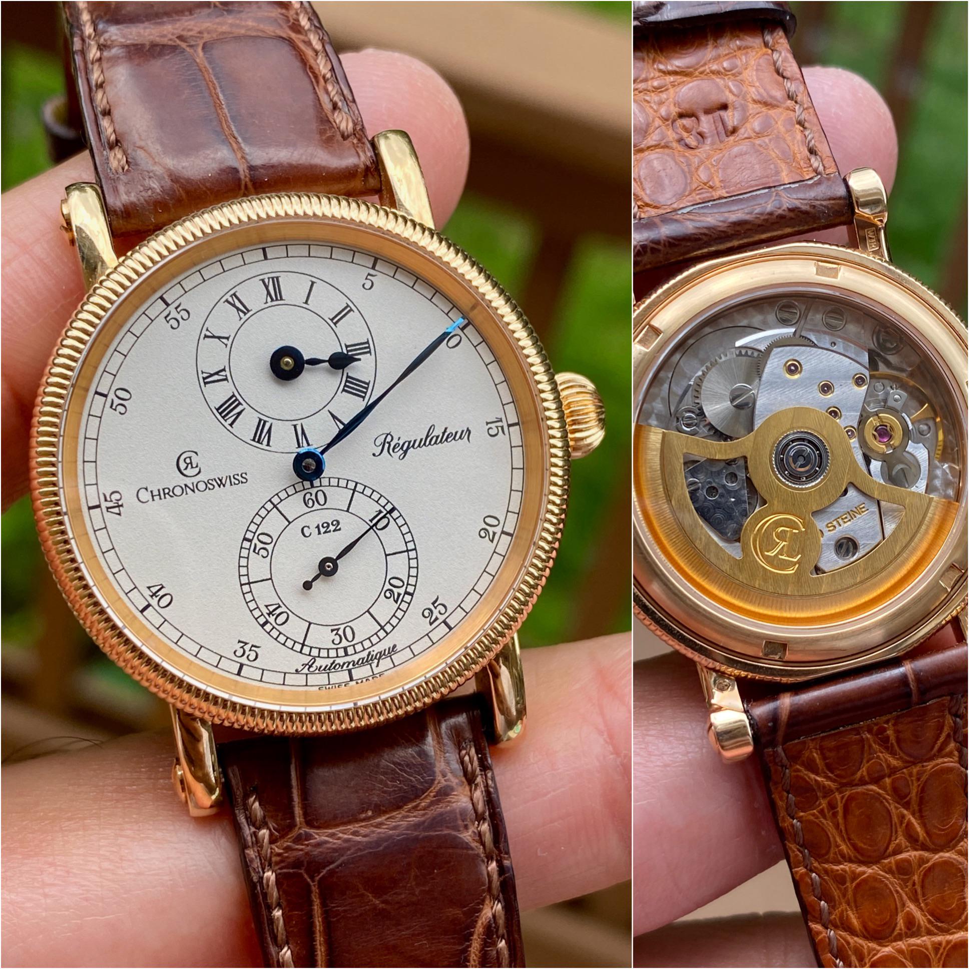 Hello All - I am putting for sale - Chronoswiss Regulator. Blued hands. 38mm. Very sharp and clean. Solid Gold. Full kit box and papers. 📷 More Pics: https://www.dropbox.com/scl/fo/25uwxvbiuwinhbg2kqbz2/AC1vtQl7LqjQa9RYqpwfRio?rlkey=uzunj38qzyivy75ld35hb7b8k&st=392jzpqh&dl=0 📆 Timestamp: https://www.dropbox.com/scl/fi/buorxke1tv1k6rruz0qp5/Photo-Nov-15-2025-10-15-56-AM.jpg?rlkey=xondxqlwo3n278u3g8wj2qzoi&st=3n7i01ua&dl=0 I am asking $4650 + shipping . Watch located in NJ USA. I am very comfortable doing a facetime to show the watch if needed. Please PM me for any questions that you may have. I am certain it will go to a good home. Thanks for looking. ** My profile has 600+ references. ** Checkout my profile for other amazing watches.