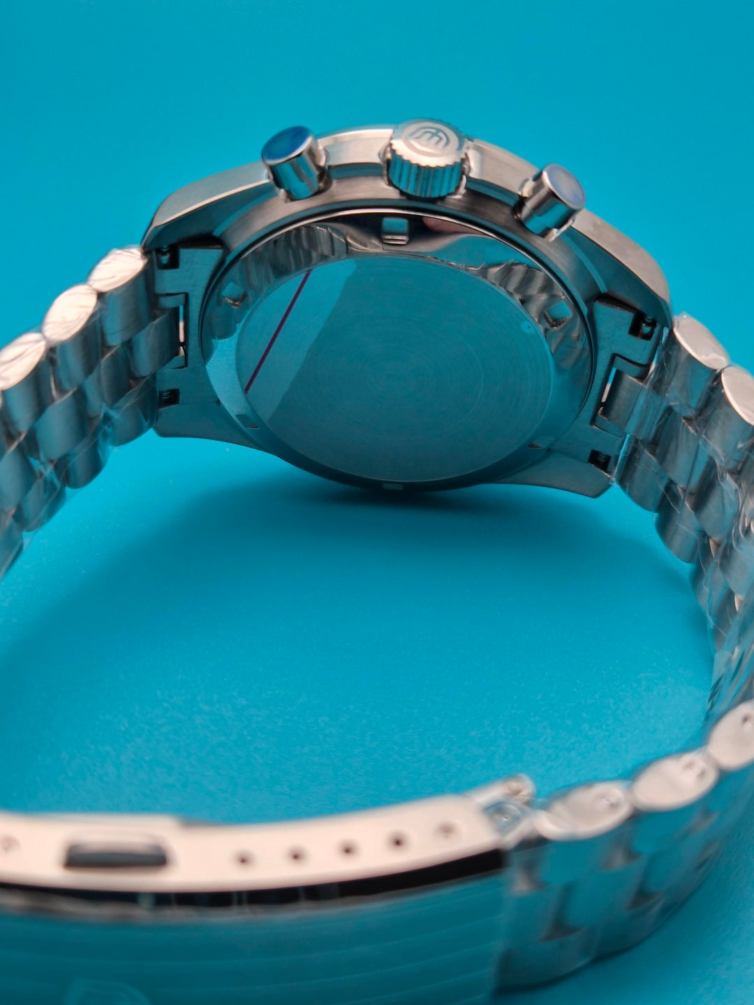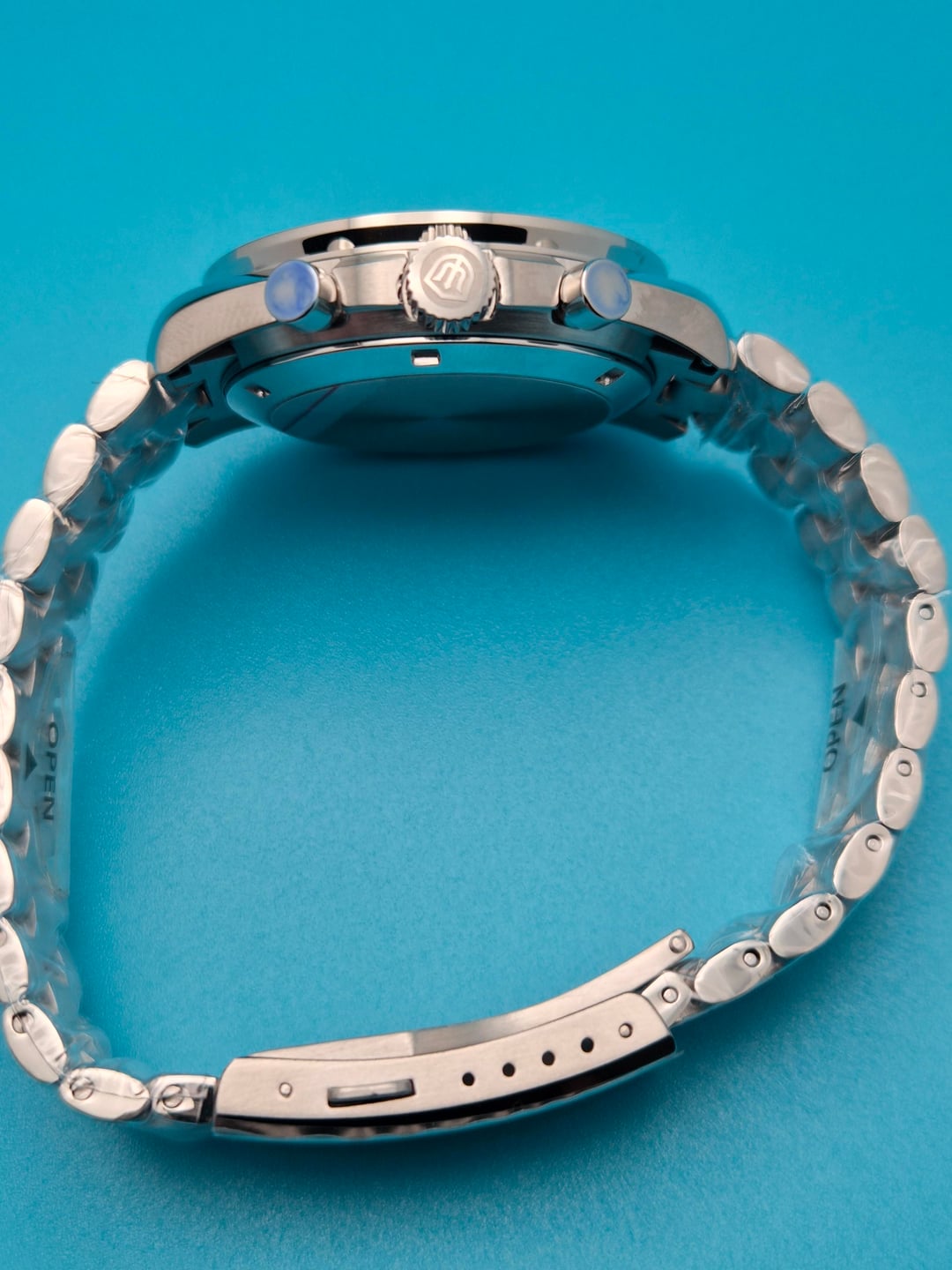 For sale is a modded Omega x Swatch Mission to Jupiter Moonswatch. The dial and movement have been professionally transplanted into a Watchdives 1863 stainless steel case with a sapphire crystal. This upgrade gives the watch a significantly more premium feel while preserving the iconic Moonswatch aesthetic. Package Includes: Watchdives stainless steel bracelet, Mission to Jupiter box and papers, Mission to Jupiter velcro strap. Extra battery. Price: $525 with free shipping within CONUS Payment: PayPal F&F, Venmo F&F and Zelle No trades at this time Feel free to reach out with any questions.