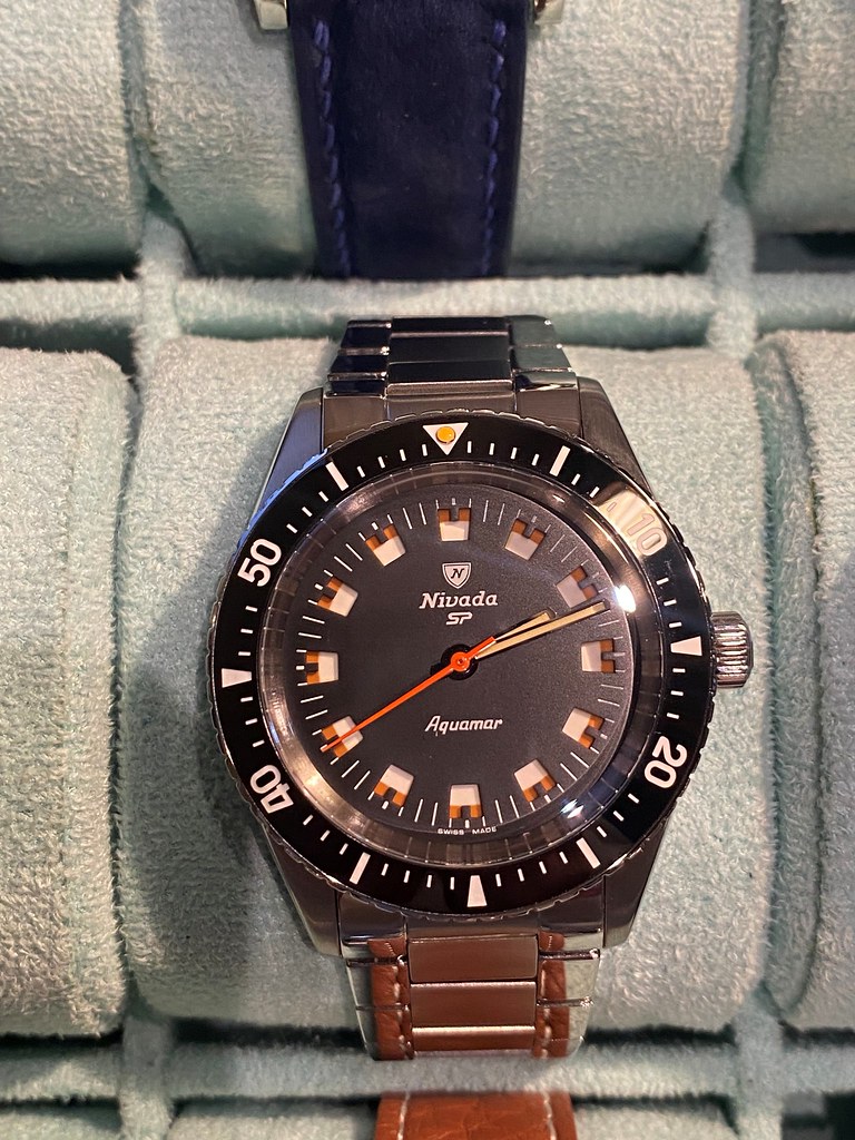 6. Nivada Grenchen Aquamar Black. 38mm. Price shipped in USA is $700.