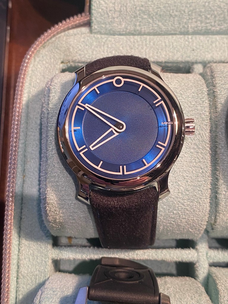 1. Ming 17.09 Blue. Sold out. 38mm. Price shipped in USA is $2250.