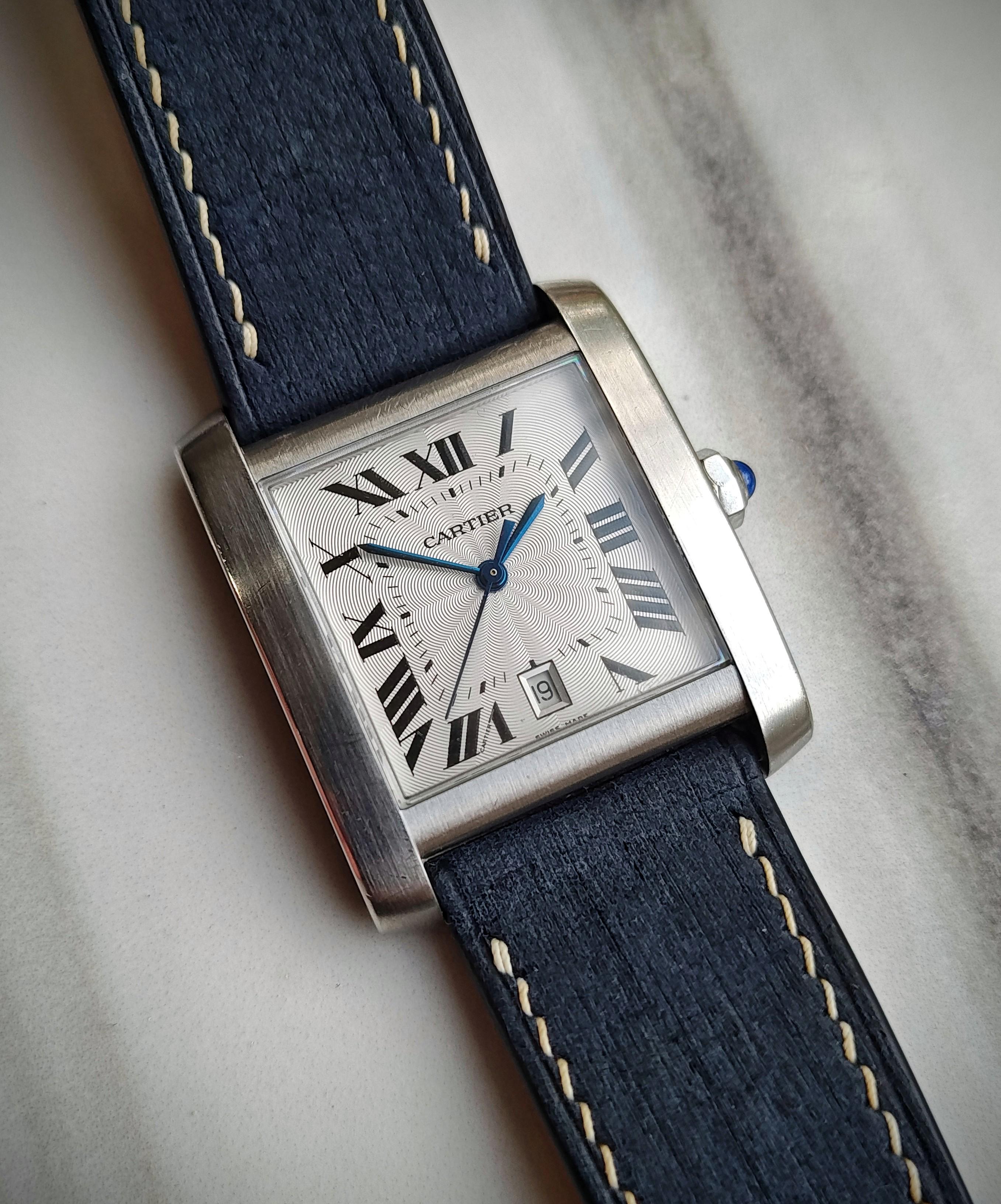 **Cartier Tank Francaise 2564** This classic Tank was produced by Cartier for one year only in 2002 and is a larger alternative to the smaller case Tank Francaise line. 30 mm x 36 mm stainless steel case, guilloche engraved silvered with black Roman numerals, blued hands. Automatic movement. Comes on aftermarket blue leather strap by DeLugs that matches up well with the overall aesthetics of the design. Also includes original black leather strap with factory Cartier deployant clasp. Watch comes with a Cartier suede travel case. More pics: [https://imgur.com/a/2RGB5h2](https://imgur.com/a/2RGB5h2) $3,500 plus shipping 🛫 All watches shipped FedEx fully insured. Local pickup available in Los Angeles area. 💬Positive feedback from hundreds of successful transactions across the watch community, including WUS, Chrono24, eBay, Facebook, and Reddit. I’m always happy to connect by phone or video call to answer questions or verify details. Zelle, Venmo and wire accepted. ⭐100+ five-star reviews on Chrono24 — buy with confidence. ⌚I have a wide range of exceptional watches available, with new pieces added every week.