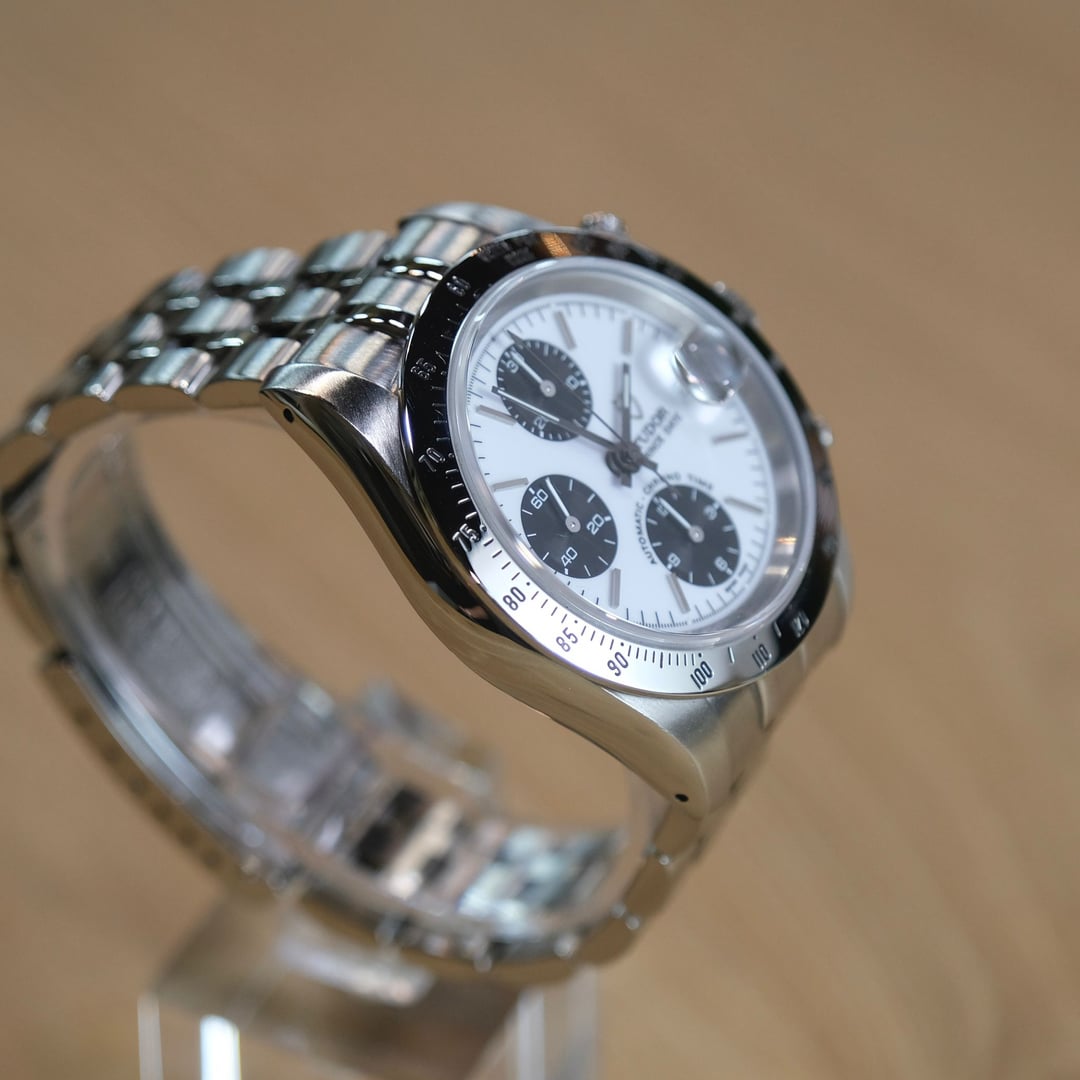 Who needs a Daytona? This Tudor Prince Chronograph has all the features to rival the unattainable Rolex – a crisp lacquer dial with a panda configuration, the famous “Units Per Hour” bezel, and screw-down pushers. The best part? It costs a fraction of the price. The steel bezel and screw-down pushers give it a rugged look. In addition, the case measures 40mm, which is perfect for any wrist. As the pictures show, it has some wear, but nothing serious. I believe it’s post-2002 due to its condition and lack of Tiger inscription. It also comes fitted with a sapphire crystal and a thinner case, unlike its predecessor. This makes it a lot more wearable and a better everyday piece, in my opinion. It’ll fit a 6.8-inch wrist with the links included. Check the last photos to see how it looks on my wrist. Fortunately, links aren’t hard to find, as these watches were produced from the 90s until 2007. **Details & More** **Condition:** Very good with minor usage markings. Some wear on the clasp and caseback. See detailed photos for full condition and clarity. **Reference:** 79280 **Case Size:** 40 x 48.3mm stainless steel case with a thickness of 14mm and a lug width of 20mm. **Crystal:** Sapphire **Movement:** Valjoux 7750, automatic with chronograph function and date. Service history is unknown, but it’s running strong. **Other Information:** * Watch only * Fits a wrist up to 6.8 inches **Price:** Asking $3,700. Please add $140 for worldwide shipping. Payment methods include Wise, ACH transfer, Revolut, Bitcoin (On-Chain or Lightning), or PayPal G&S for buyers with solid references. Add +7.5% for currency conversion fees on the latter. Portugal has suspended all local post shipments to the US, but I can still ship with UPS ($140). US buyers may have to pay a 15% tariff on arrival. Established seller with over 220 transactions – buy with confidence! Make sure to follow me on Instagram (@daily.worn) to check out the newest additions. Happy to answer serious inquiries. No trades, no lowballs. [Pictures](https://imgur.com/a/Xa6XT3x) [Timestamp](https://imgur.com/a/xWYh4wK)