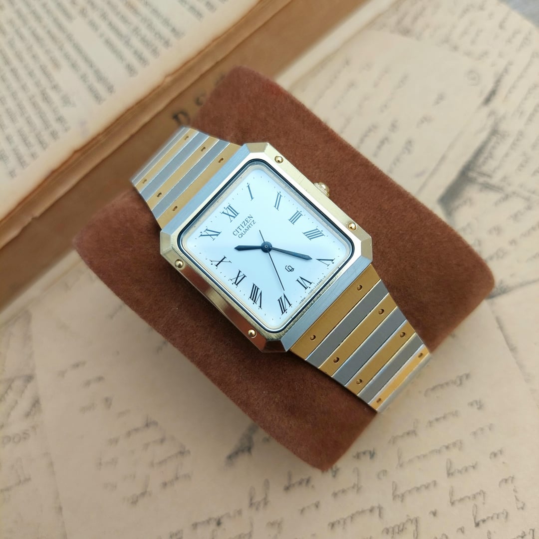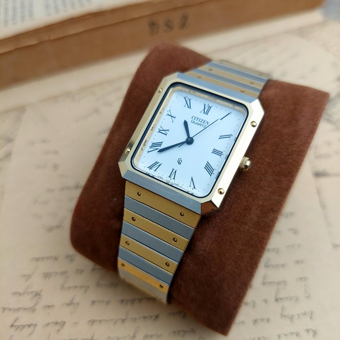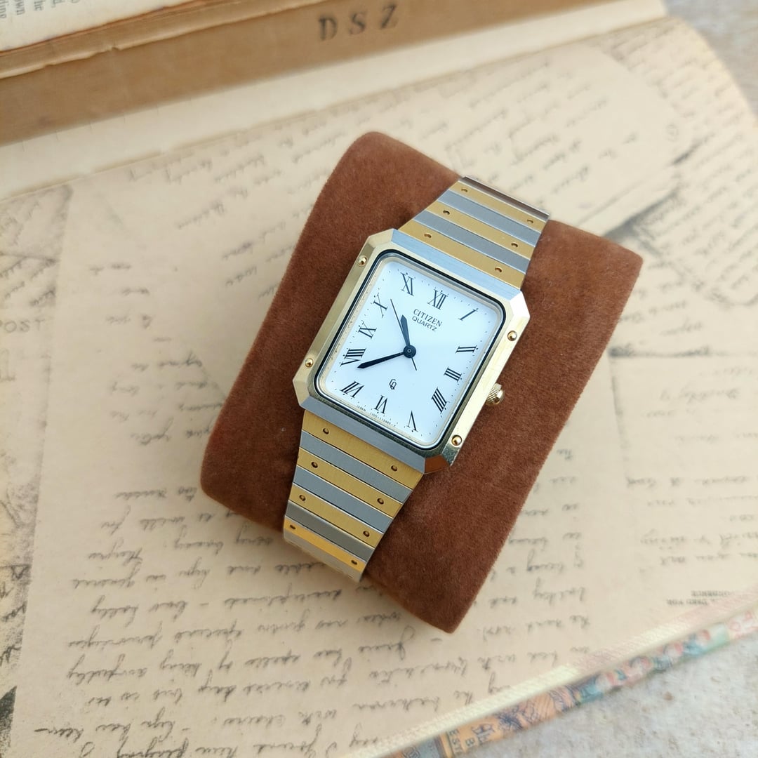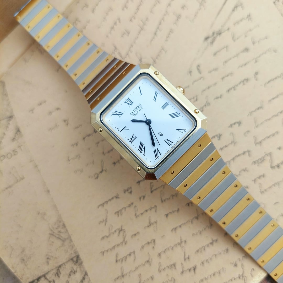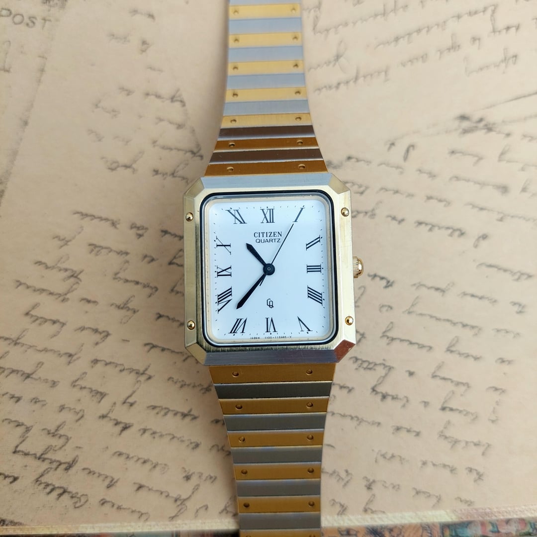 For sale an elegant vintage Citizen Tank Ref No 1100-108680Y, made in 80's, The watch comes with beautiful two tone case and bracelet, command attention with a pristine white dial adorned with bold, classic black Roman numerals. the watch a 28mm case included crown, 30 mm lug-to-lug, amd comes with its original bracelet fit up to wrist size 19.5 cm / 7.67 inch Overall watch in good condition, the watch run perfectly fine on a quartz movement cal. 1100 with a new battery installed. Looking to get $225 shipped and tariffs covered to USA Payment via Paypal F&F and G&S + 4.8%. Video of watch : https://www.instagram.com/reel/DQPsCQmE2Pb/?igsh=dWJnbW12Z25nemdt for more collection please follow my instagram: https://www.instagram.com/lougeposh/ Please COMMENT FIRST before sending me a pm or chat. Tracking number (Airwaybill) will available within 3 days once payment confirmed