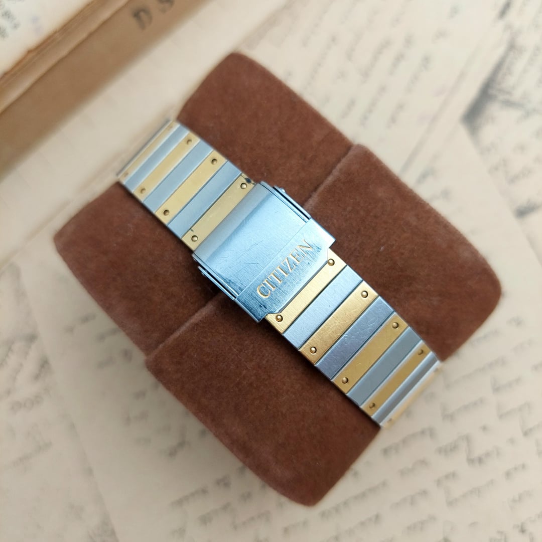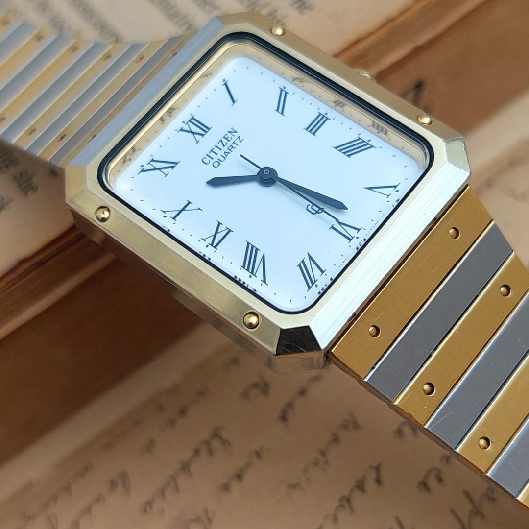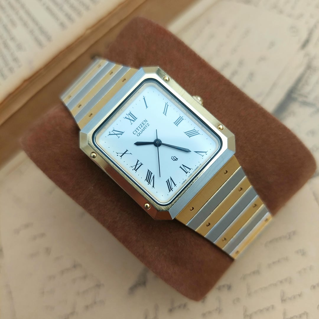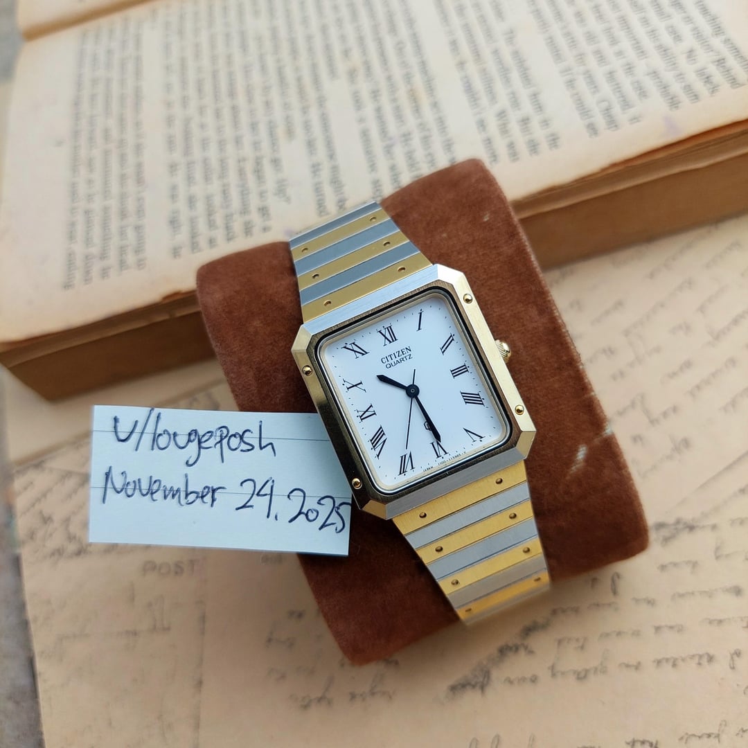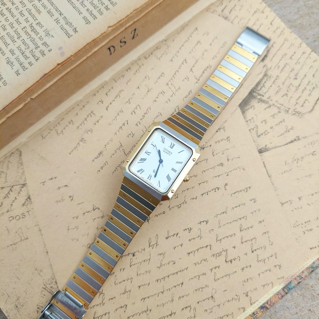 For sale an elegant vintage Citizen Tank Ref No 1100-108680Y, made in 80's, The watch comes with beautiful two tone case and bracelet, command attention with a pristine white dial adorned with bold, classic black Roman numerals. the watch a 28mm case included crown, 30 mm lug-to-lug, amd comes with its original bracelet fit up to wrist size 19.5 cm / 7.67 inch Overall watch in good condition, the watch run perfectly fine on a quartz movement cal. 1100 with a new battery installed. Looking to get $225 shipped and tariffs covered to USA Payment via Paypal F&F and G&S + 4.8%. Video of watch : https://www.instagram.com/reel/DQPsCQmE2Pb/?igsh=dWJnbW12Z25nemdt for more collection please follow my instagram: https://www.instagram.com/lougeposh/ Please COMMENT FIRST before sending me a pm or chat. Tracking number (Airwaybill) will available within 3 days once payment confirmed