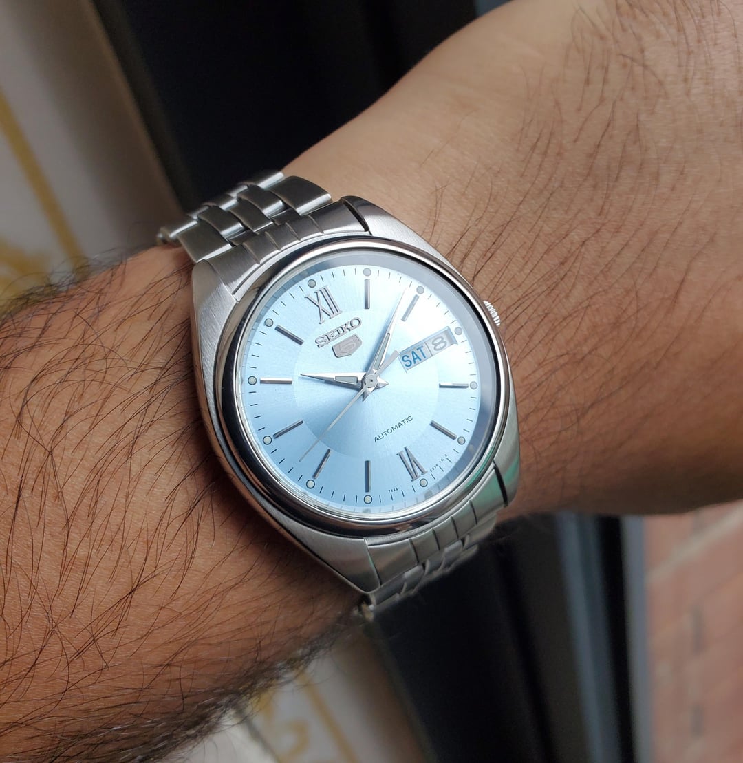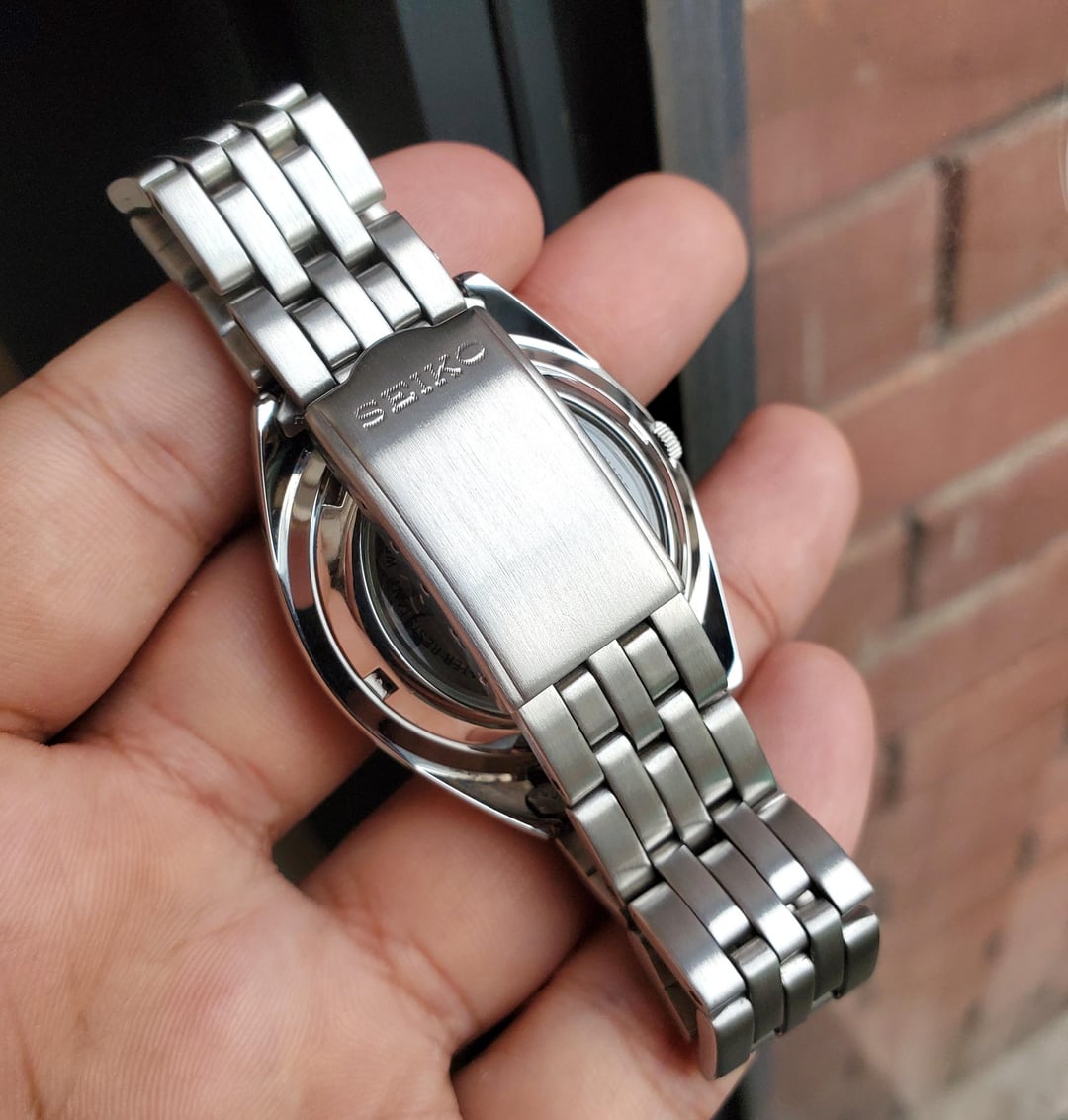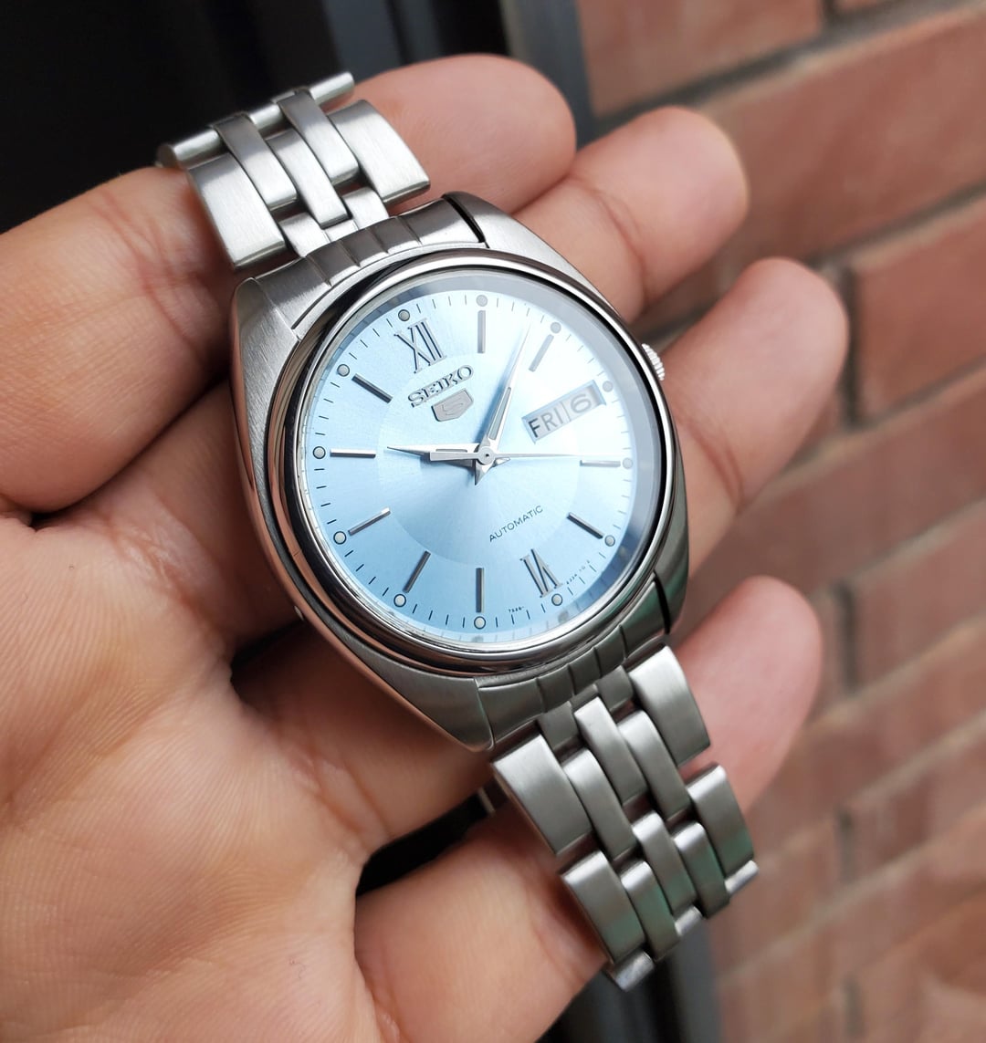 A very cool Rare Seiko 5 watch. Ice Blue sunburst dial, unique layout. Straight raised luminous indices. Minimalistic example. Original Seiko signed robust bracelet. Very solid build quality. Ready to be used as a daily driver. Pictures don't do justice to this watch. Looks better upfront. Exhibition clear caseback. Case is professionally polished keeping all the sharp brushed lines, edges and mirror finishing. Movement has been serviced. Good time keeping. A good collector's piece. Seiko has always kept Ice Blue dials limited and they fetch a lot higher than other color variants of same model. One of the most sought after Seiko 5 model. PRICE: $219 USD via Paypal, Wise, Crypto. FREE Shipping worldwide. I have a good number of exchanges here for a safe transaction. Check my Instagram: [https://instagram.com/hour.lust](https://instagram.com/hour.lust) * Reference model: SNXA05 * Case size: 37 mm (w/crown) * Lug to Lug size: 43 mm * Case Thickness: 11.5 mm * Lug size: 18 mm * Seiko 7S26 Automatic Movement Pics: [https://imgur.com/gallery/seiko-snxa05-aS5tIPs](https://imgur.com/gallery/seiko-snxa05-aS5tIPs) TS: [https://imgur.com/a/6ZrAY8w](https://imgur.com/a/6ZrAY8w)