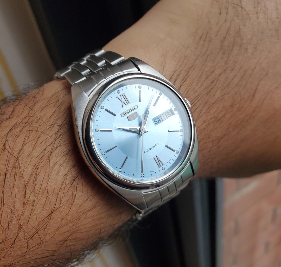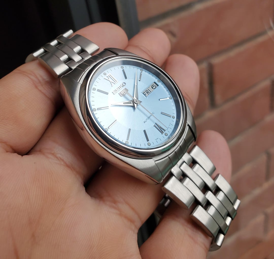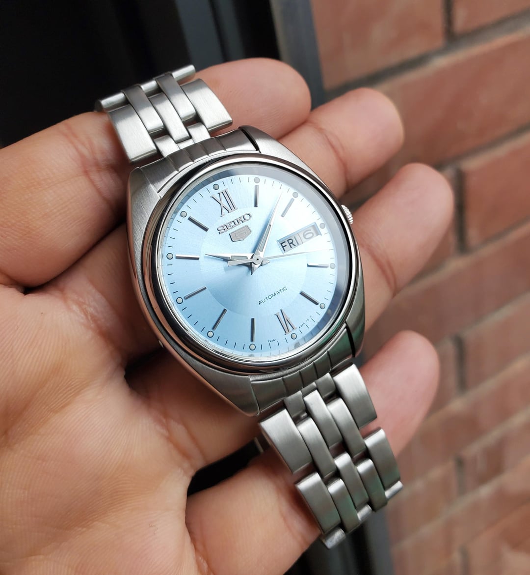 A very cool Rare Seiko 5 watch. Ice Blue sunburst dial, unique layout. Straight raised luminous indices. Minimalistic example. Original Seiko signed robust bracelet. Very solid build quality. Ready to be used as a daily driver. Pictures don't do justice to this watch. Looks better upfront. Exhibition clear caseback. Case is professionally polished keeping all the sharp brushed lines, edges and mirror finishing. Movement has been serviced. Good time keeping. A good collector's piece. Seiko has always kept Ice Blue dials limited and they fetch a lot higher than other color variants of same model. One of the most sought after Seiko 5 model. PRICE: $219 USD via Paypal, Wise, Crypto. FREE Shipping worldwide. I have a good number of exchanges here for a safe transaction. Check my Instagram: [https://instagram.com/hour.lust](https://instagram.com/hour.lust) * Reference model: SNXA05 * Case size: 37 mm (w/crown) * Lug to Lug size: 43 mm * Case Thickness: 11.5 mm * Lug size: 18 mm * Seiko 7S26 Automatic Movement Pics: [https://imgur.com/gallery/seiko-snxa05-aS5tIPs](https://imgur.com/gallery/seiko-snxa05-aS5tIPs) TS: [https://imgur.com/a/6ZrAY8w](https://imgur.com/a/6ZrAY8w)