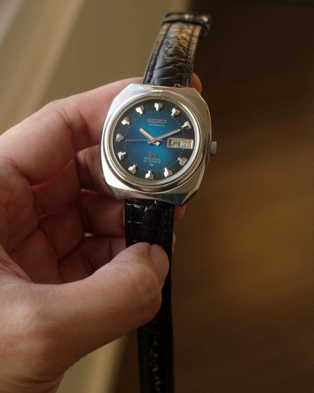 Hello WatchEx! Up for sale is this beautiful 1973 Seiko Lord Matic LM Special with a deep blue dial. The dial is in really great condition for its age with very little patina. Has a clean flat crystal. This is a JDM model watch so the daywheel can be set to English or Kanji. The case is also in great condition with minor polishing done to it. This watch has been recently serviced (timegrapher readind is in the album link below). It comes with a brand new aftermarket leather strap. Sold as watch only and will be shipped in a replacement box. Ref num: 5216-6000 BMBY: July 1973 Case: 35mm w/o crown Lug to lug: 38mm Lug width: 17mm Thickness: 10mm Price: USD270 (free shipping to CONUS) Shipped internationally using FedEx. Paypal F&F or G&S (+Paypal Fees) (For sale only. No trades please.) Album: [https://imgur.com/a/JXWEVvl](https://imgur.com/a/JXWEVvl) Timestamp: [https://imgur.com/1SV3Qjn](https://imgur.com/1SV3Qjn) . . **Following the advice on** r/WatchExchangeFeedback**:** **1) Please COMMENT FIRST before sending me a pm or chat.** **2) PayPal F&F is preferred. I will only allow G&S for users with successful transactions here on WatchExchange** **3) All duties and taxes are on the account of the buyer.** **4) I welcome requests for custom timestamp photos.** **5) All watches are sold “AS IS” with no personal warranty. I will only accept returns/refunds for issues that are undeclared on my end.** **6) Feel free to ask me any questions regarding my listings! You can also check my 170+ successful transactions here using the WatchExBot.**