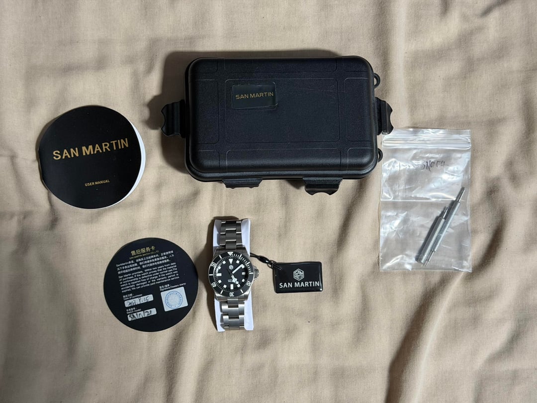 San Martin SN0121 T in Titanium - Pelagos Homage at 39mm with a quick adjust clasp Great affordable watch, comes with the box, papers, and tools as shown in the photos: Album: [https://imgur.com/a/Q6Y7SRp](https://imgur.com/a/Q6Y7SRp) Time Stamp: [https://i.imgur.com/o5ItsZ8.jpeg](https://i.imgur.com/o5ItsZ8.jpeg) Video: [https://imgur.com/a/Q6Y7SRp#NHqJVkT](https://imgur.com/a/Q6Y7SRp#NHqJVkT) Used condition, see photos and videos above for the wear and tear on this watch. $135 firm via Zelle and I'll cover ground shipping with insurance. Thanks for looking
