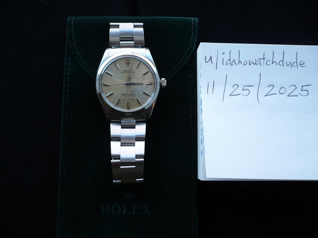 ![Thumbnail [WTS] Rolex 1002 Oyster Perpetual from 1962, Unpolished case and Oyster bracelet. Awesome, original patinaed 'SWISS' dial, original sword hands. Just serviced. $2,995 4](https://cdn-cf.watchpatrol.net/120x120/img/full/8da15e07bb31658c48a64417f8737abd36532413.jpg)