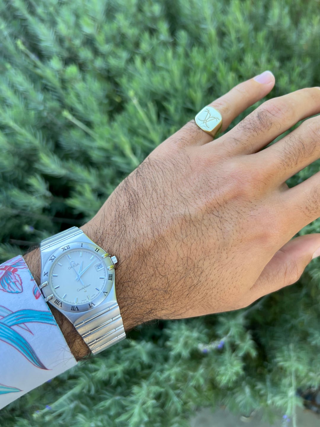 This is an omega constellation ‘my choice’ unisex watch from 2000. To be honest, I am more of a jeweler, but I sourced this watch from France because of the unique ecru ‘diamond hatched’ dial. There are quite a lot of constellations on the market, but I’ve never seen one with this dial before. The color and crispness looks dressier and great with a white button up. The model is the 34mm perfect for smaller wrists or unisex. The condition is very good, only slight signs of wear. Some more details are below: Year:2000 Model: Constellation: ‘My Choice’ Ref. 1512.30 Movement: Quartz Glass: Sapphire Diameter: 34mm Length: 18.5cm (can fit a 7 inch wrist comfortably). Timestamp: https://imgur.com/a/CttRsm7 Although this is my first post here, I have feedback on r/pmsfeedback selling vintage and antique jewelry. Asking is $1250 shipped (with insurance). I accept Zelle, PayPal & Venmo.