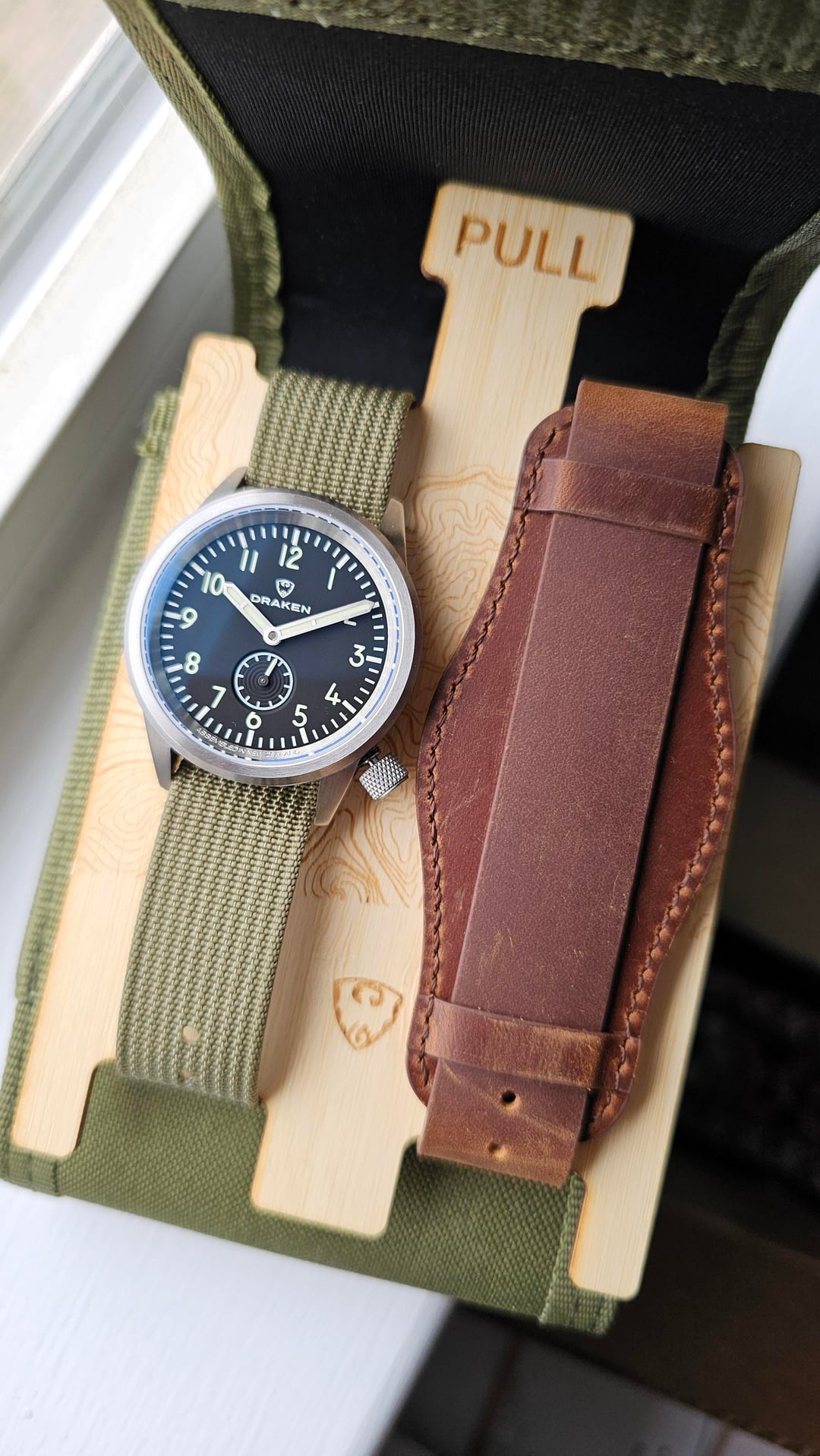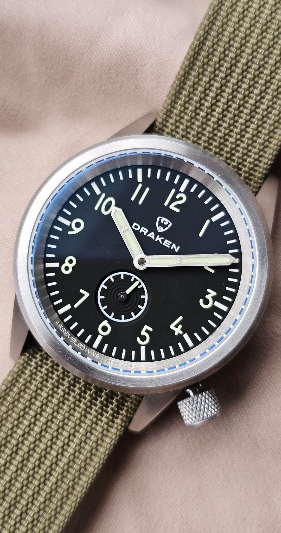 Hi again folks! For sale is a watch from my personal collection. It is one of the best value field watches from one of the best microbrands, the New Zealand based Draken Watches Aoraki Milspec. I have supported Steve since his early Kickstarter days and had the chance to meet him this year at District Time and pick this up. It’s gotten solid wear in my rotation but I plan to snag one of his Kruger models (or the upcoming Kalahari reboot) with the funds from this one! Assembled locally in New Zealand, this watch is packed with tons of features. With a 316L stainless 39mm x [46.mm](http://46.mm) x 12.35mm thick case and 20mm lugs, it wears perfectly on the wrist and is an absolute strap monster. It is 100m rated and fitted with an antimagnetic movement shield to withstand 20,000A/m. It has a flat sapphire with inner and outer antireflective -it’s crystal clear, incredible! It is powered by the Miyota 92S5 automatic with hacking and hand-winding, running accurately. The bicolor lume is awesome and there’s a really cool easter egg, the crown is lumed as well (see pics)! The watch is in near mint condition. The only tiny flaw I could find on it was a hairline on the side of the 7 o’clock lug that I couldn’t pick up in pictures. It passes as like new on the wrist, there are not any scratches in the antireflective coating. It comes with a leather single pass bund strap (never used), a nylon single pass strap (rarely used) and an awesome Molle pouch that you can use to store stuff during your adventures. Timestamp for Reddit: [https://preview.redd.it/wts-draken-aoraki-milspec-v0-j76d9ctkgi3g1.jpg?width=1080&crop=smart&auto=webp&s=0df45c01ed6e8f290b747d6d64476741d5881eff](https://preview.redd.it/wts-draken-aoraki-milspec-v0-j76d9ctkgi3g1.jpg?width=1080&crop=smart&auto=webp&s=0df45c01ed6e8f290b747d6d64476741d5881eff) These are currently sold out. Get a nice discount and avoid tariffs – I am asking $299 including shipping in the US. Not interested in trades at this time, trade offers will be ignored. Please message me with any questions or interest and thanks for looking!