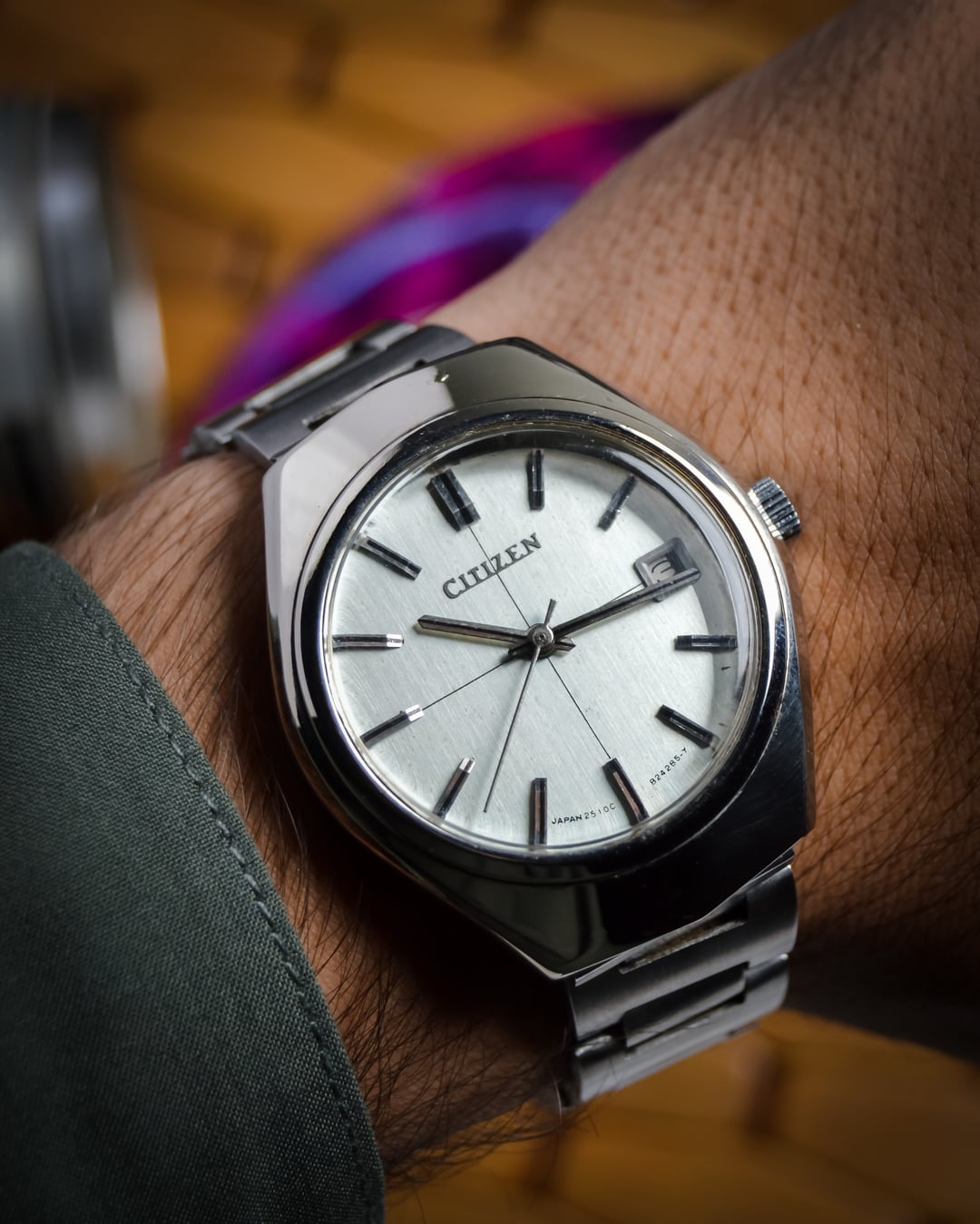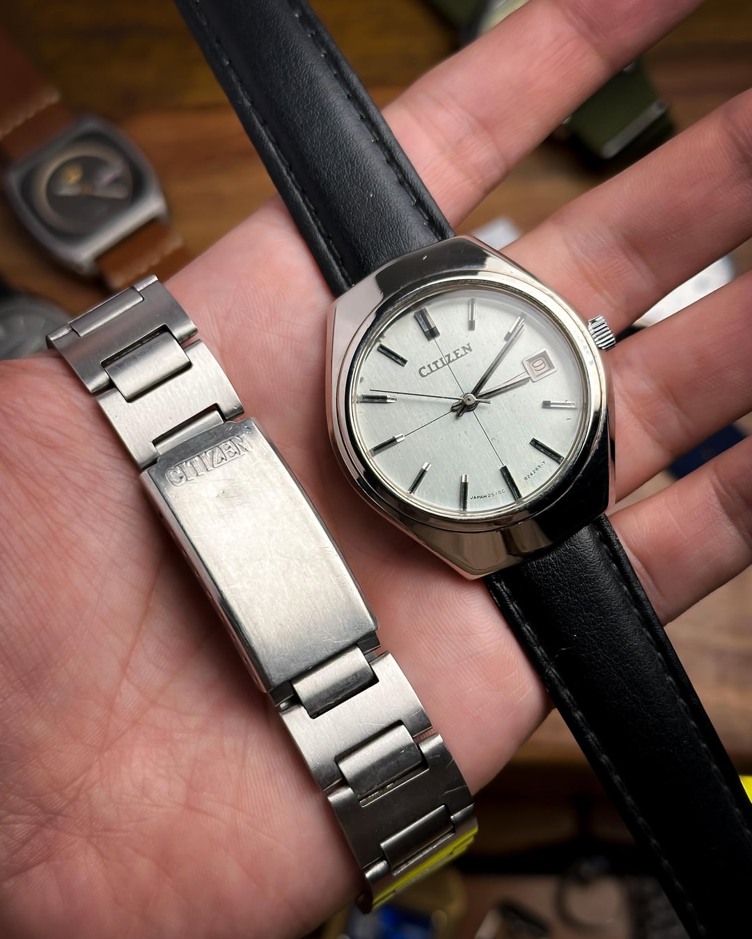 [Timestamp](https://postimg.cc/xNSHLRp8) Hey Watchexchange! This is **The Linen Grid**—a nickname we gave this **classic 1970s Citizen** to highlight its unique **linen-textured dial**combined with a **subtle crosshair design**. This **hand-winding 17-jewel** timepiece stands out as a sophisticated piece of vintage watchmaking and an **excellent and affordable entry** into mechanical watches. Up front, the dial is the star: an **elegant silver tone** adorned with a **stunning linen pattern** and a **subtle crosshair design**. This combination gives the watch a **sophisticated vintage flair**. The **pencil hands** and **baton indices** complete the sleek look, offering excellent legibility. The sturdy **metal case** houses the heart of the watch, and the **acrylic crystal** keeps the dial protected, preserving its timeless appeal. The watch is complemented by the **original stainless steel bracelet**, adding a nice touch of nostalgia that fits the 1970s aesthetic perfectly. **It also comes with an extra brand new leather strap for a different look.** # 🔹 Key Dimensions * **Case Diameter: 37mm** * **Lug-to-Lug: 40mm** * **Thickness: 11mm** * **Lug Width: 18mm** 💵 **Price: $99 shipped** 📦 **Payment: PayPal F&F**, G&S (**+4.5% fee by buyer**) or **bank wire (US banks accepted)**. 📩 DM me for more pics or a custom timestamp. If you're after an elegant, hand-winding vintage Citizen with a unique linen dial and original bracelet, this 4-164296 delivers beautifully. Follow my Instagram **(link in bio)** and Reddit profile for more **vintage drops**.