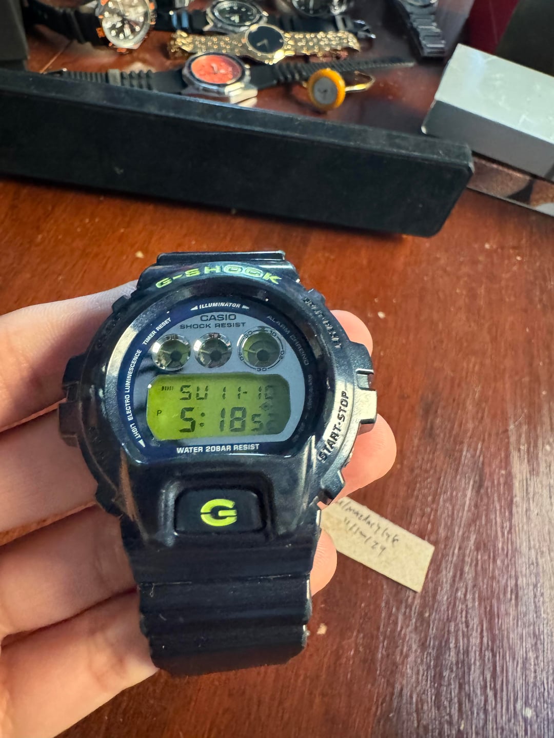Casio g shock 6900 everything appears to work. Typical wear and tear from use, a tiny bit of peeling of the coating in some areas. $60 reduced price shipped within USA.