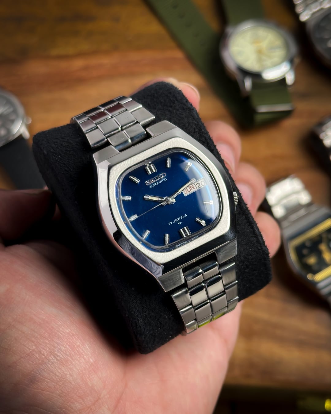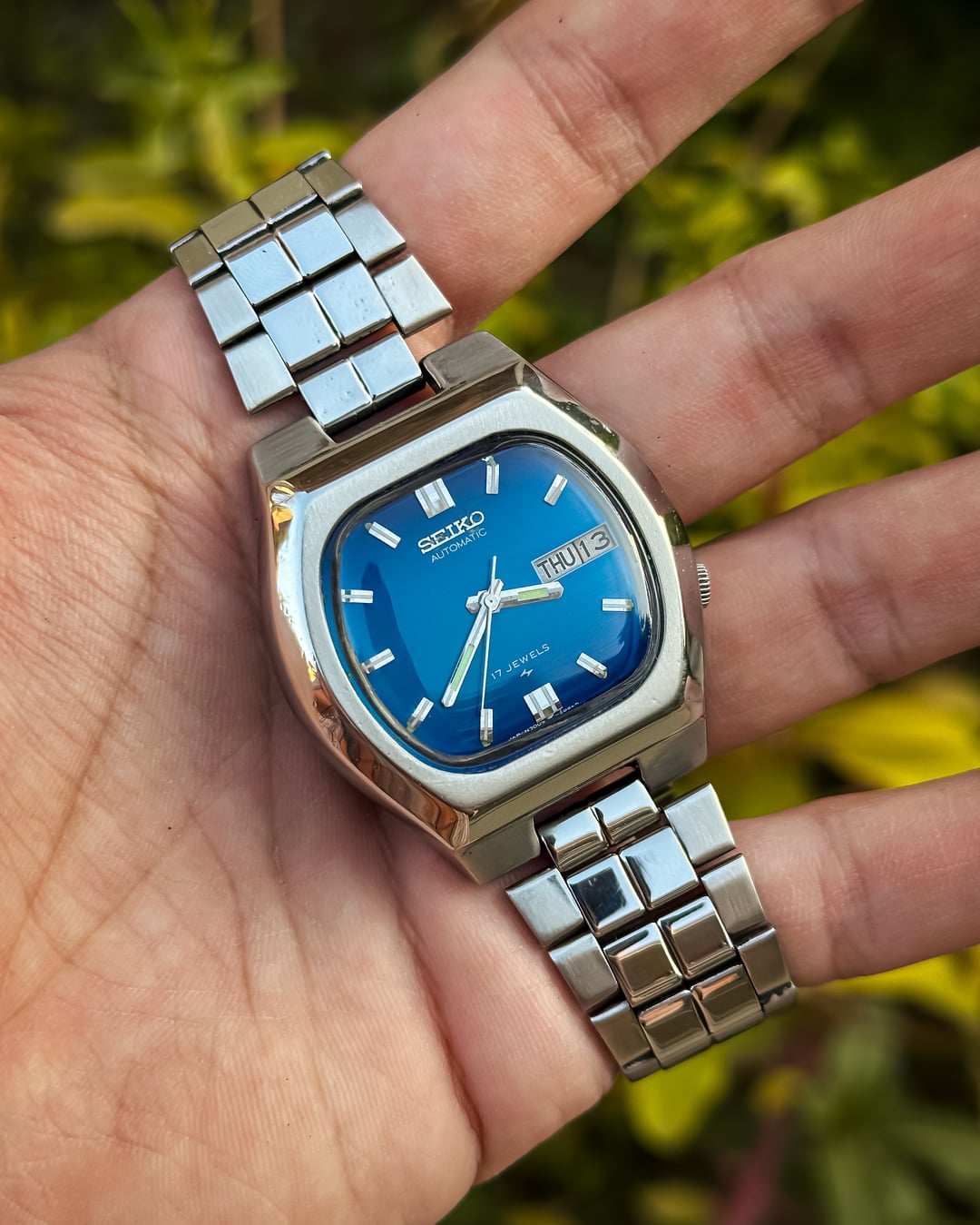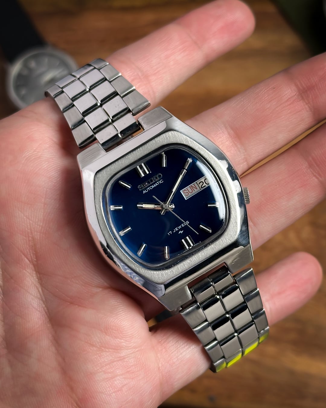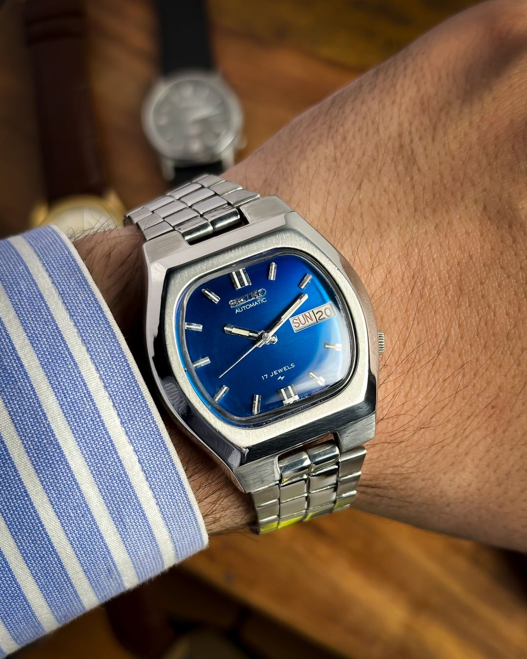 [Timestamp](https://postimg.cc/Ny3MWPkQ) Hey Watchexchange! This is the **Electric Blue**—a nickname we gave this **fantastic automatic Seiko** to celebrate its **deep electric blue dial**housed in the **bold, square-shaped case** iconic of the 1970s. This watch, dating from **January 1978**, stands out as a unique and **vibrant statement piece** with reliable automatic winding. The case features a bold **TV-Square/Cushion-Square** design, a hallmark of 70s and 80s watch design. The replaced **plexiglass crystal is domed and bold** just like it's original one, creating a fantastic vintage distortion effect that amplifies the dial's rich color and iridescence. Up front, the dial is the star: a **rich electric blue color** with a **stunning horizontal linen texture**. The color is **highly iridescent** and changes dramatically in different lighting conditions. For added depth and to truly showcase the color range, some photos were taken in daylight. The dial features crisp **pencil hands** and **baton indices** with a white stripe for visibility. The day-date window at 3 o'clock is clearly framed, and the crown is positioned subtly at **4 o'clock**. Below the '17 Jewels' text, you'll find the **Suwa Seikosha logo**, confirming its factory heritage. Inside beats the **dependable 17-jewel Seiko Cal. 7009** automatic movement. It is paired with its **original integrated stainless steel bracelet**, completing the authentic late 1970s look. **🔹 Key Dimensions** * Case Diameter: **36mm** * Lug-to-Lug: **42mm** * Thickness: **12mm** * Lug Width: **10mm (Integrated)** 💵 **Price: $199 shipped (or Best Offer)** 📦 **Payment: PayPal F&F** or G&S (**+4.5% fee by buyer**) or **bank wire (US banks accepted)** 📩 DM me for more pics or a custom timestamp. If you’re after a **unique, bold 70s Seiko** with an **unforgettable electric blue dial** and original bracelet, this 7009-5060 delivers beautifully. Follow my [**Instagram**](https://www.instagram.com/everistwatches/) and **Reddit profile** for more **vintage drops**.