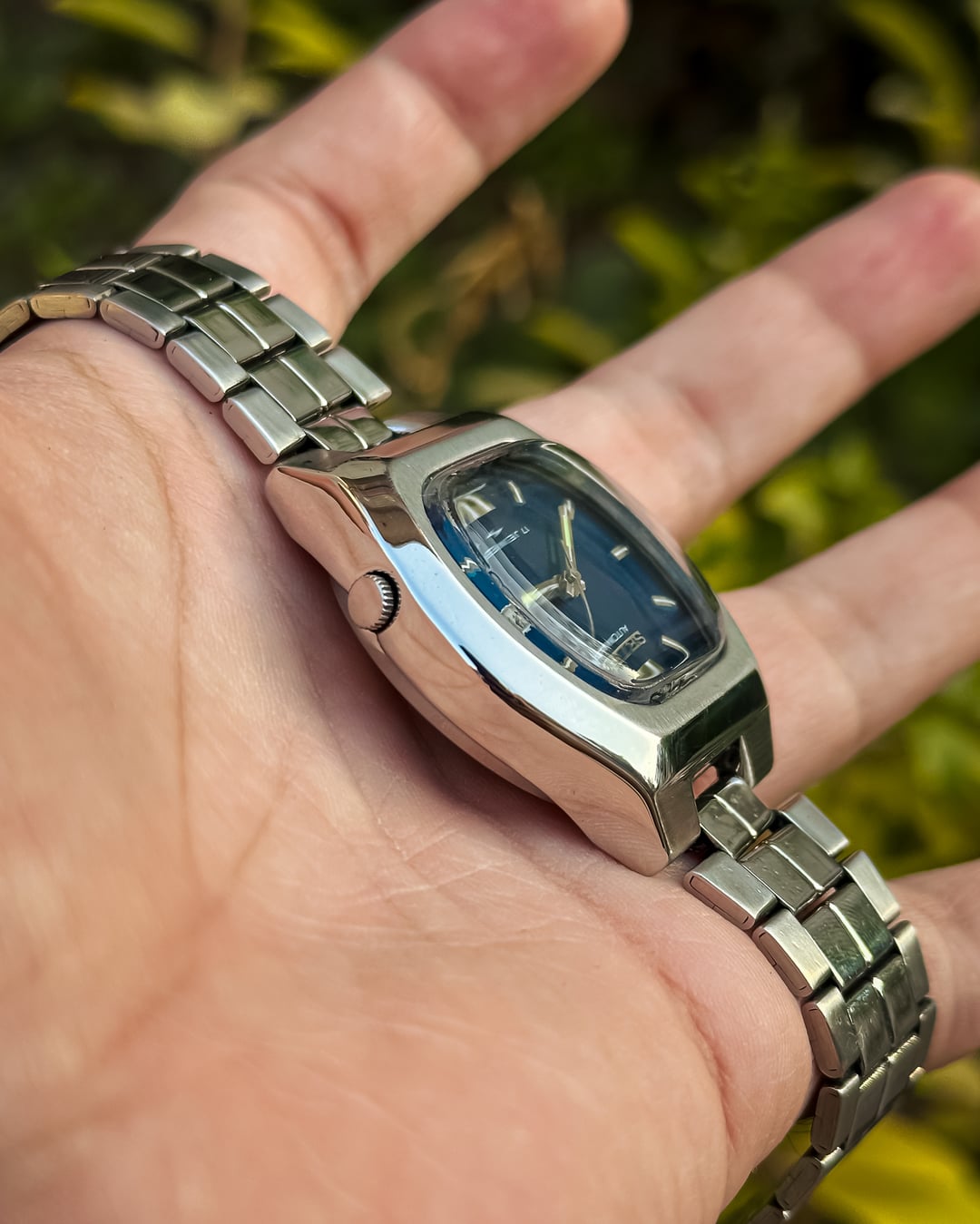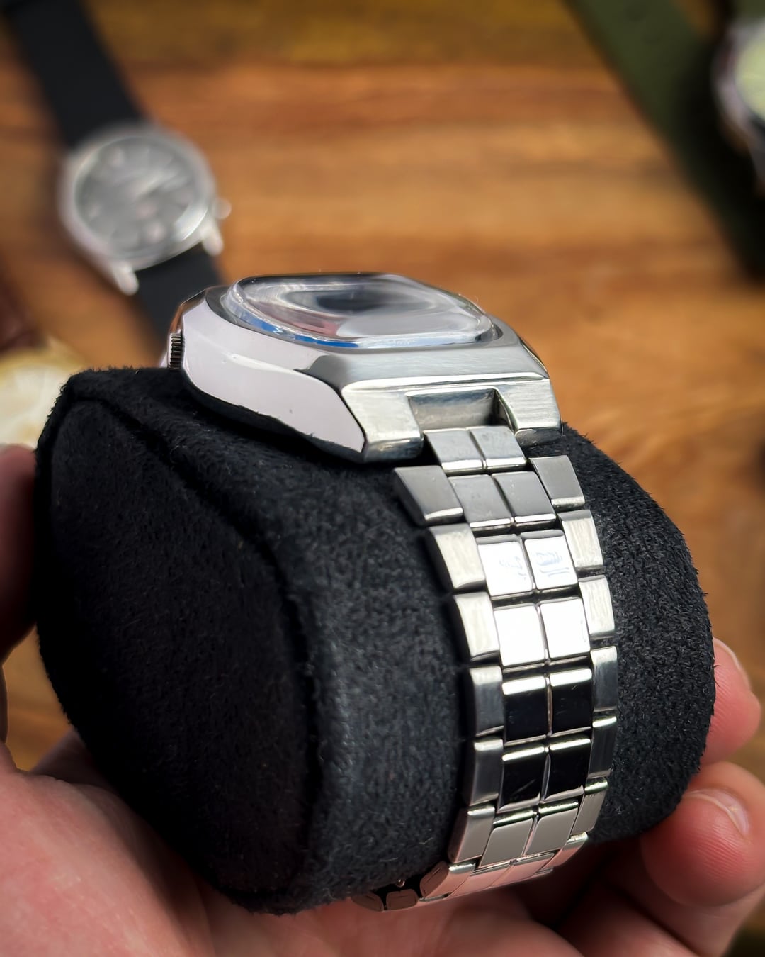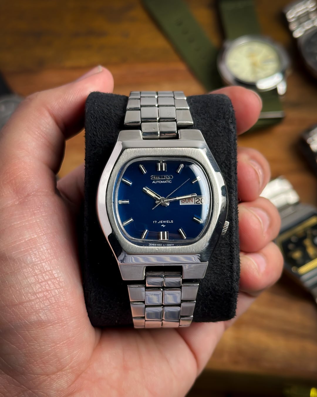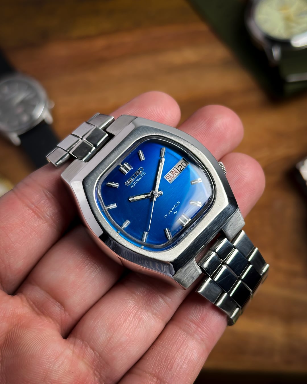 [Timestamp](https://postimg.cc/Ny3MWPkQ) Hey Watchexchange! This is the **Electric Blue**—a nickname we gave this **fantastic automatic Seiko** to celebrate its **deep electric blue dial**housed in the **bold, square-shaped case** iconic of the 1970s. This watch, dating from **January 1978**, stands out as a unique and **vibrant statement piece** with reliable automatic winding. The case features a bold **TV-Square/Cushion-Square** design, a hallmark of 70s and 80s watch design. The replaced **plexiglass crystal is domed and bold** just like it's original one, creating a fantastic vintage distortion effect that amplifies the dial's rich color and iridescence. Up front, the dial is the star: a **rich electric blue color** with a **stunning horizontal linen texture**. The color is **highly iridescent** and changes dramatically in different lighting conditions. For added depth and to truly showcase the color range, some photos were taken in daylight. The dial features crisp **pencil hands** and **baton indices** with a white stripe for visibility. The day-date window at 3 o'clock is clearly framed, and the crown is positioned subtly at **4 o'clock**. Below the '17 Jewels' text, you'll find the **Suwa Seikosha logo**, confirming its factory heritage. Inside beats the **dependable 17-jewel Seiko Cal. 7009** automatic movement. It is paired with its **original integrated stainless steel bracelet**, completing the authentic late 1970s look. **🔹 Key Dimensions** * Case Diameter: **36mm** * Lug-to-Lug: **42mm** * Thickness: **12mm** * Lug Width: **10mm (Integrated)** 💵 **Price: $199 shipped (or Best Offer)** 📦 **Payment: PayPal F&F** or G&S (**+4.5% fee by buyer**) or **bank wire (US banks accepted)** 📩 DM me for more pics or a custom timestamp. If you’re after a **unique, bold 70s Seiko** with an **unforgettable electric blue dial** and original bracelet, this 7009-5060 delivers beautifully. Follow my [**Instagram**](https://www.instagram.com/everistwatches/) and **Reddit profile** for more **vintage drops**.