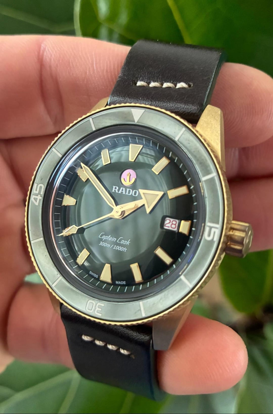![Thumbnail [WTS] Rado Captain Cook Bronze- Green Dial w/Concave Ceramic Bezel, Full Kit on Leather+OEM NATO w/Bronze Hardware. $1450 9](https://cdn-cf.watchpatrol.net/120x120/img/full/4b512a5b27d9295c389dbf8c091d28724ba77b4d.jpg)