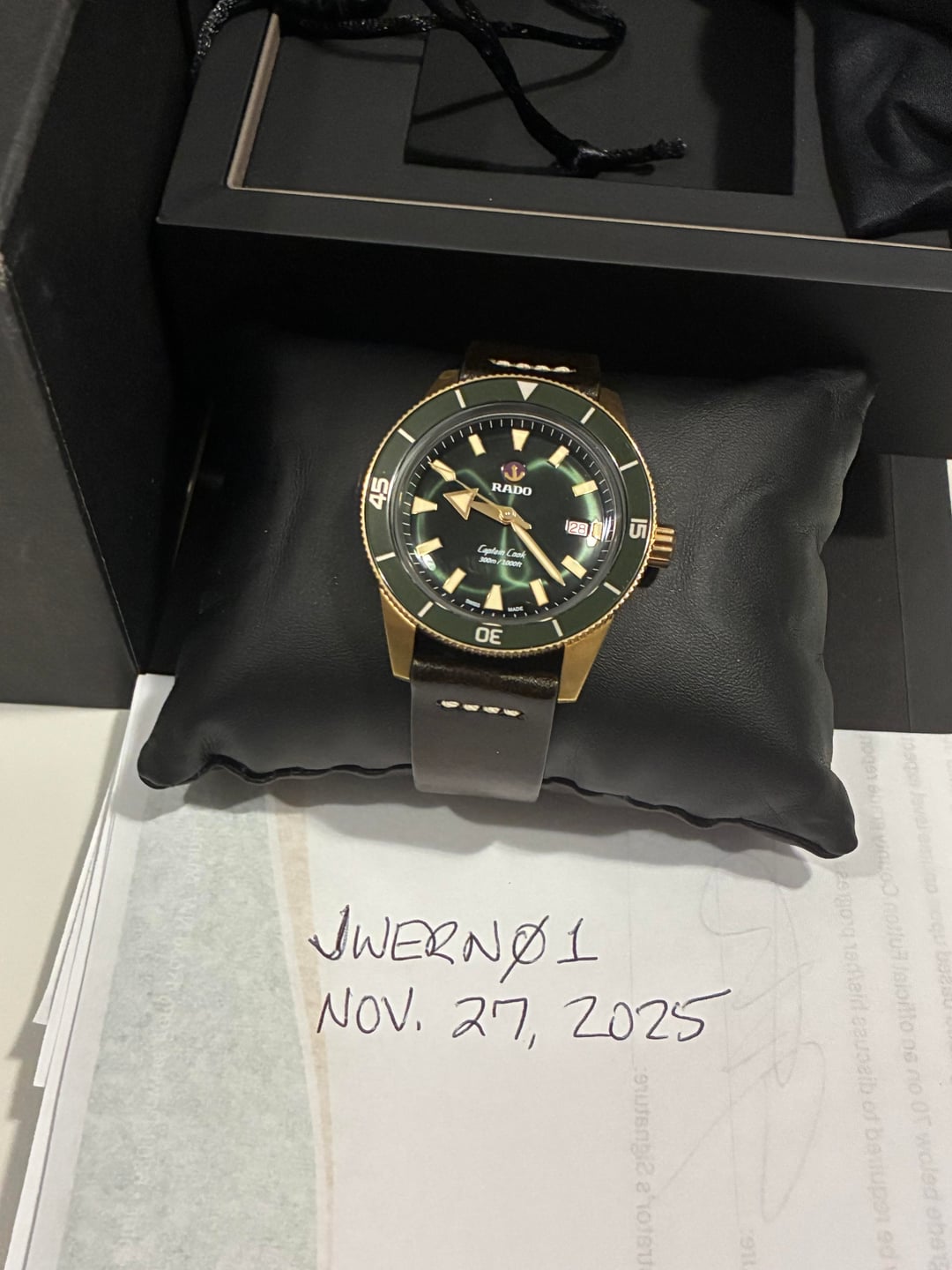 ![Thumbnail [WTS] Rado Captain Cook Bronze- Green Dial w/Concave Ceramic Bezel, Full Kit on Leather+OEM NATO w/Bronze Hardware. $1450 8](https://cdn-cf.watchpatrol.net/120x120/img/full/6836f95728e9a4d62ffcd6e7b5d4524ad85b9d46.jpg)