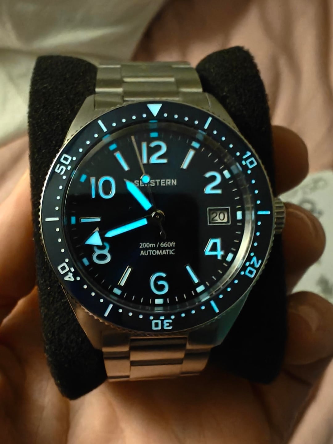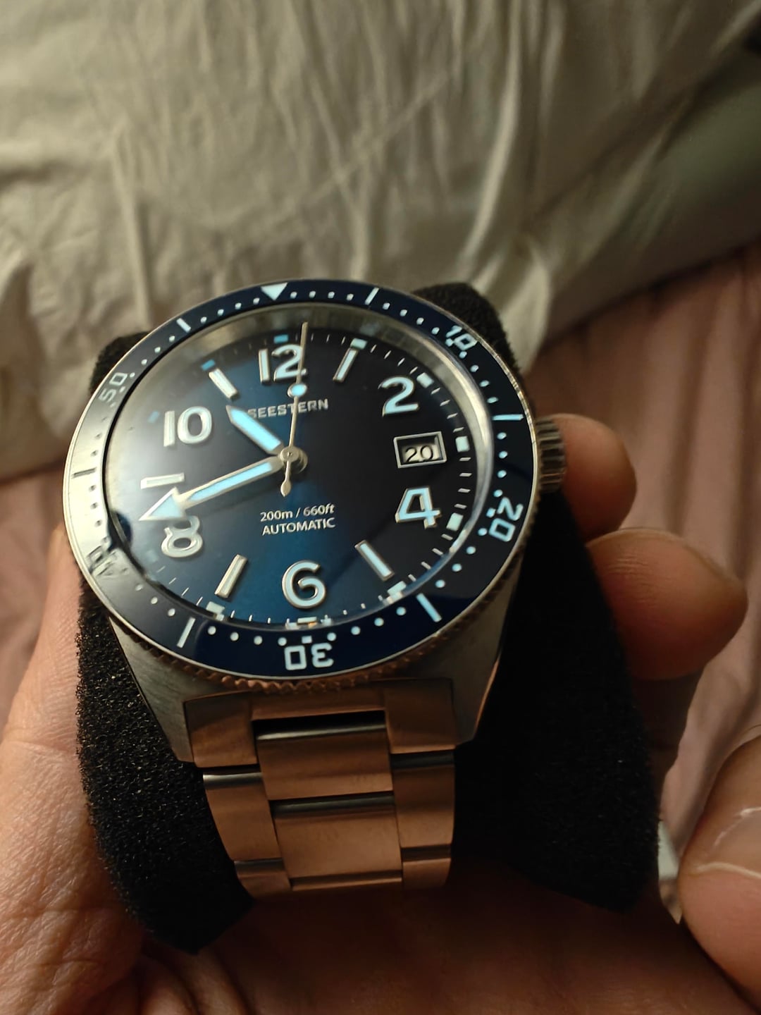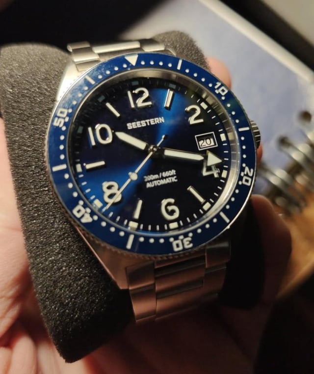 For sale is a great condition Seestern s434 in sunburst blue. Great lume. Sized for my 7.25 in wrist, have all links. Asking $150 obo