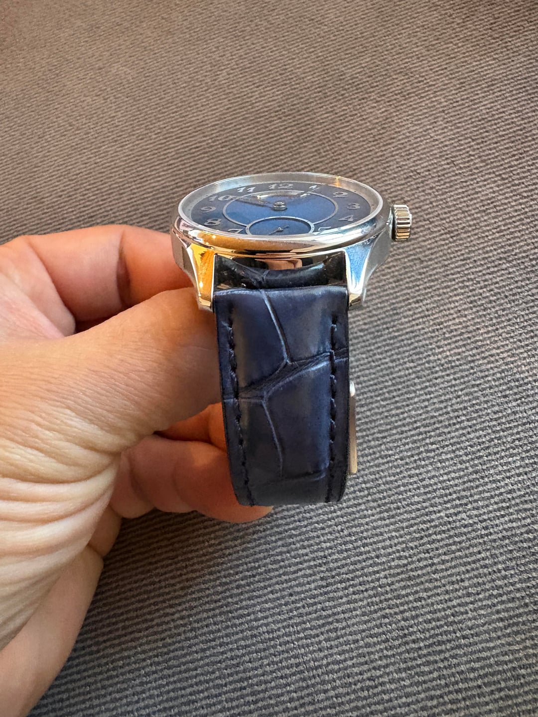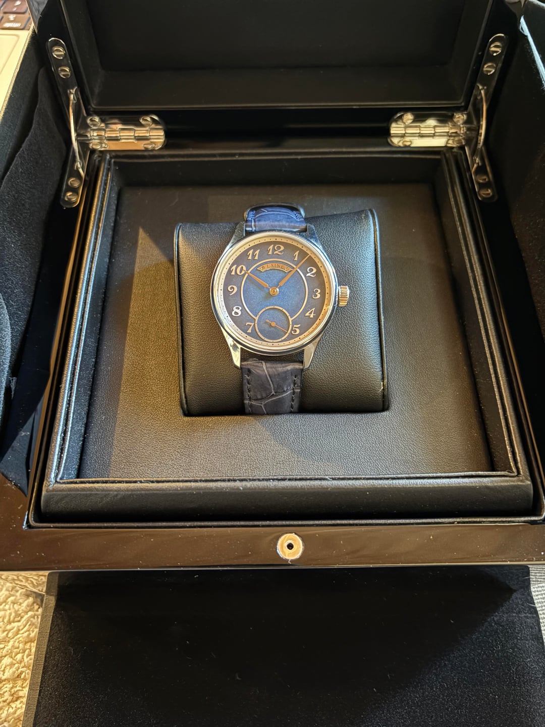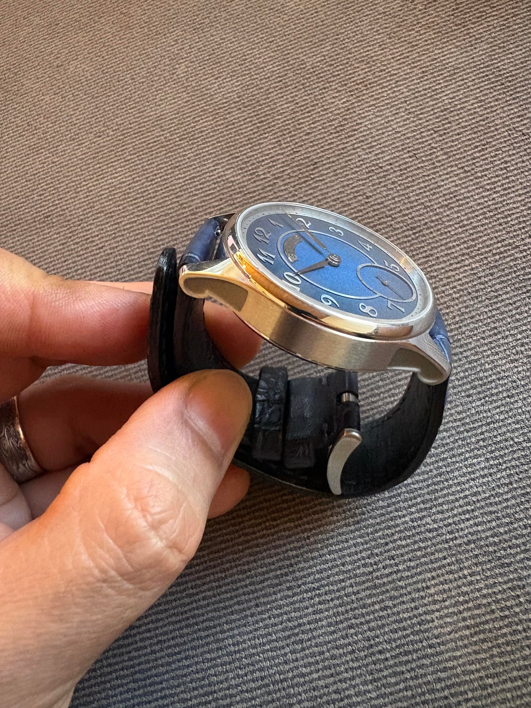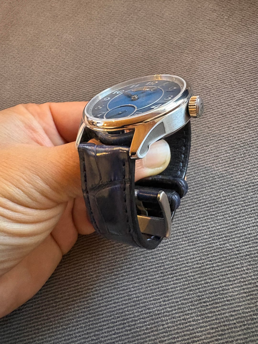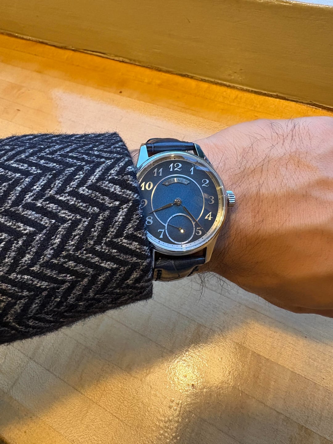 Here’s one that doesn’t show up too often. The Gelidus 2 isn’t just a watch—it’s a masterclass in restraint, craft, and the kind of finish work that makes loupe-wielders audibly gasp. Made by Finnish independent watchmaker Torsti Laine, the Gelidus 2 balances old-school horology with a quiet confidence that says, I don’t need to shout to be noticed. The frosted dial? Hand-finished. The movement? A reworked Unitas 6498 that’s been dressed up to the nines—hand-beveled bridges, black-polished steelwork... every screw, every angle, every grained surface feels intentional. **Condition:** Overall very good. Minor scratching on bezel between 6 and 7, barely noticeable in normal light and would polish out if needed. Keeping great time. **Scope of delivery:** Full set with 2019 card. **Specs:** Case size: 40.5mm Lug-to-lug: 48mm Case thickness: 10.5mm Water resistance: 50m **Price:** $5600 shipped insured in the US. Payment by wire, Zelle, or cash F2F in SF Bay Area. PayPal is only accepted for users with 25+ successful transactions or similar verifiable references, no exceptions. **Trades:** Not at this time. **Trusted seller in watches and collectibles (i.e. Pokemon cards). Dozens of watch transactions, hundreds overall, 100% positive across platforms.**