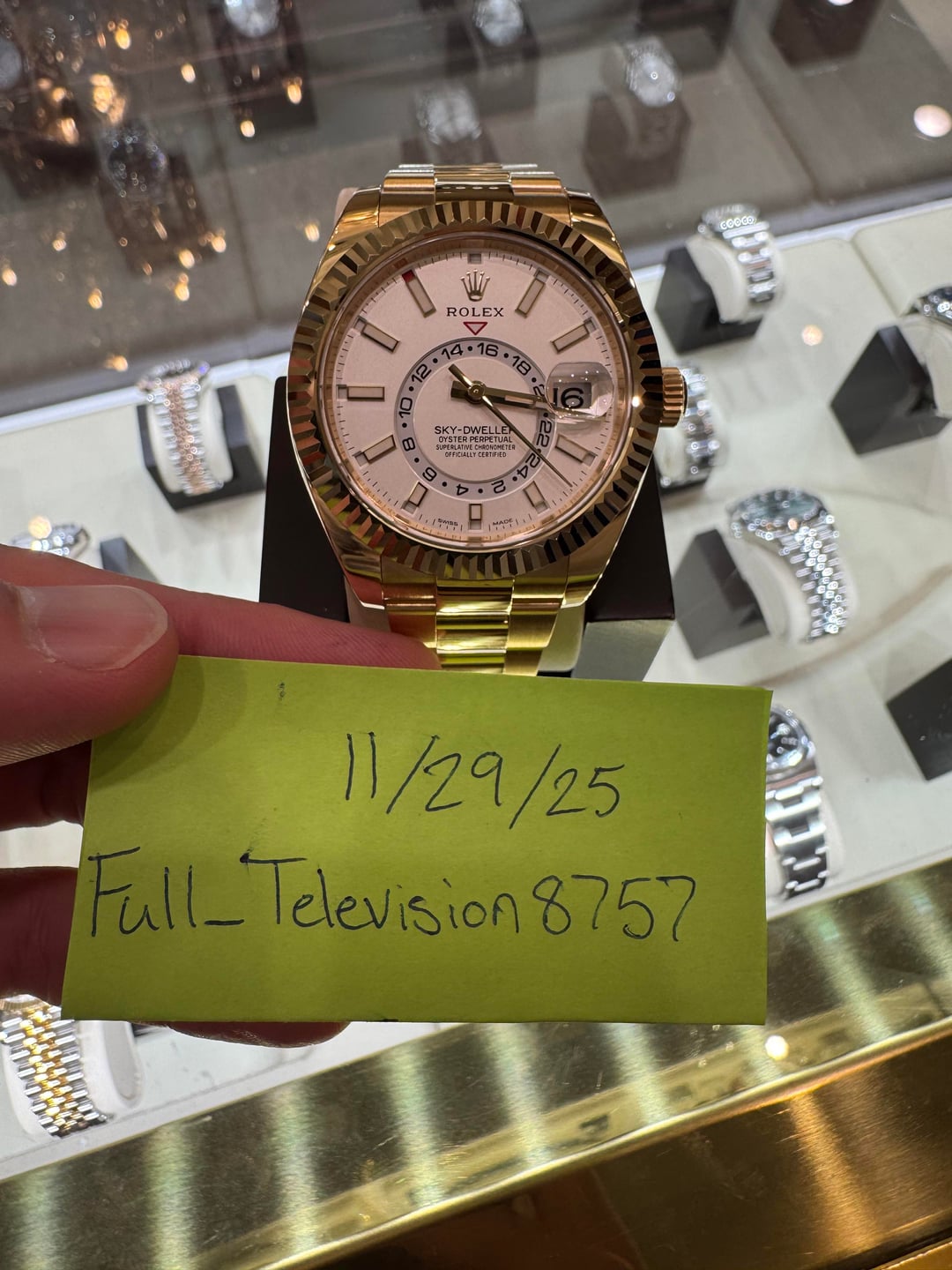 FOR SALE!!! 2022 Rlx Sky-Dweller 18k Yellow Gold White Dial 326938 Watch with Card Specs: 42mm 18k Yellow Gold Fits 7.5 inch wrist at most Has card and hang tag (December 2022 card) Condition: has light scratches on the case, bracelet and bezel. Still under 5 year warranty Price: 3️⃣8️⃣,9️⃣9️⃣9️⃣ Shipped! (Bankwire only, WA state residents are subject to sales tax) Payment: Bankwire or can accept credit card for higher price IG: porcellojewelers Email: [email protected]