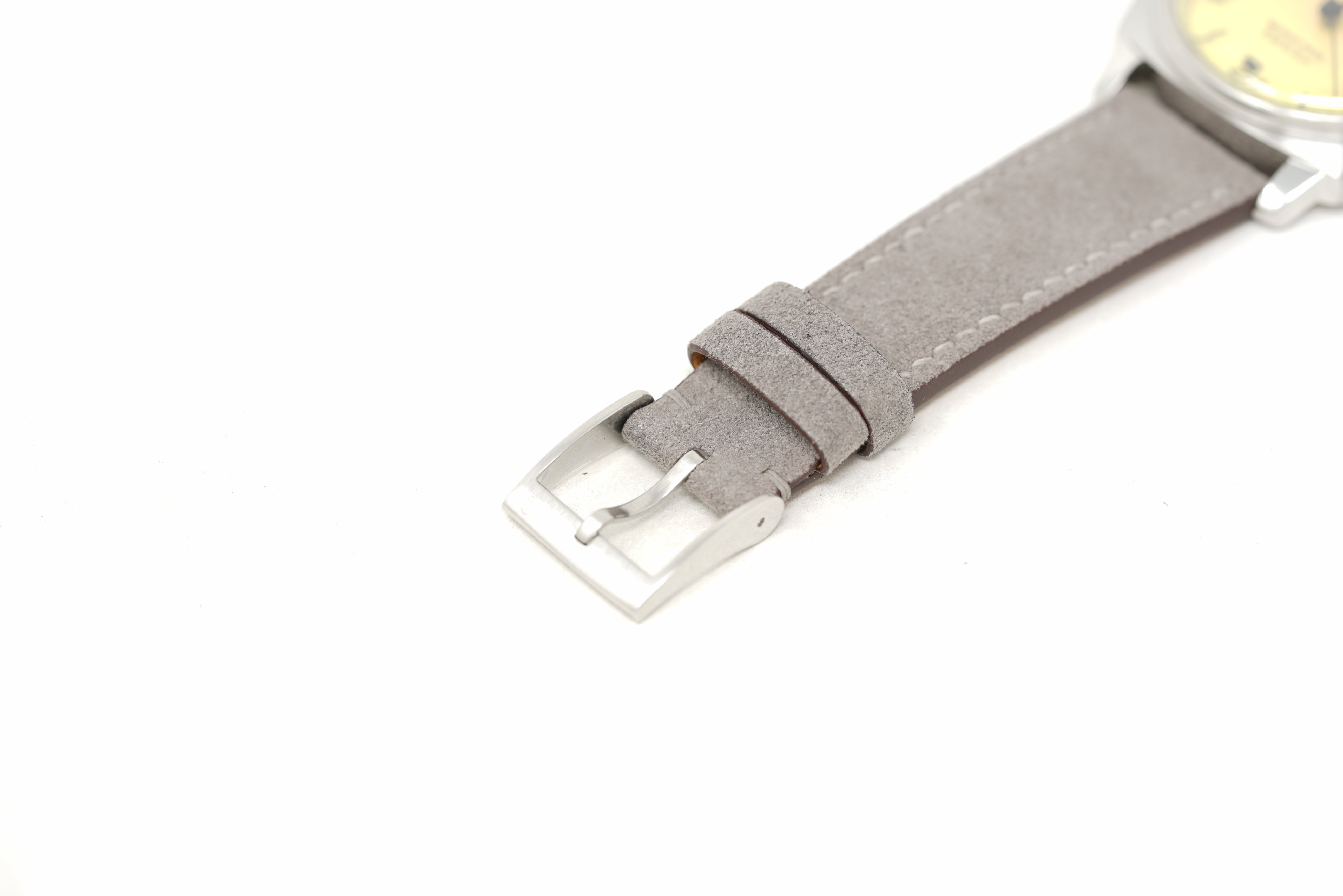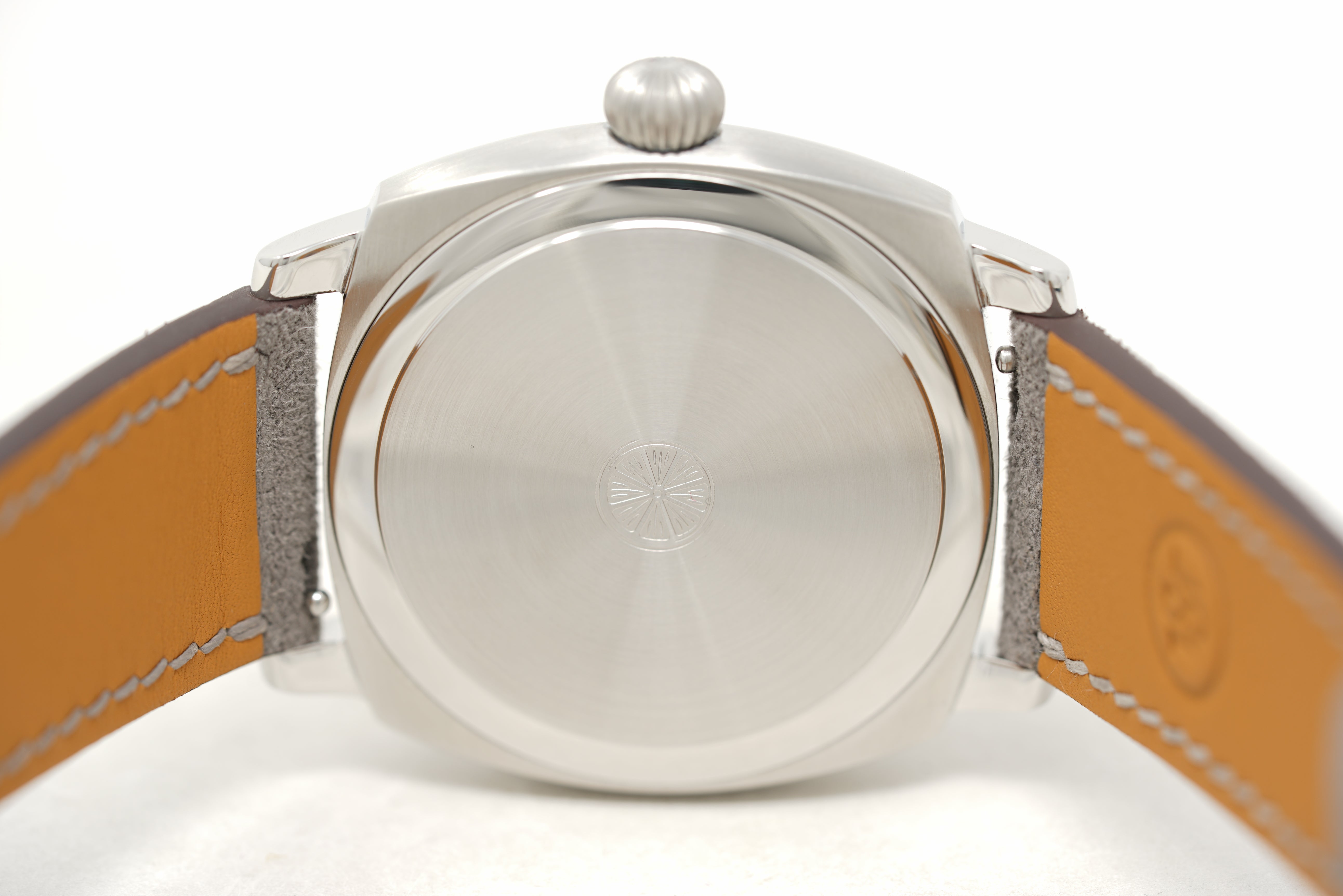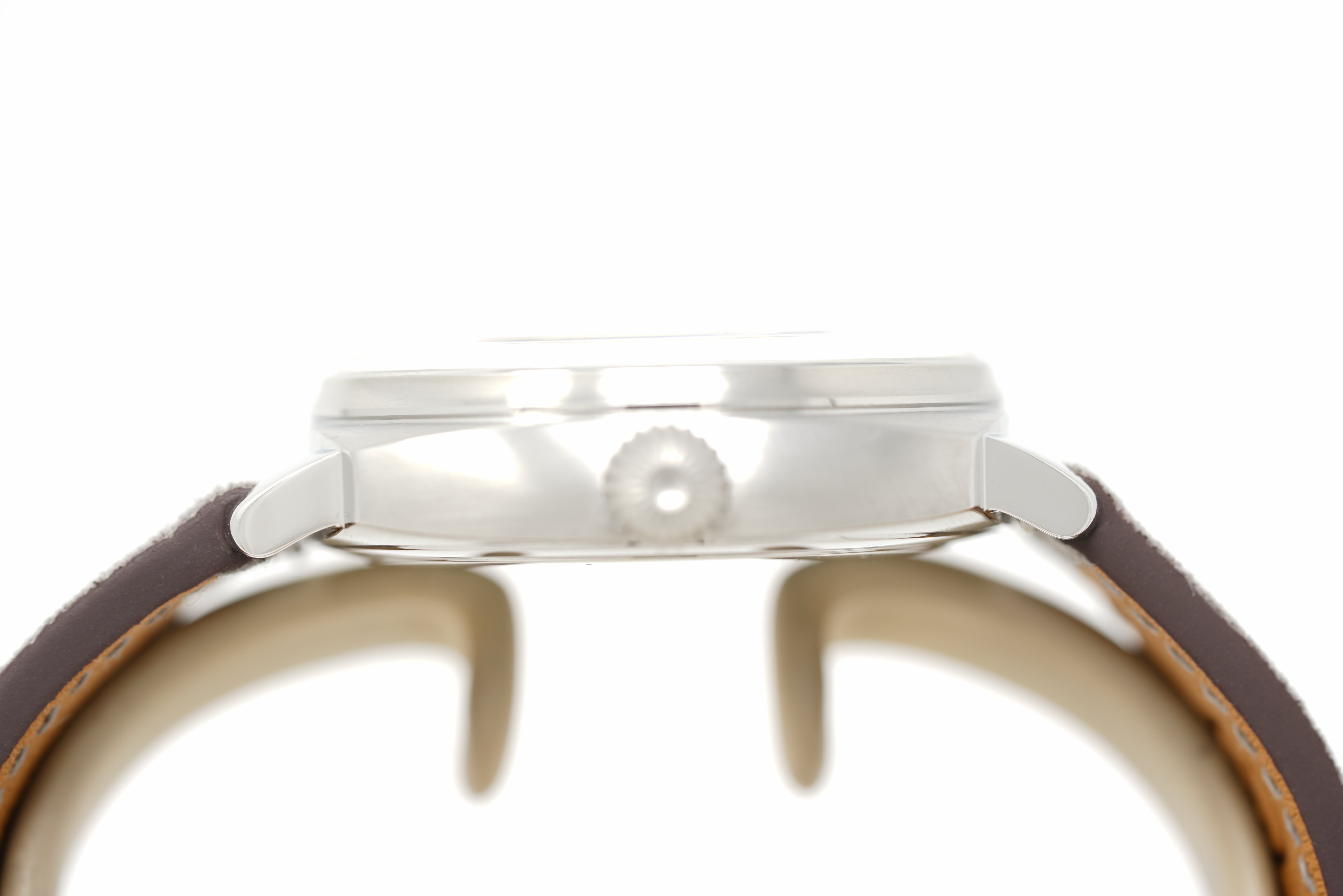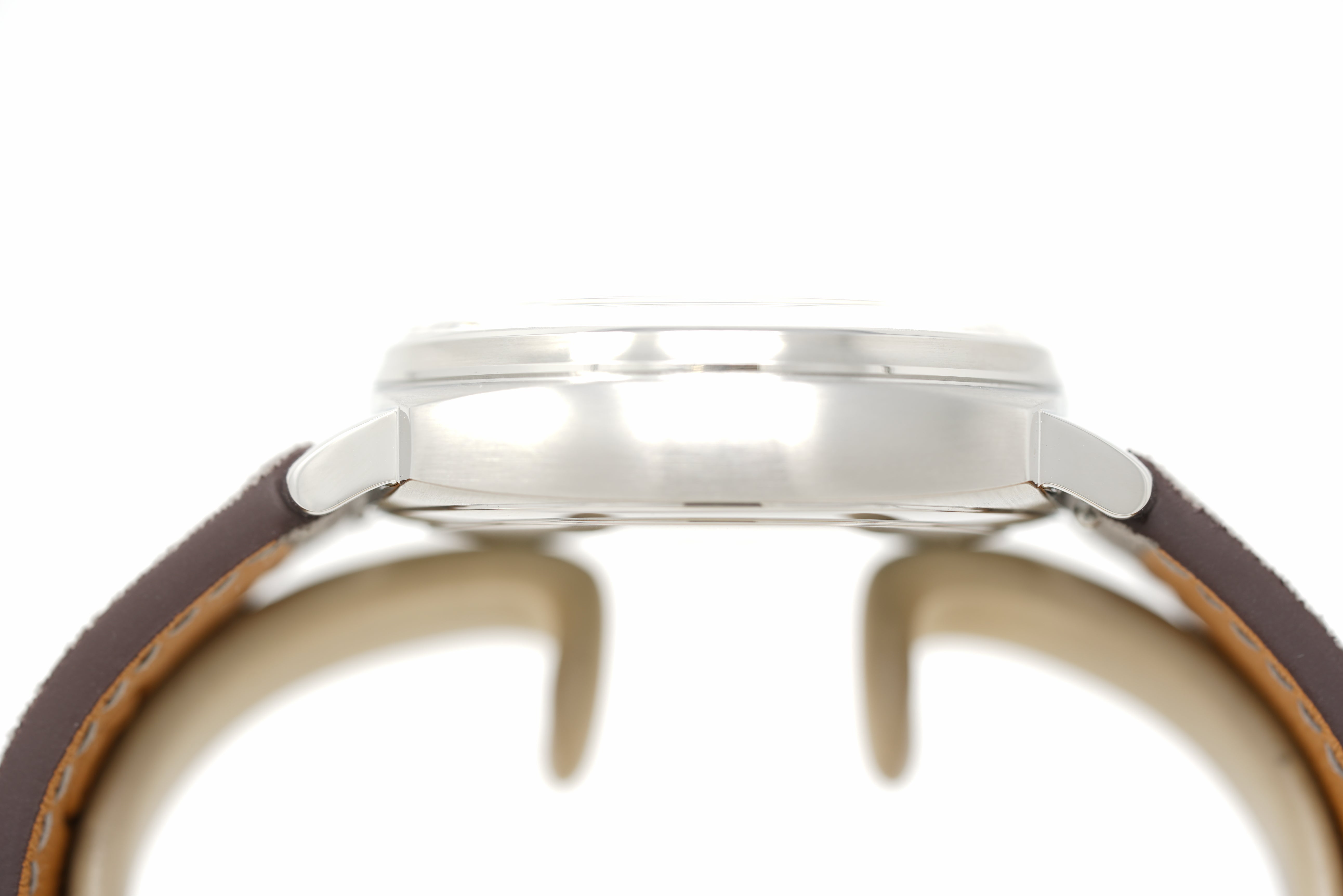 This pre-owned watch is in 97% condition due to faint marks on the sides and back of the case. The strap is in 97% condition due to minor wear. The strap will accommodate a wrist size up to 7 and 1/2 inches. This watch comes with its inner and outer box, instruction manual, certificate of authenticity, and the one-year Topper Pre-Owned Select warranty.
