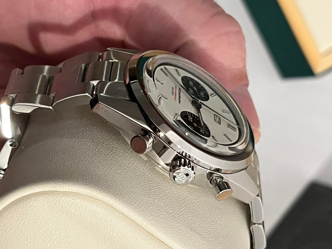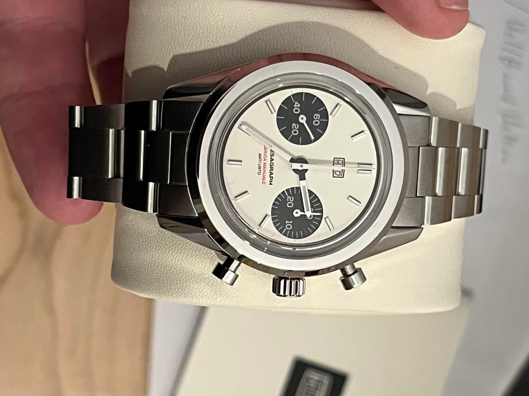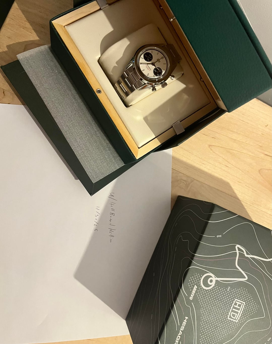 Hi r/watchexchange! Selling a LNIB Hesagraph Cannoli Chronograph. Please note, this is the newer model with the ST-510 Elabore handwind movement. Save yourself some customs fees, and get a serious discount from new price, and buy this! 39mm wide case, 20mm lugs, 12mm thick. Bracelet will fit up to a 22cm wrist. Comes with full kit, inner/outer boxes, warranty card. Feel free to reach out with any questions or requests. Asking $1,450.00 shipped insured in the USA, OBO. Save on full cost from buying brand new and avoid pricey tariffs! Trade offers welcome! Thanks for looking!