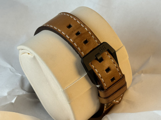Genuine B&R leather Strap. Matching sand color with the dial.
