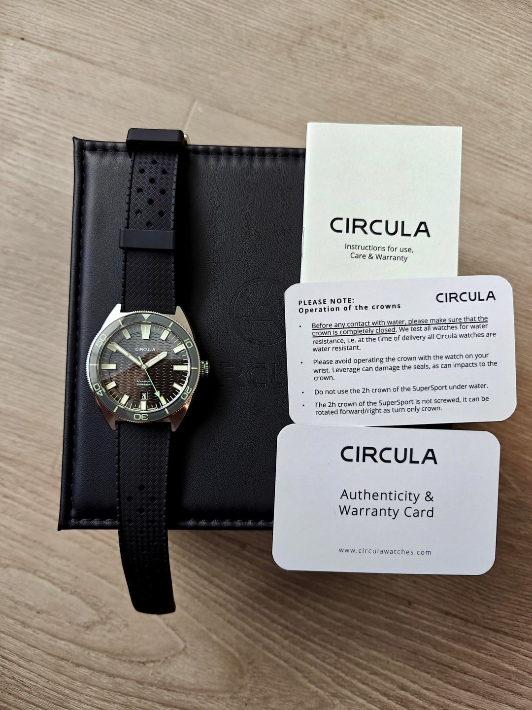 Hello all and welcome to my sale post! Up for sale is a fun and refreshing watch from Circula. This is the AquaSport II with an Anthracite dial — a German-made watch known for its high precision, powered by the Elaboré-grade SW200-1 movement. This watch is in excellent pre-owned condition. Showing only minor signs of wear from light use and handling, with no overall significant issues to note. The watch will come with box, instructions, and unsigned warranty card . -Reference: AE-ST-AS -Size: 40mm -Movement: Automatic -Strap: Original strap -Watch with box, instruction manuals, and warranty card Price: $625 shipped anywhere in the continental U.S. No trades sorry! I take Zelle (preferred), or bank wire as payment for higher priced items. Paypal F&F/Venmo can be an alternative if you have feedbacks on this subreddit. I have 100+ confirmed transactions on watchexchange, and many more on other platforms. Buy with confidence!