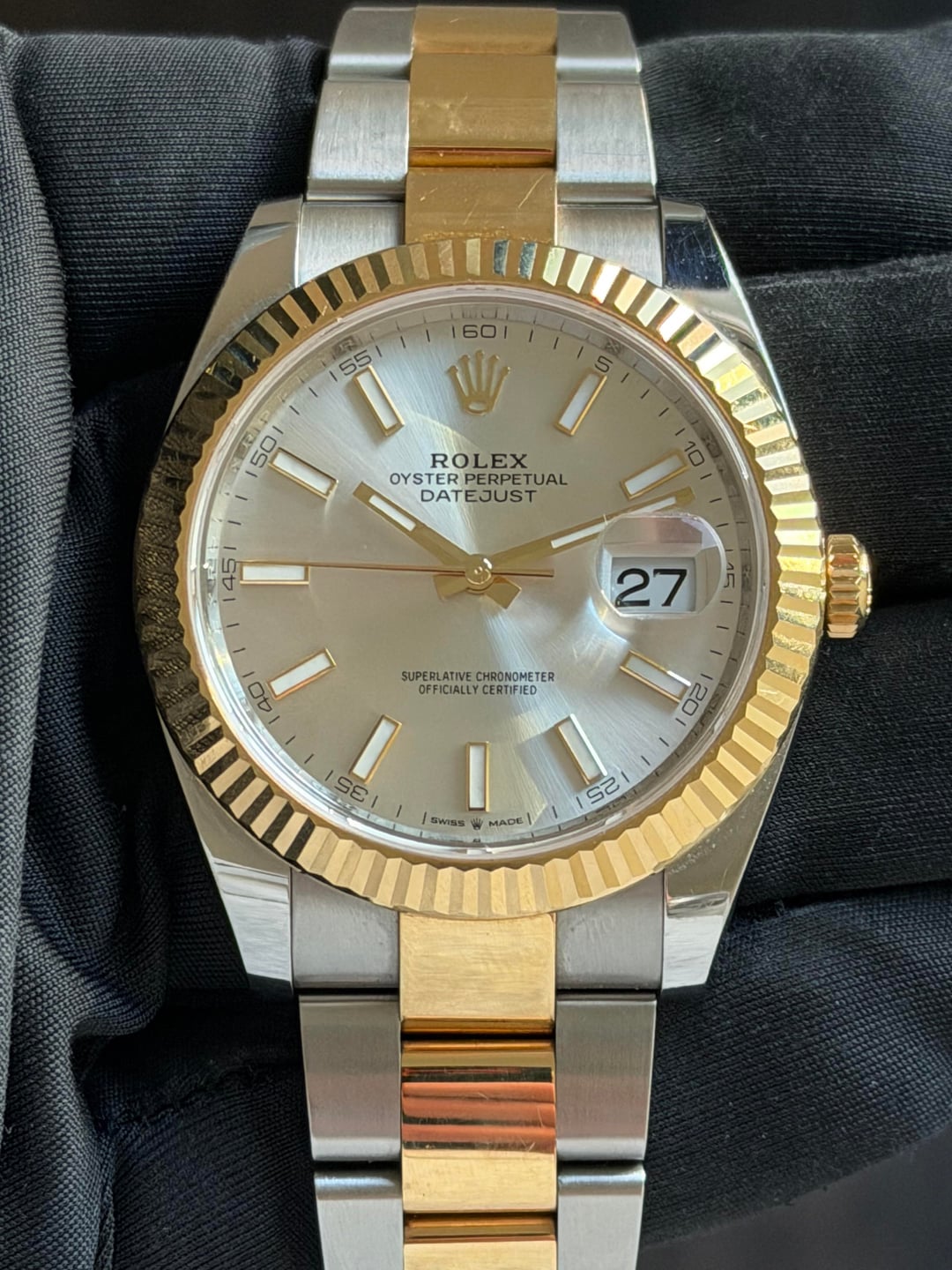 2022 Rolex Datejust 41 126333 Silver dial. Fluted bezel. Oyster bracelet Two-tone 18k yellow gold. Box & papers. -1 link **$13750** / Zelle, Venmo, or WU accepted. Timestamp: https://imgur.com/a/VEdgBNf I have tons of references on multiple platforms including WatchExchange. I am more than happy to show these.