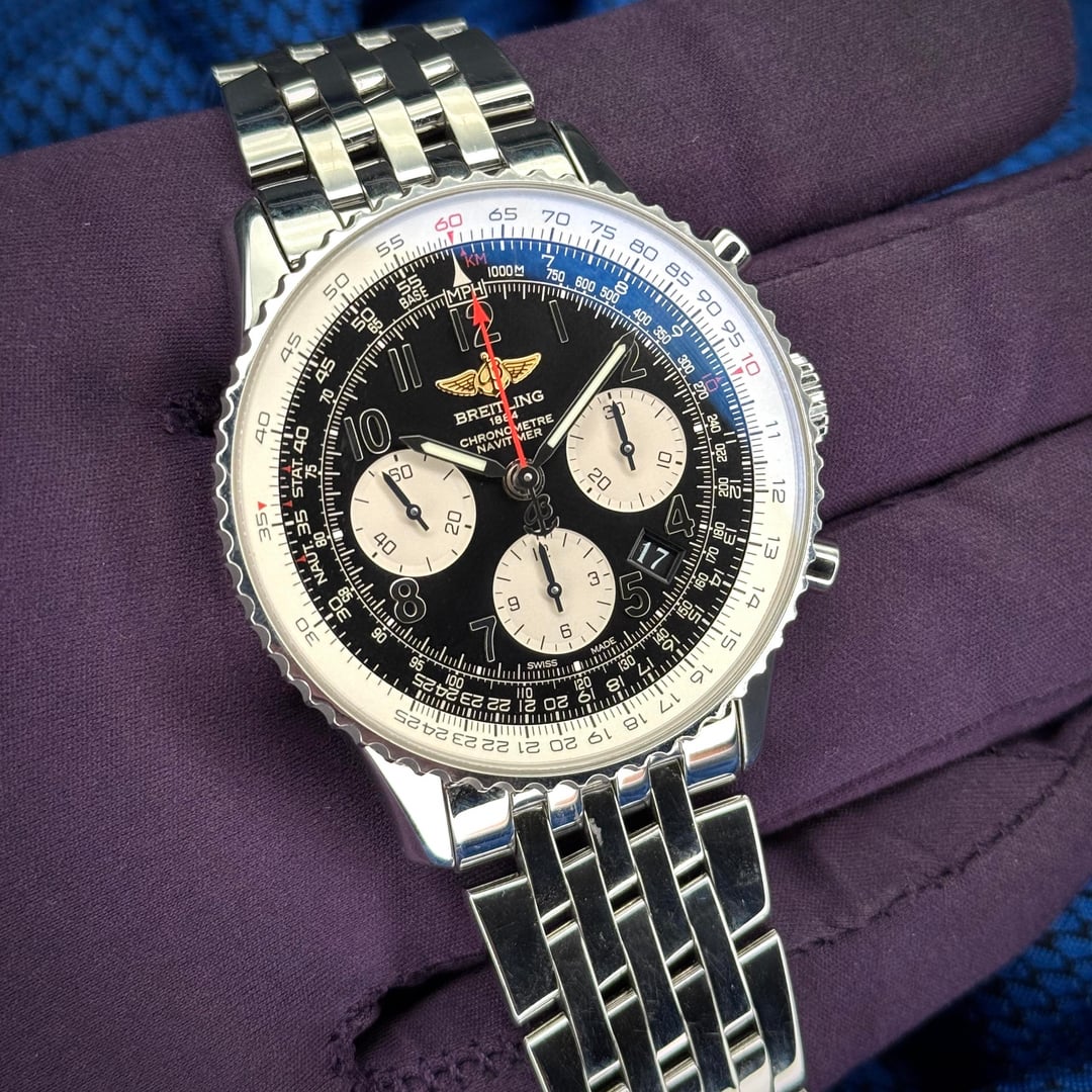 The Navitimer is easily Breitling's most recognizable watch. This example comes in an incredibly wearable 43mm size and has a reverse panda dial, making it easy to read as well. Add in the wonderful Breitling movement and you've got yourself a watch that is sure to last a lifetime. This example comes with the watch, outer box, inner travel case, manual, sliderule and sliderule instruction booklet, hang tag, chronometer attestation, and service paperwork from November 2023. Asking $3950 The watch will be shipped, overnight, fully insured, with signature required, as soon as funds clear. As for myself, I have many references from buying and selling across the various forums, Reddit, WUS, TRF, and others that I would be willing to provide upon request. Feel free to reach out to me with any questions and I will do my best to answer! Thanks for looking and feel free to follow me on IG for more! @the.apex.co