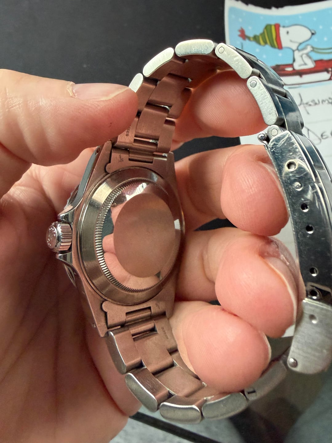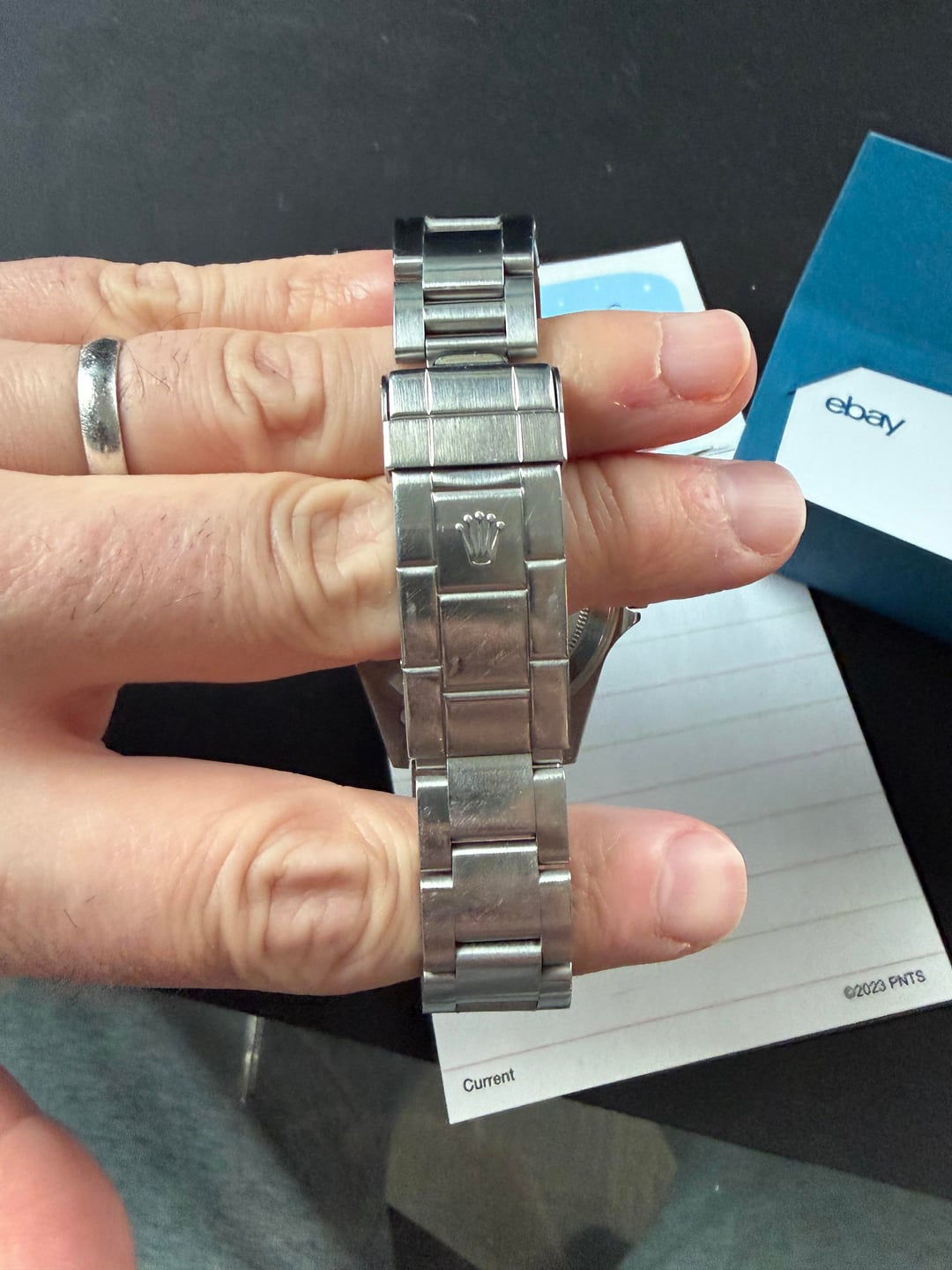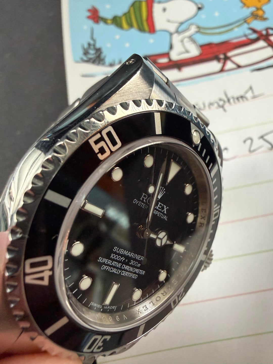 Catch and release for me. Case: Excellent condition 40MM case with thick lugs. Dial: Excellent dial with matching hands. No nicks or flea bites on the crystal Bracelet: Original bracelet. No stretch. 12 links fit up to 8.2” fully extended. Diving extension included Service history: No service history. Runs about 3-4 sec fast a day. All parts original and luminova shines bright. Comes with original Swiss tag and eBay authentication card dated Sept 2025 Offered at $7,990 shipped conus FedEx next day fully insured to your local FedEx location. I will gladly hop on a FaceTime call, exchange info, communicate via text or phone and over communicate with the buyer at every step of the way. This is the cheapest submariner on the market, looking at ebay, C24 or watch charts. Video: https://imgur.com/gallery/rolex-submariner-PHZqYCw No trades desired. Payment by PayPal F&F, Zelle or bank wire. Located in Southern CO Plenty of feedback here, eBay and WUS.
