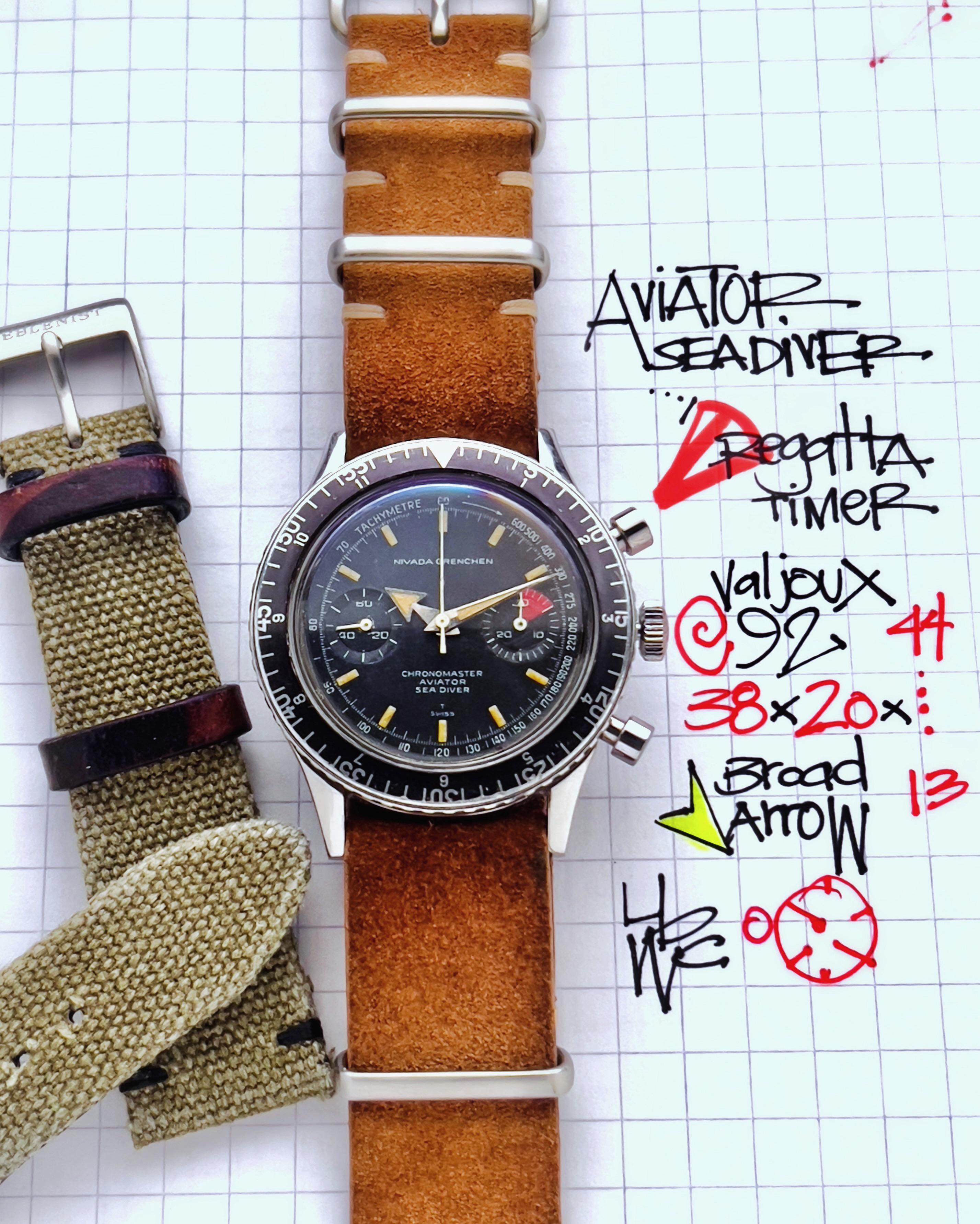 1 week ago | [WTS] Nivada Grenchen Chronomaster Aviator Sea Diver Chronograph circa 1960s | $2,999 | |