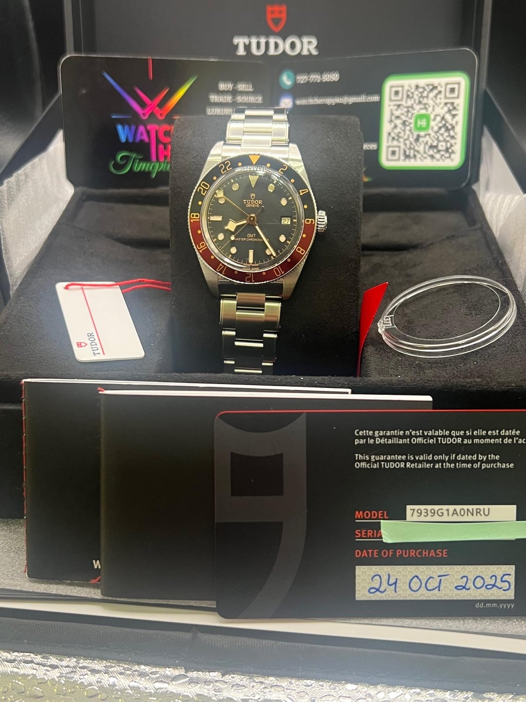 **F/S: New 2025 Tudor Black Bay 58 GMT 10/25 7939G1A0NRU “Coke”** **Shipping from Florida!** **Specs:** \* Beautiful black domed gilt dial w/Back and Burgundy Bezel \* Self-winding \* Size 39 SS case w/SS bezel and aluminum bezel \* Three-link SS bracelet with T-fit clasp \* 200M Water Resistance \* 65-hour power reserve \* MT5450-U (COSC-METAS) movement **Includes**: Warranty card 10/25, double boxed, booklets, tag, all links. **Condition:** Unworn, full stickers **Price: $4,299.00** [**+ Insured shipping to your local FedEx for pick-up** ]()**in Con US**. I am also open to a face-to-face public transaction in or around the Tampa Florida Region, within reason. I have many strong and viable references within Reddit and from Buy/Sell/Trade Watch Facebook groups. Always willing to jump on a call or meeting link to show you the watch. Thank you and please reach out if you have any questions or concerns. Florida residents may be subject to sales tax w/o a valid reseller cert. ***No Trades, TY*** **Location**: Tampa Florida **Payment:** Zelle or Wire Timestamp: [https://imgur.com/a/I0k0iqK](https://imgur.com/a/I0k0iqK) FB: Watch Therapy Timepieces IG: [@watchtherapy4u](https://www.reddit.com/u/watchtherapy4u/)