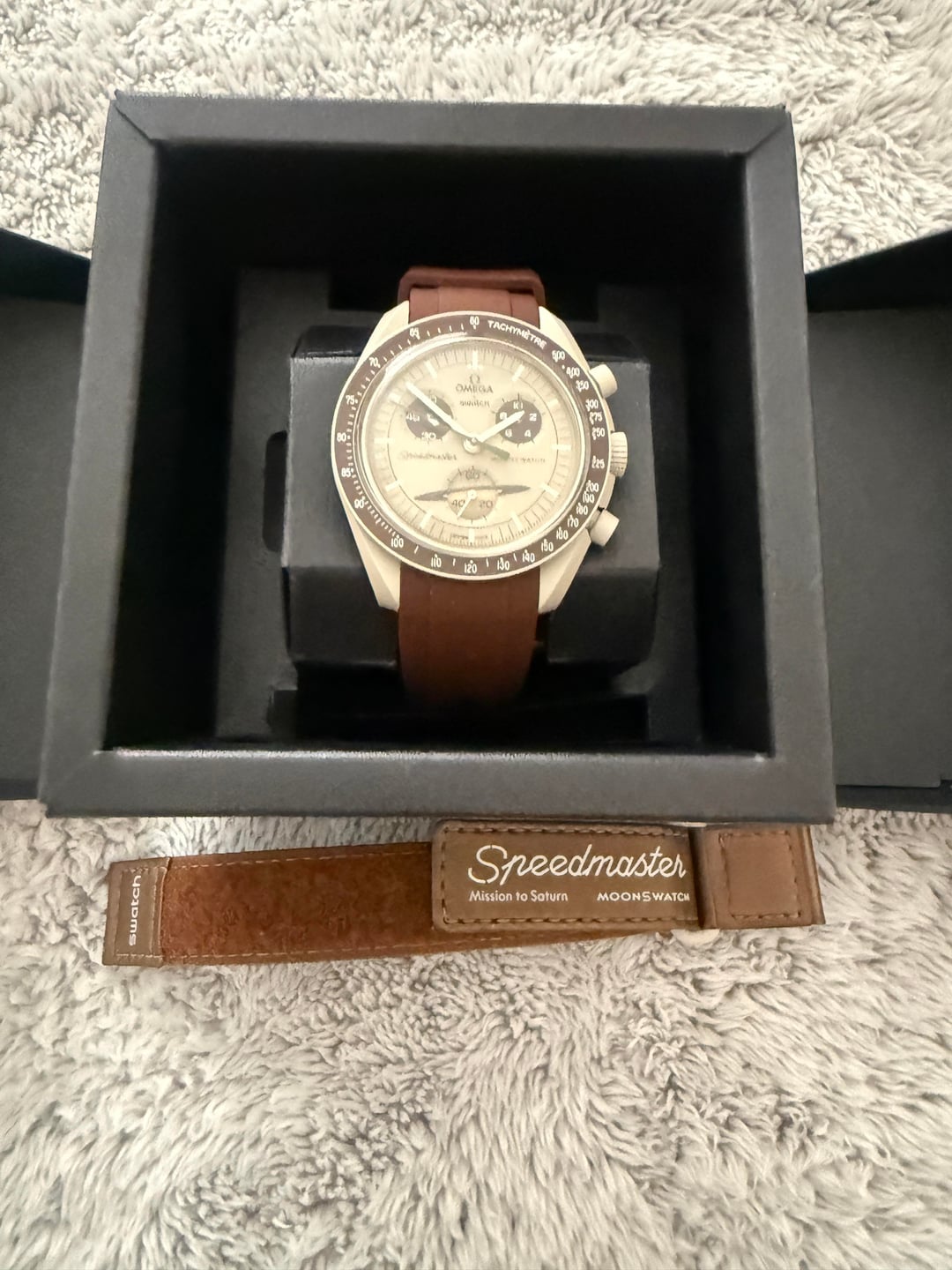 Hey WatchEx. Up for grabs is a great condition Moonswatch Saturn. Comes with full kit including a silicone strap. I’m asking $200 obo shipped in conus. Shoot me a PM with any questions. Thanks!