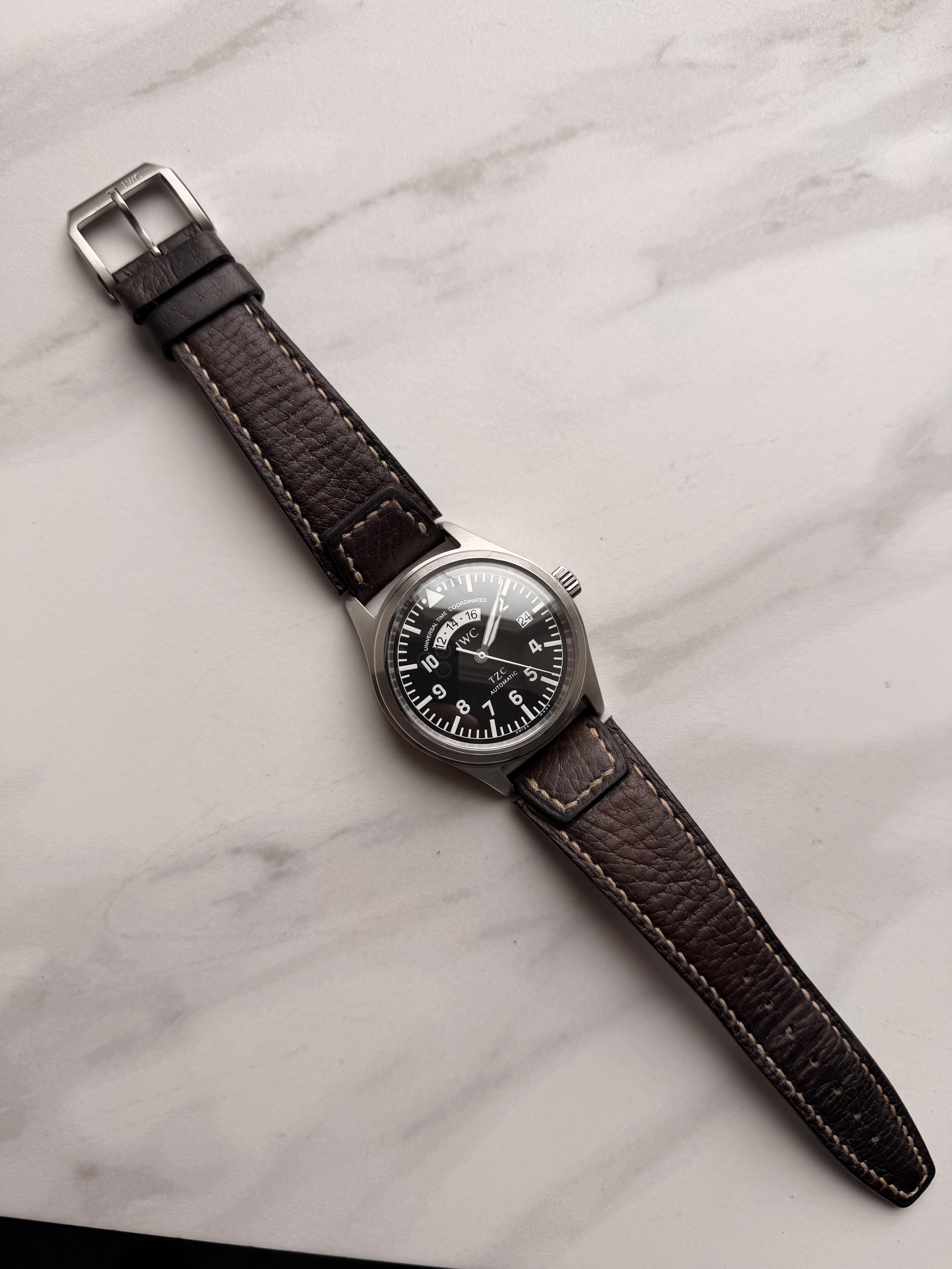 Happy holidays! Up for sale is my IWC Pilot's Watch UTC IW325101 with original strap and buckle (watch only - no box or papers). Watch is in great condition for its age. Some minor wear, scratches, and dings, but keeping good time (\~ -4s/d for me during regular wear), winds smoothly, and everything works great. I'm a strap maker and just cleaned and conditioned the original strap - it has wear, but plenty of life left. Also comes with the original pin buckle in good condition. [Album](https://drive.google.com/drive/folders/1YVR5WAb3gl17QaBHcSTxms80pV6Q31Y3?usp=share_link) [Timestamp](https://drive.google.com/file/d/14RV01L8M9BCL0RaButZY52XDDq69dP43/view?usp=share_link) Some details on the watch: Brand: IWC Family: Pilot Reference: IW3251-01 (aka: 3251-01, IW325101) Name: Pilot's Watch UTC Stainless Steel / Black / Strap Movement: IWC caliber 37526 Produced: 1998 - 2005 Limited: No Case Material: Stainless Steel Glass: Sapphire Back: Closed Shape: Round Diameter: 39.00 mm Height: 13.50 mm Lug Width: 20.00 mm Dial Color: Black This example has the post-tritium dial, so the lume still works too! A great early-2000s IWC and the only other watch I know of that uses the same numerals that are used on the original reference Big Pilot (IW500201). **Price: $3250** shipped within CONUS. Payment accepted via Zelle or Venmo. Located in Minneapolis, MN. Reach out with questions!