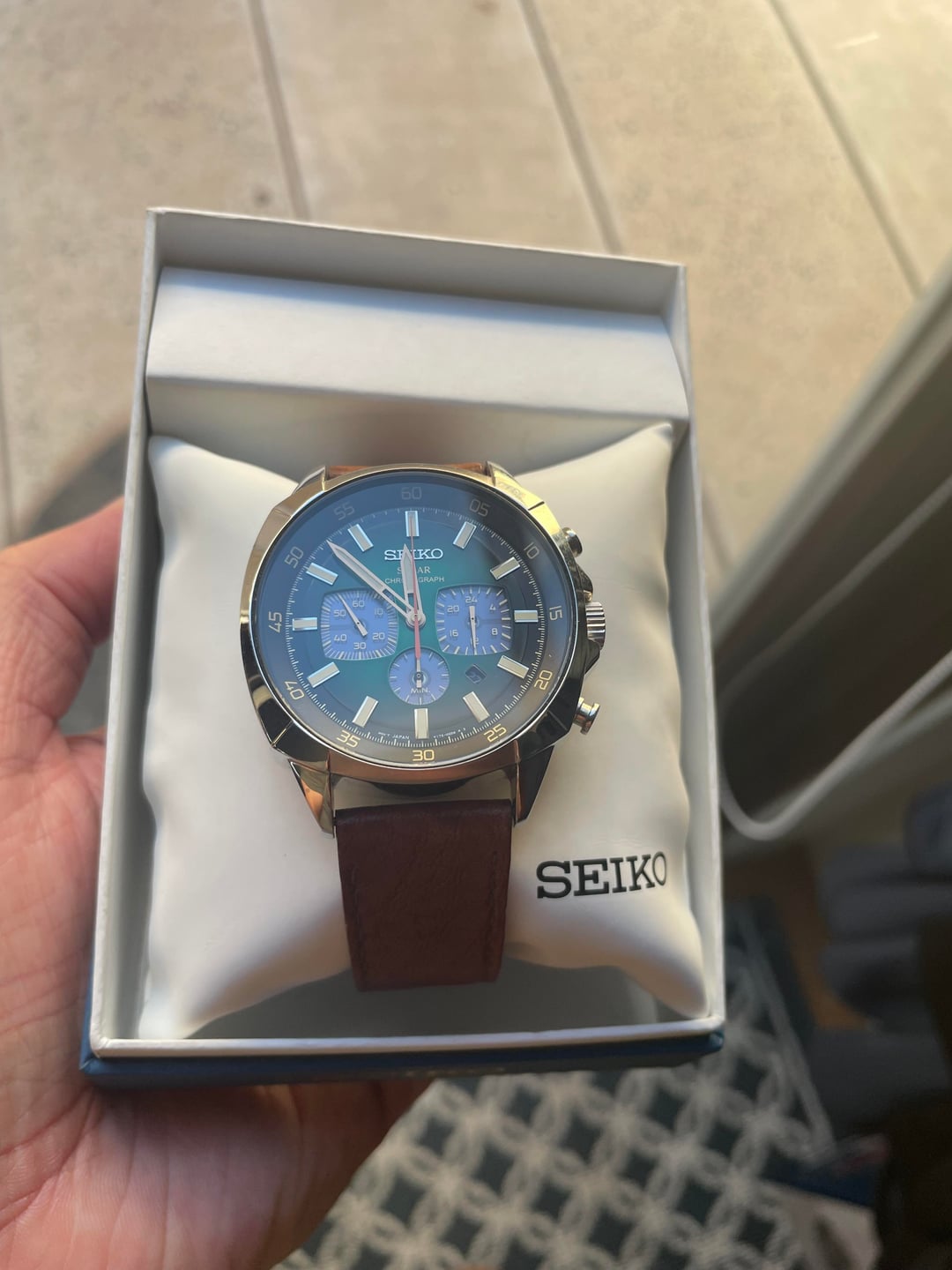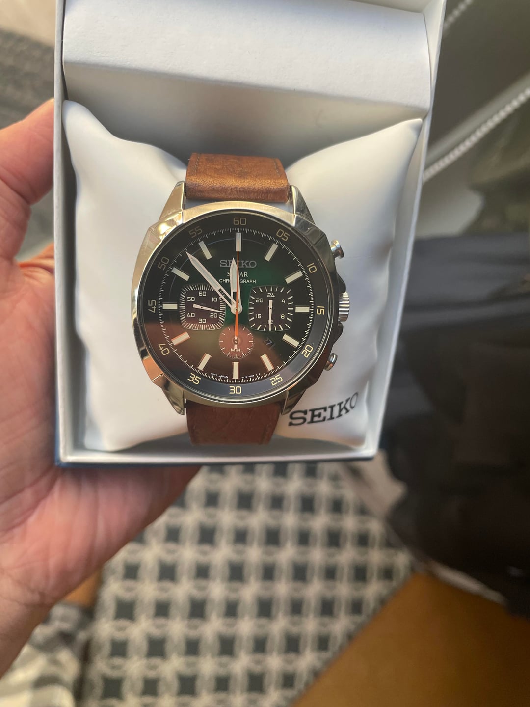 Beautiful green face with leather strap in good condition. I’m happy to take additional pictures or answer any questions.