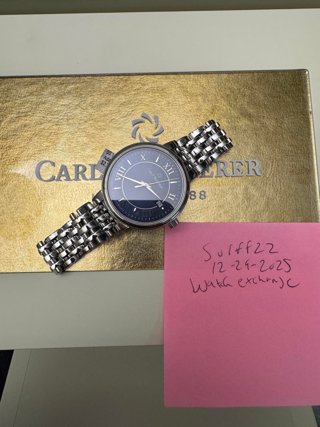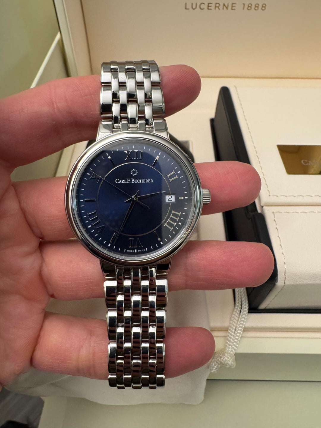 [Video](https://imgur.com/a/7DctRwQ) [Album+Timestamp](https://imgur.com/a/CHEY4sX) Hey everyone, please reach out with any questions. Carl F. Bucherer is a historic Swiss watch manufacture founded in 1888 in Lucerne and has long been respected for its commitment to traditional Swiss watchmaking, refined movement finishing, and understated luxury. The brand later became part of Rolex ownership. This Carl F. Bucherer Adamavi Automatic features a beautifully executed blue dial in a versatile 39mm case, making it an ideal everyday watch that can easily transition between casual and dress settings. The design is timeless and balanced, emphasizing elegance over flash. The automatic movement is elevated well beyond pure functionality through its refined décor: crisp perlage across the plates, heat-blued screws. These traditional Swiss finishing techniques transform the movement into a true work of mechanical artistry and reflect Carl F. Bucherer’s dedication to craftsmanship and detail. Condition: Showroom watch in like-new condition with tags. Never worn and running perfectly. Very light handling marks only, barely noticeable. Sapphire crystal is clean and the watch presents exceptionally well. Service & Performance: Running perfectly with no issues. Keeps excellent time and functions exactly as it should. Details: • Brand: Carl F. Bucherer • Model: Automatic • Reference: 00.10314.08.55.21 • Dial: Blue • Case Size: 39 mm • Movement: Swiss automatic • Crystal: Sapphire • Origin: Swiss-made • Warranty: N/A Included: • Original Carl F. Bucherer wooden box • Leather travel case • Original hang tag (MSRP shown: $2,750) .Travel pouch Price: $1,000 shipped Location: California — CONUS only Payment: • PayPal (Friends & Family) • Bank wire • Zelle Shipping: USPS Priority — Signature required Additional Notes: I’ve sold multiple higher-end watches and can provide solid references upon request.