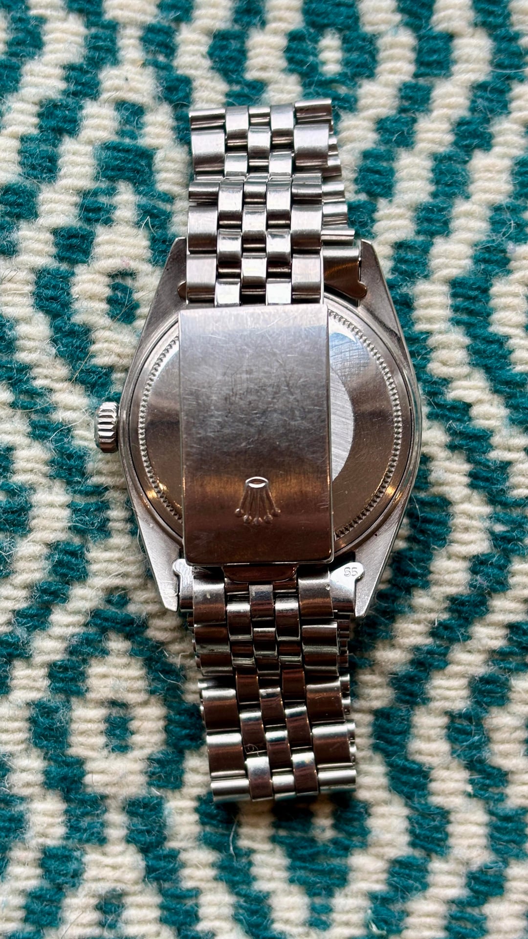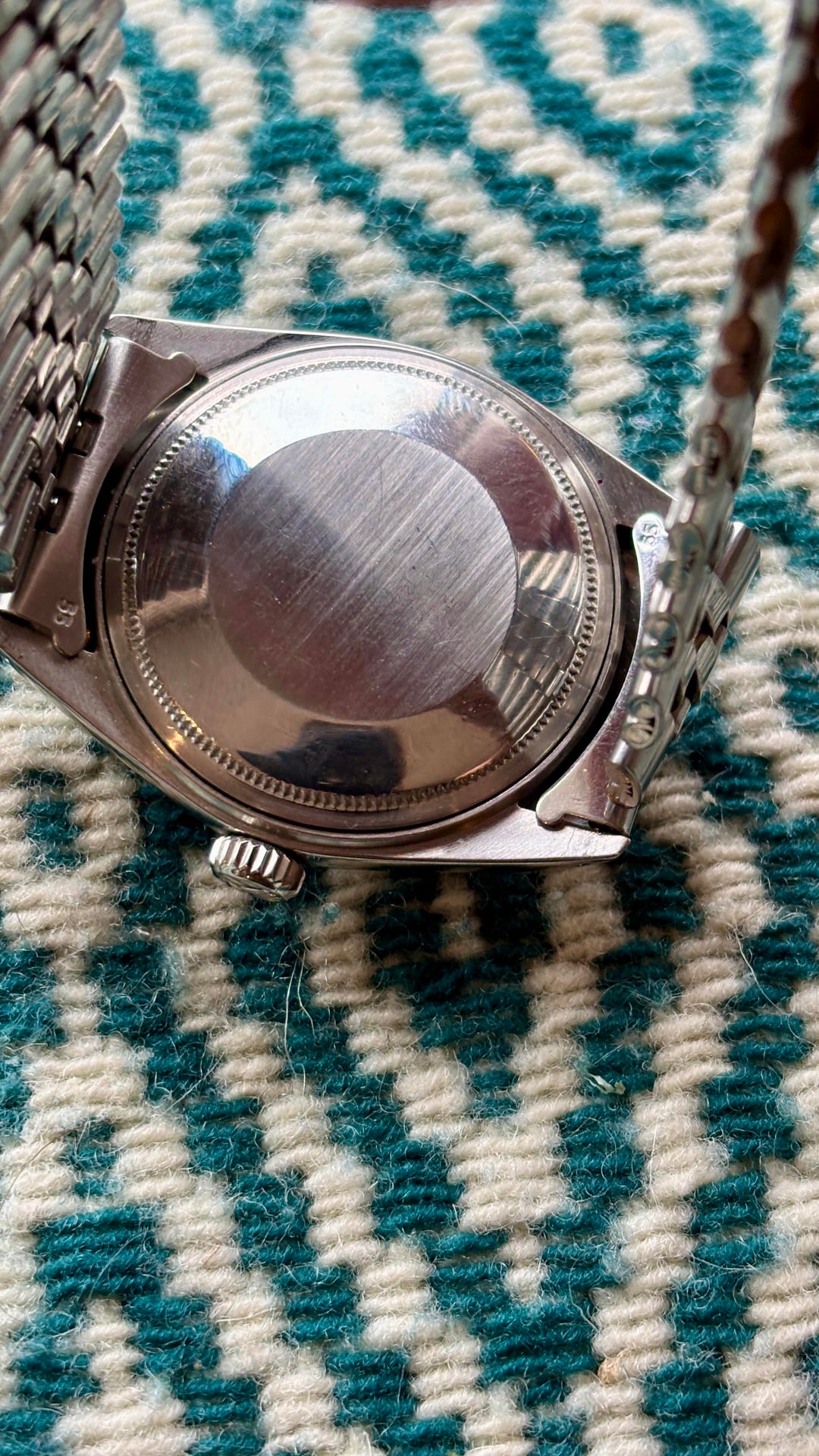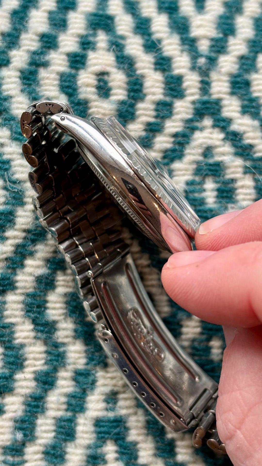 Hey there, I’m selling my lovely confetti dial 1603 Datejust. It’s 3.84M serial dates it to approximately 1974. This dial is known for the flecks of color mixed into the black dial that give it a subtle shimmering and colorful quality, very different from a straight matte black dial. It comes on a folded link jubilee bracelet that is sized to 7.5 inches. The watch was serviced this summer and has a new crystal and gaskets, the old crystal and service papers will be provided. Asking $7200 shipped fully insured within the US, open to using PayPal, Zelle, Venmo. Pleased let me know if you have any questions! Thanks.