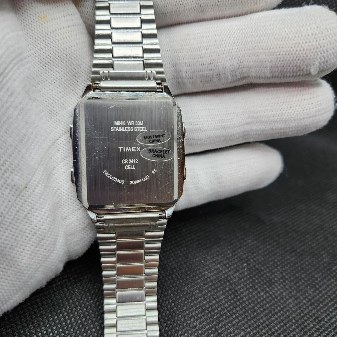 Product: TW2U72400 Attachment Color: Stainless Steel Band Material: Stainless Steel Buckle/Clasp: Clasp (Self-Adjust) Case Color: Stainless Steel Case Diameter: 32.5 mm Case Finish: Brushed/Polished Case Height: 9 mm Case Material: Stainless Steel Case Shape: Square Case Size: Full Size Crystal Lens: Mineral Glass Dial Color: Digital Dial Markings: Digital Strap and Lug Width: 20 mm Watch Movement: Quartz Digital Water Resistance: 30 meter Comes with the original box. hardly worn. Small scuffs to the bracelet and case. Crystal is clear. New battery installed Asking $60, insured CONT US shipping included. Watch ships from Boston. International shipping is at buyers cost. Local meetup is an option. I accept PayPal ( buyers fee 3.9%), Venmo, Zelle, and Wise. Not looking for trades. Please see my other listings. PS: Please post a comment first, then direct message me.