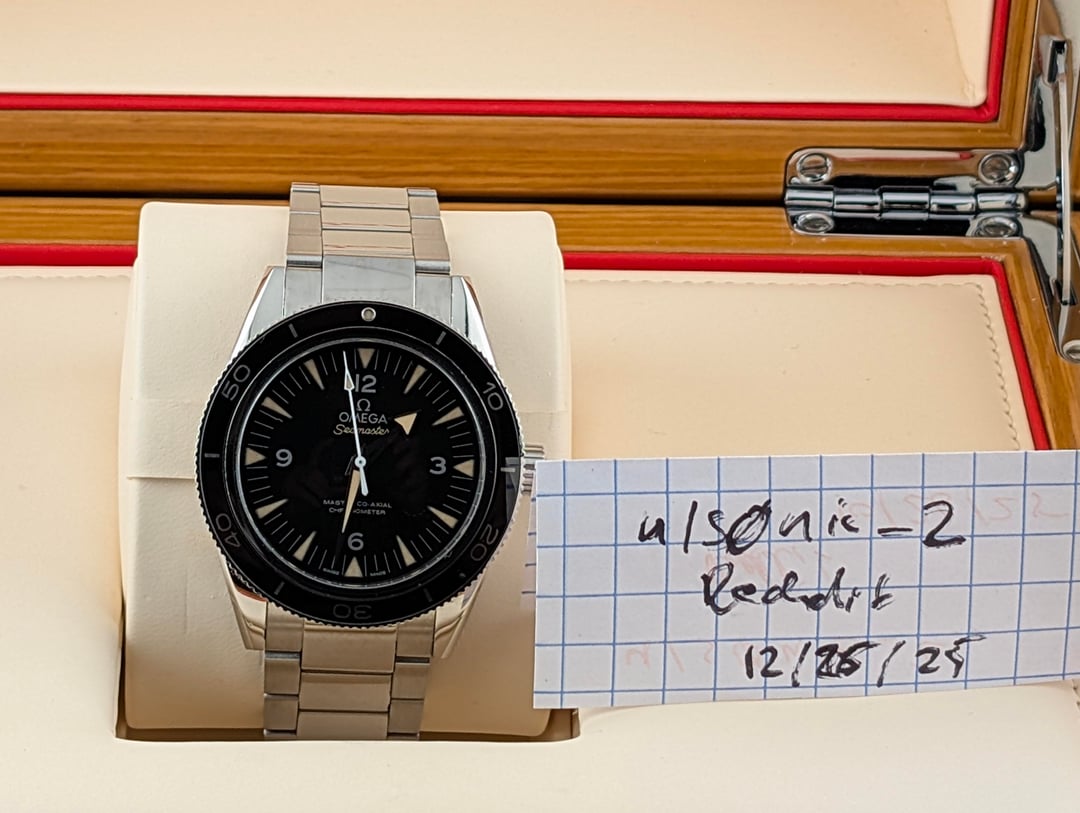 Brand/Model: Omega Seamaster Reference: 300 233.30.41.21.01.001 Movement: Omega 8400 Co-Axial Crystal: Sapphire Water Resistance: 300m Case diameter: 41mm Contents: Complete set Timestamp: https://static.wixstatic.com/media/17bf69_6bb43265f3214993876f02408d169cee~mv2.jpg Yours for $3600 via bank wire or Zelle. Have references on WUS, Reddit, TRF, and 100% feedback on eBay. You can reach me via 312-278-3218 / PM / [[email protected]](mailto:[email protected]). Follow me @ [www.timepiecetreasurebox.com](http://www.timepiecetreasurebox.com), on IG @ [timepiece\_treasure\_box](https://www.instagram.com/timepiece_treasure_box/), or on FB @ [Timepiece Treasure Box](https://www.facebook.com/profile.php?id=61566943652417).
