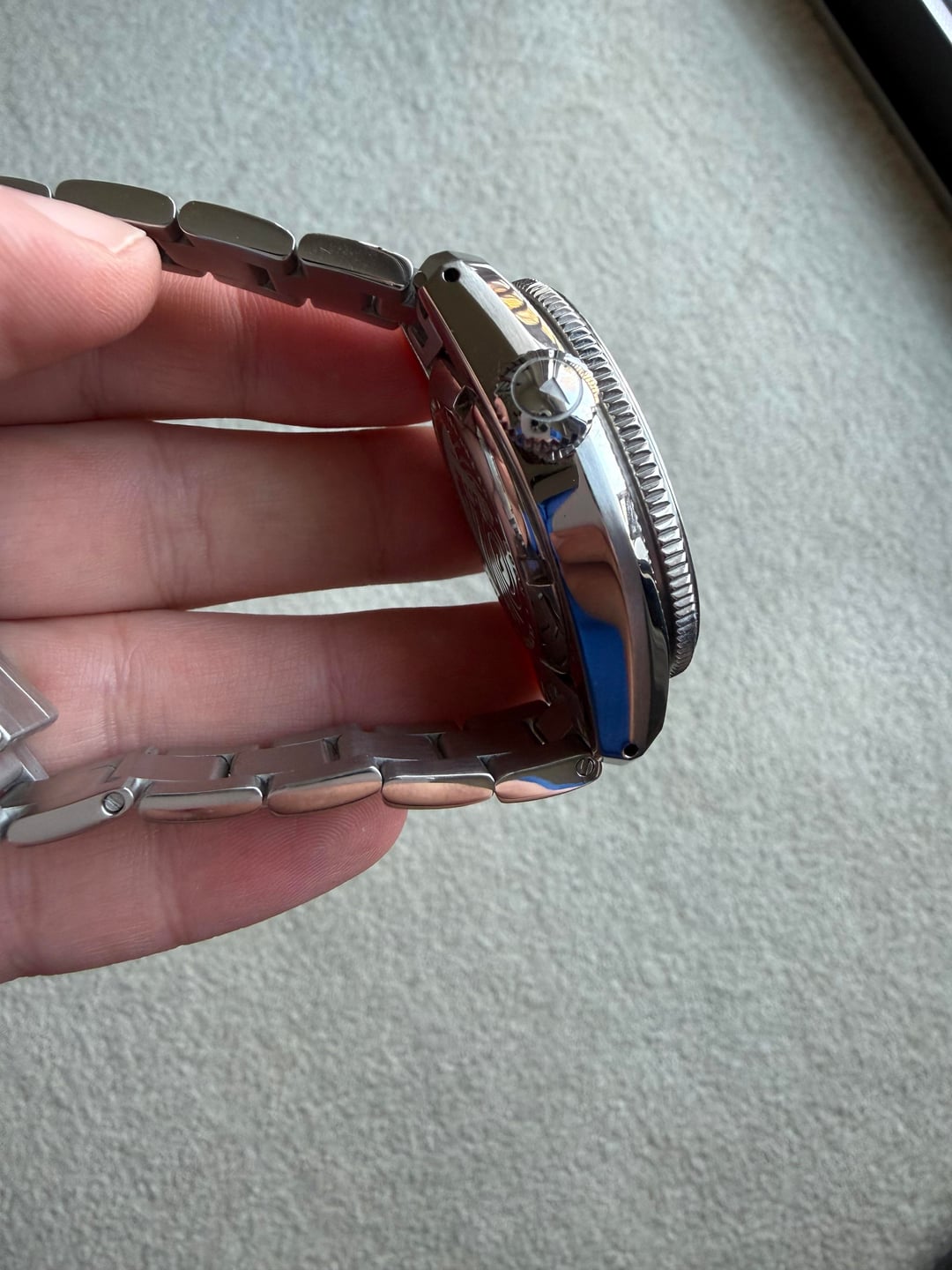 **Price (no trades):** $325 shipped CONUS, PayPal F&F or Zelle **Condition:** Excellent condition with only tiny scratches on the clasp from normal use. Comes in the original box and sized for my 7.5” wrist and two spare links and the screwdriver necessary to size the bracelet. **Specs:** 42mm diameter, 48mm lug to lug, 20mm lug width, 14.5mm thick, domed sapphire crystal, 200m water resistance, Seiko NH34 GMT automatic movement.