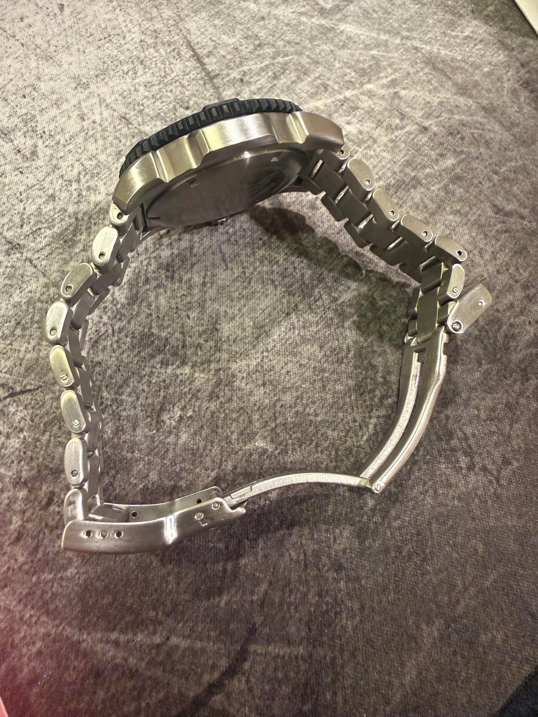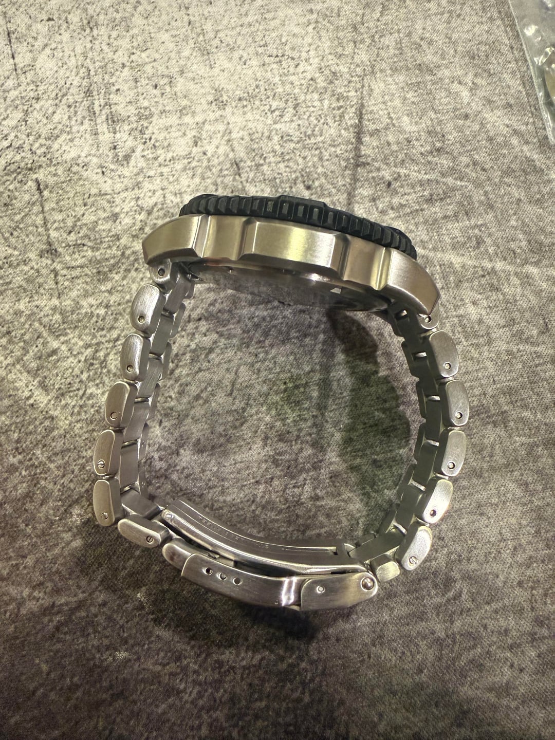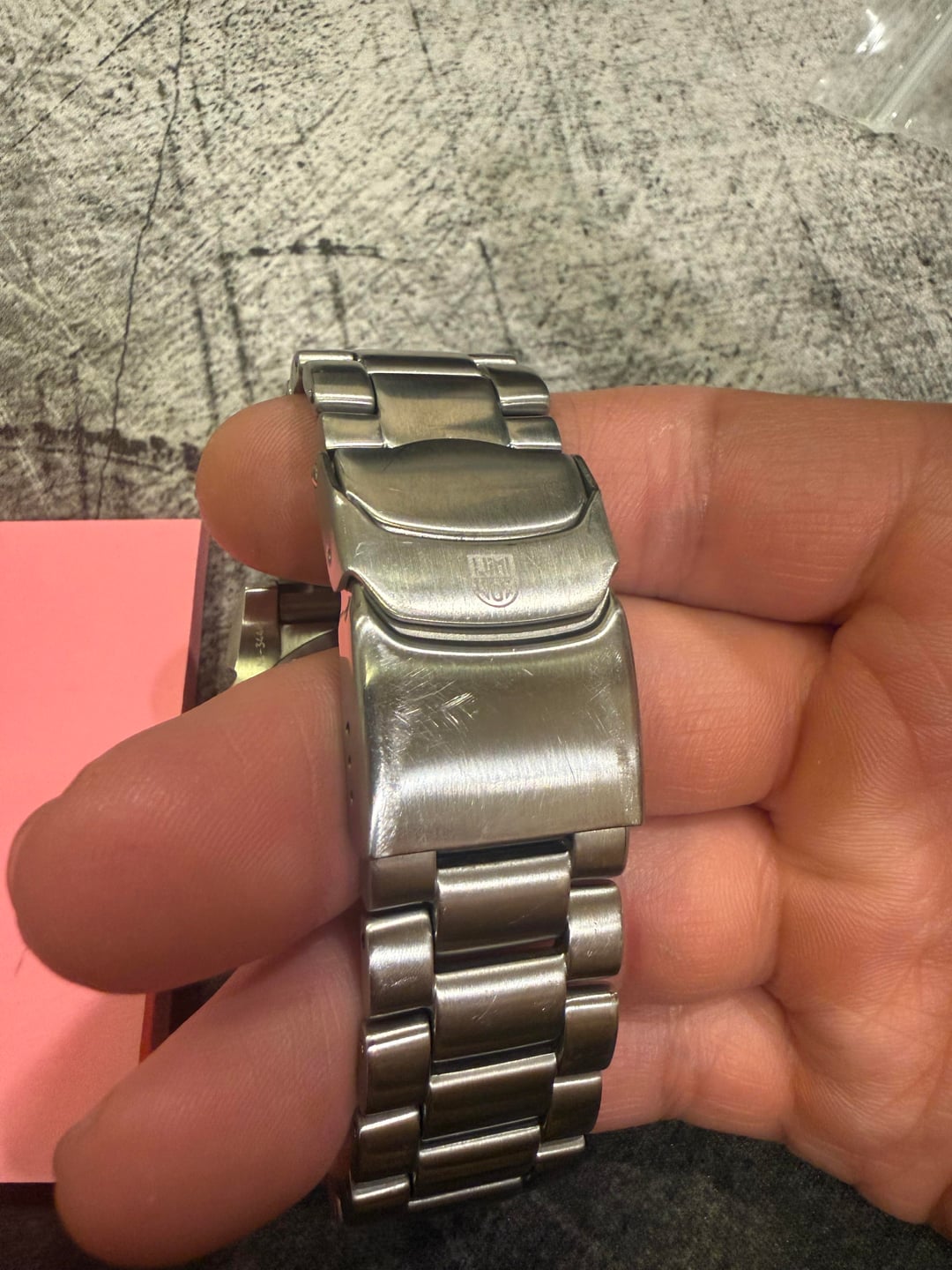 Selling my gently used Luminox Colormark. It has been sitting in the watch drawer for too long. There are no marks on the crystal. The watch head is mostly clean, as far as I can tell. The bracelet is pretty good overall besides some desk diving marks, most pronounced on the clask. The bracelet has a nice heft to it and is one of my favorite bracelets of all the watches I’ve had. The clasp is solid, not stamped metal (see pic). Sized to about a 7" wrist, and includes 3 extra links. Comes with box and hangtag. Will ship via USPS Priority in the CONUS. Paypal F&F or Zelle preferred. Asking only $215
