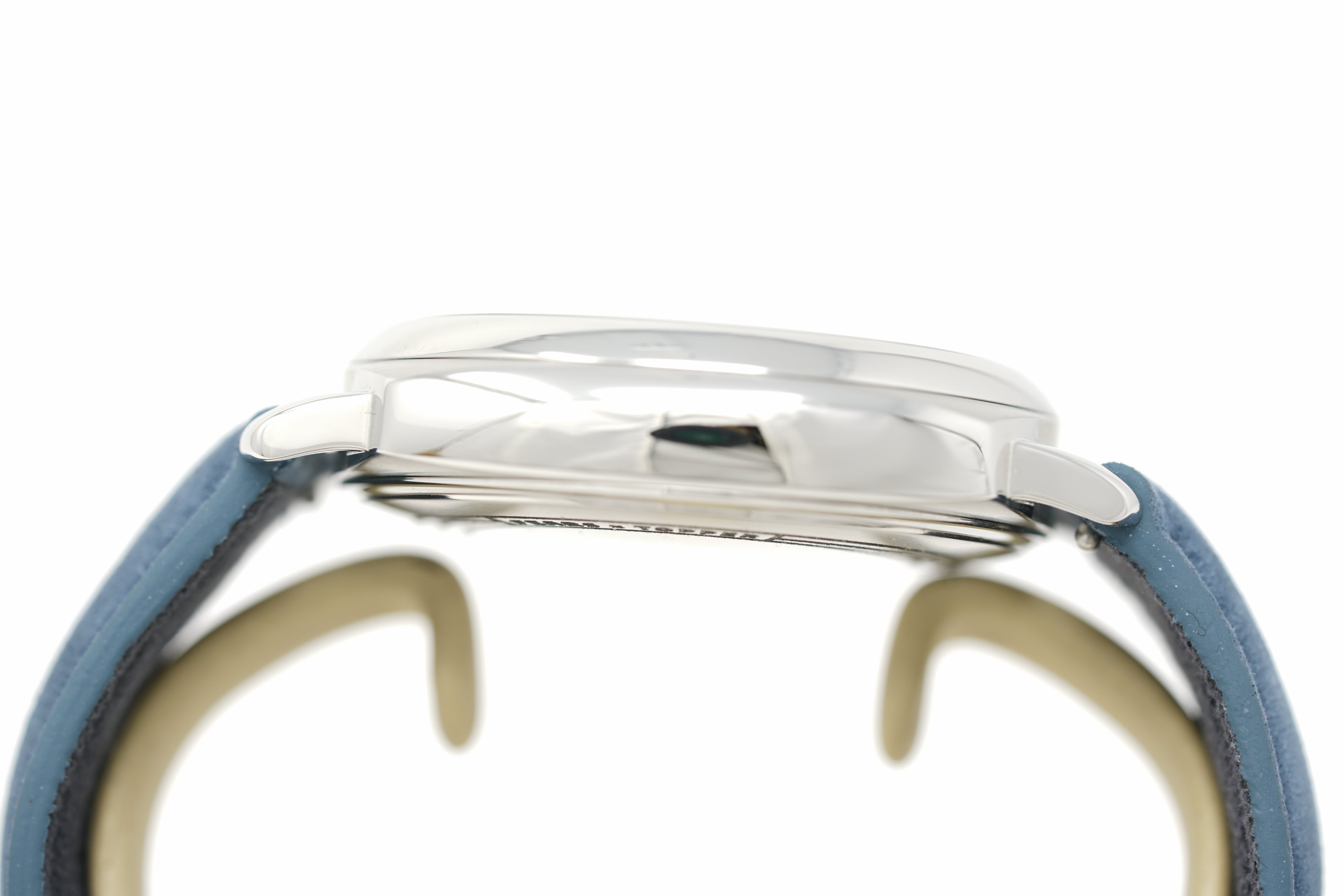 Limited to 25 pieces, this pre-owned watch is in 90% condition due to slight marks on the bezel and throughout the case. The strap is in 93% condition due to slight wear and creasing. The strap will accommodate a wrist size up to 7 and 1/2 inches. Originally purchased in February 2024, this watch comes with its inner and outer box, instruction manual, warranty card, limited edition certificate, hangtag, and the one-year Topper Pre-Owned Select warranty.
