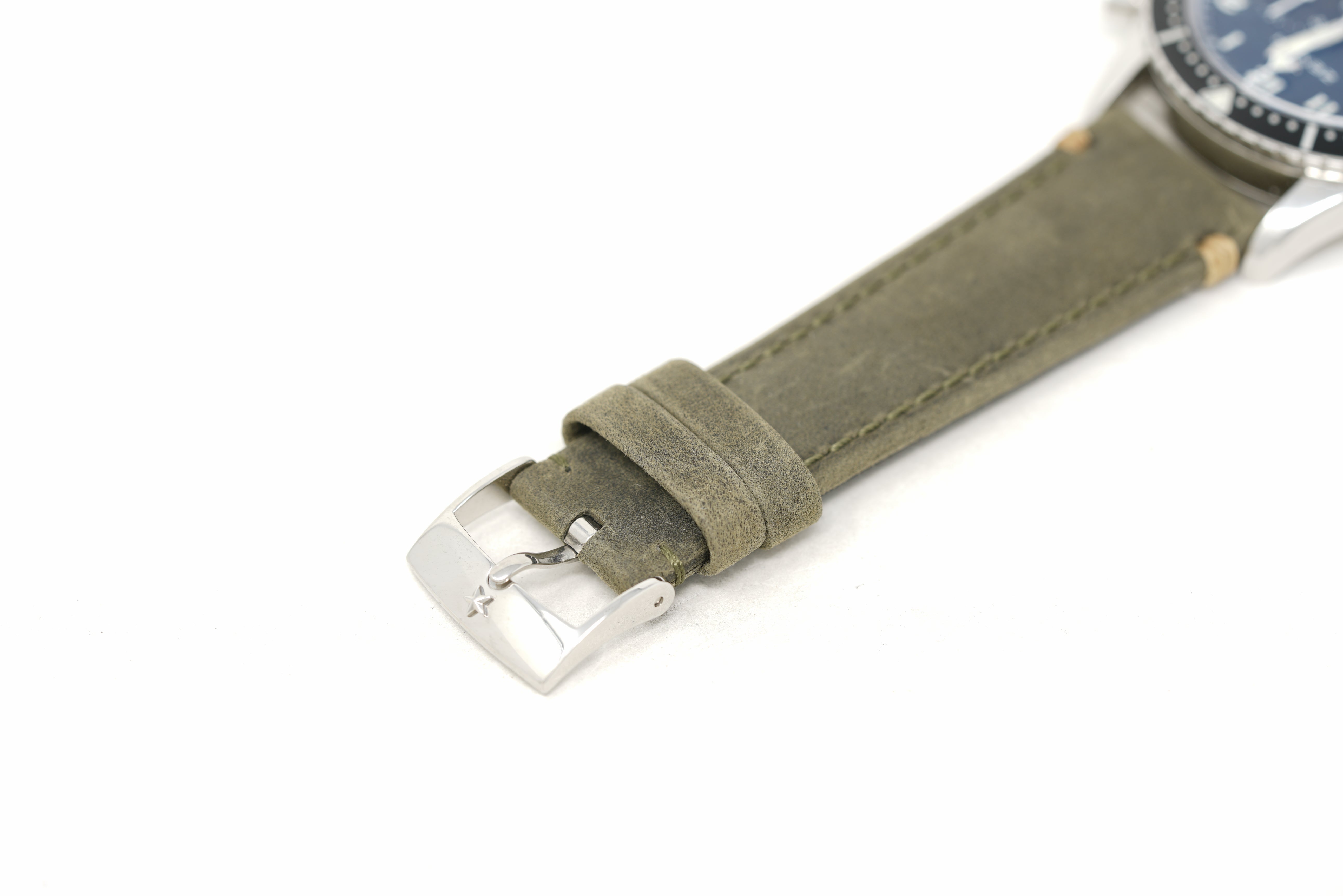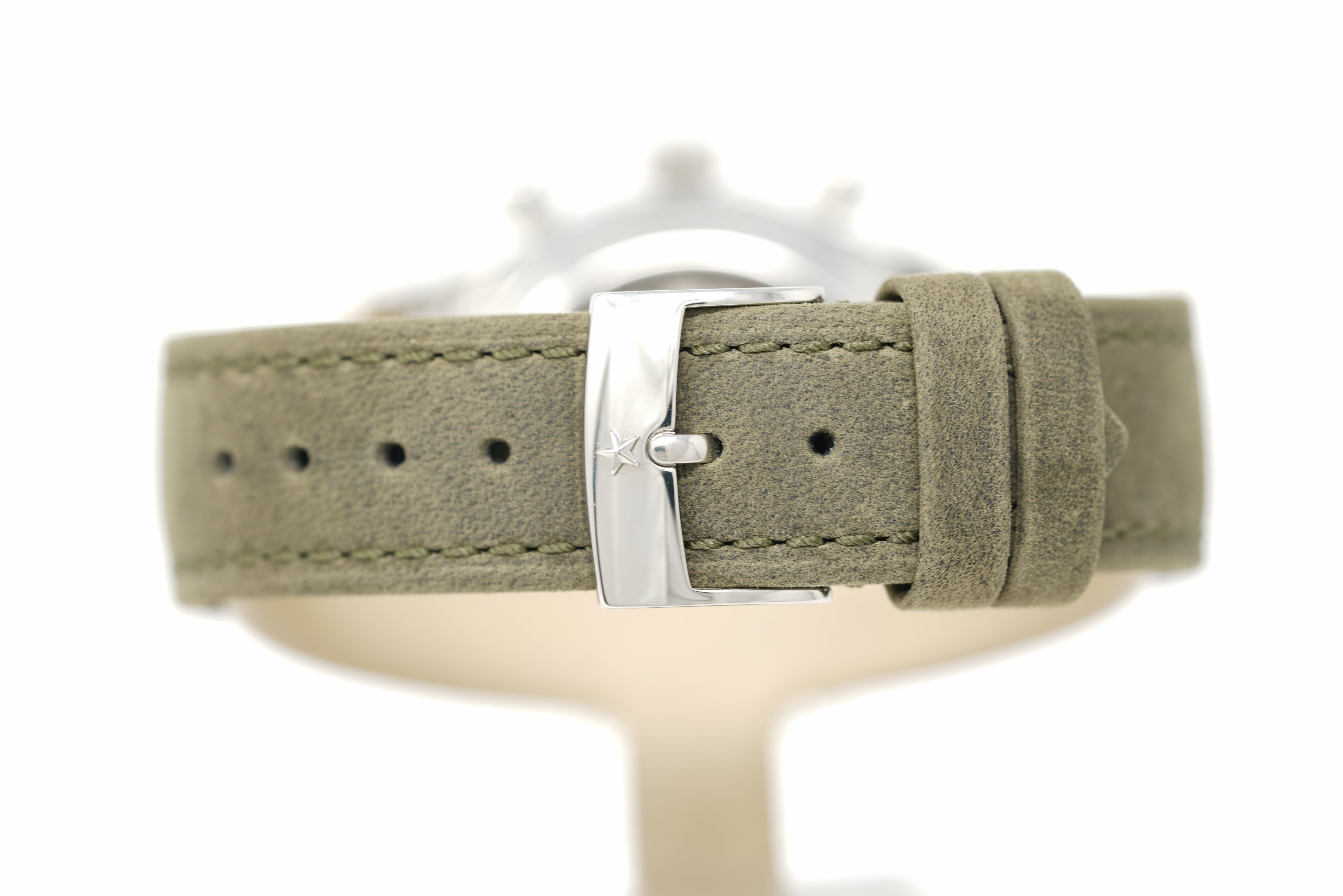 Limited to 50 pieces, this pre-owned watch is in 93% condition due to slight marks on the lugs and throughout the case. The strap is in 94% condition due to minor wear and creasing. Also included is an OEM strap in 90% condition due to slight creasing, marks on the clasp, and an extra hole. Originally purchased in May 2017, this watch comes with its inner and outer box, instruction manual, warranty card, chronometer certificate, hangtag, and the one-year Topper Pre-Owned Select warranty.