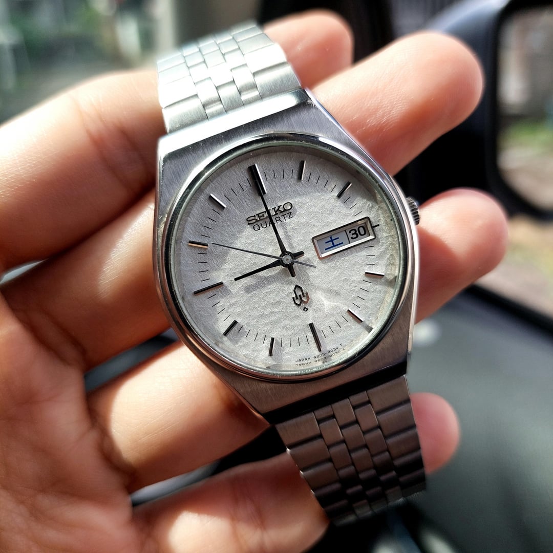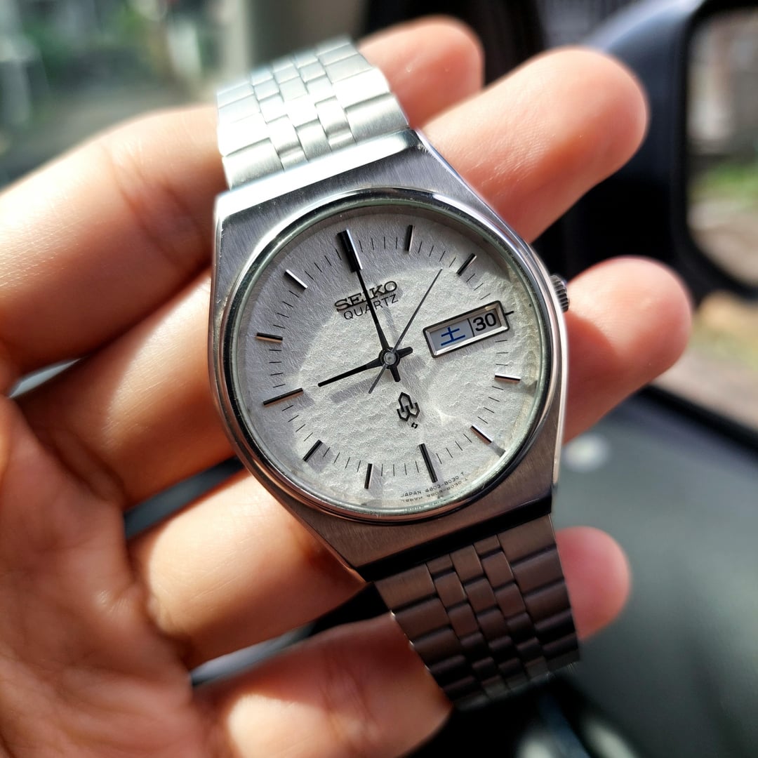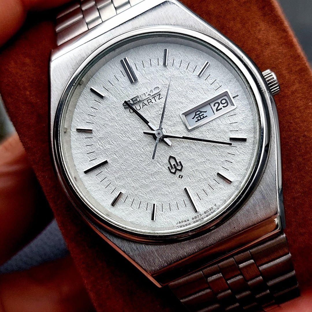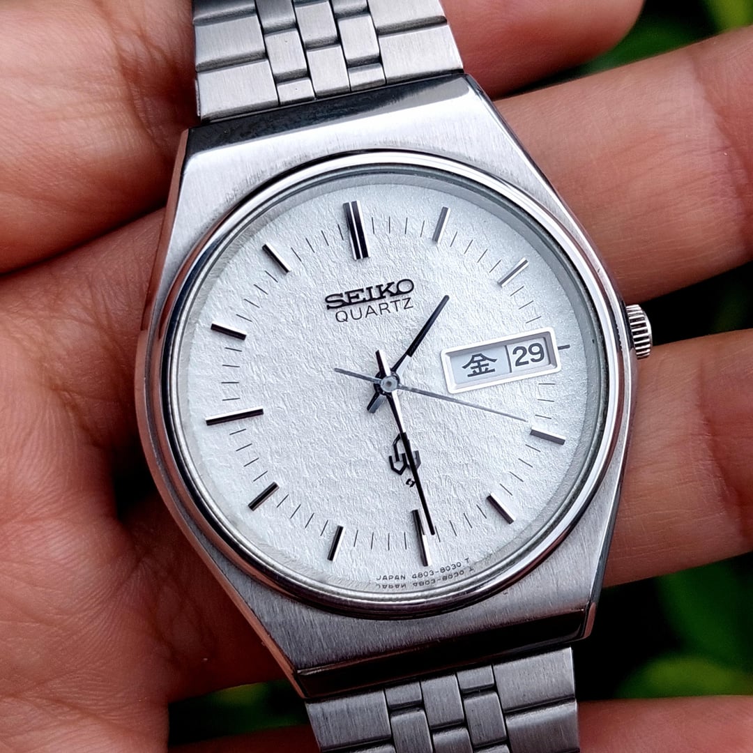For sale one of high sought after Seiko Quartz 4803-8010 from 70’s, this is the first day-date snowflake dial from Seiko which an enhancement of the earlier QT 38-7030 model, which was successfully launched two years prior and notably featured Seiko's first-ever Snowflake dial. The dial features a captivating textured white canvas subtly accented with silver, a design element that would later used on Grand Seiko models like the SBGA011/211 The watch runs normally, powered by Caliber 4803-8010, the same reliable movement used in Seiko's high-end Superior, Grand Quartz, and King Quartz models. ▫️Production Year : July 1976 ▫️Case : 37.5 mm ▫️Lug to Lug : 42 mm ▫️ Comes with AM bracelet fit up to wrist size 20.5cm / 8 inch ▫️Day available in Kanji and English the movement is running perfeclty fine without any issue The watch fully functional with a refined case polish that preserves its original shape. The crystal is also in good condition. Looking to get $250 shipped. Payment via Paypal F&F and G&S + 4.8%. Video of watch : https://www.instagram.com/reel/DTDjCeoj8Lg/?igsh=MTN3aG9zMWVzaXZlZg== for more collection please follow my instagram: https://www.instagram.com/lougeposh/ Please COMMENT FIRST before sending me a pm or chat. Tracking number (Airwaybill) will available within 3 days once payment confirmed