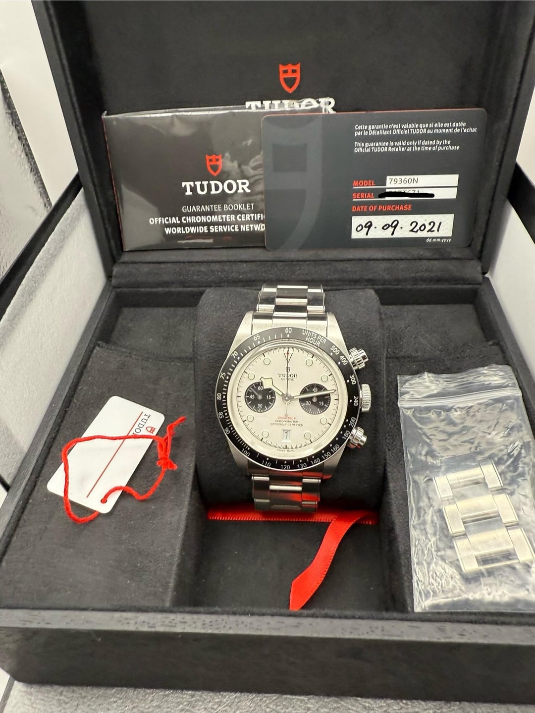 Tudor Black Bay Chronograph Panda Ref 79360N 41mm 2021 Timestamp https://imgur.com/a/e5kNOYS Video https://imgur.com/a/gvo8n6M#mAlmyCF Excellent pre owned condition Fully linked bracelet Full set with inner and outer box warranty card dated 09 09 2021 booklets and tags Bezel and crystal are clean Running perfectly timegrapher results shown Timestamp photos and video shown Price $3,700 shipped within the continental United States Payment Zelle or bank wire Located New York Established watch dealer and active member of Moda and RWB primarily selling on Facebook and expanding to Reddit happy to provide references phone number FaceTime and reasonable buyer verification For buyer verification I’m happy to accommodate whatever makes you comfortable including reference checks on Facebook or within any watch community of your choice use of a trusted middleman or escrow service live FaceTime video additional photos and video and sharing my name and phone number transparency and a smooth transaction are the priority